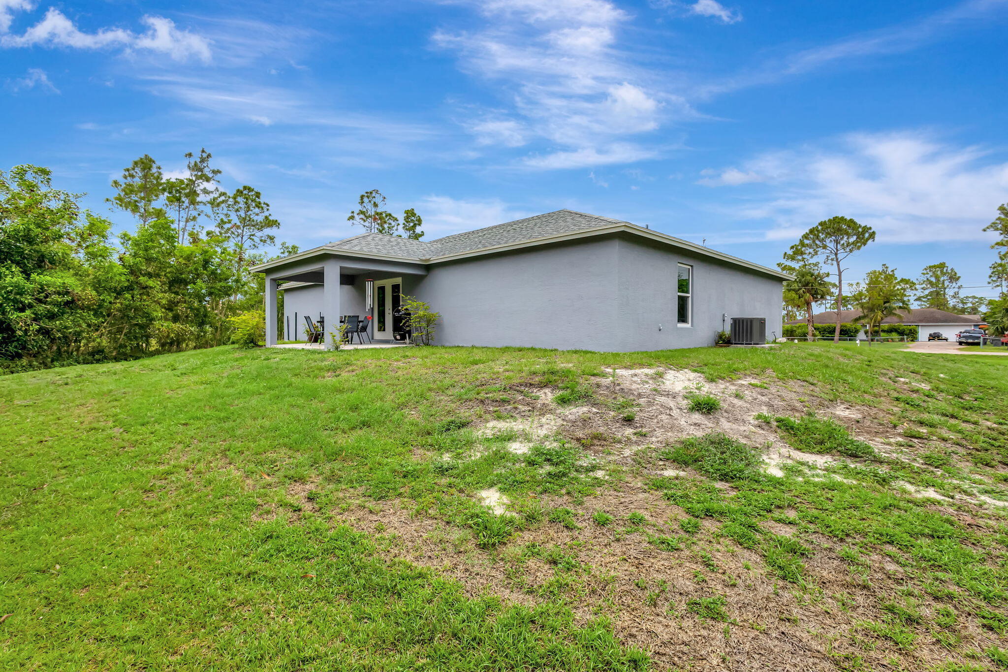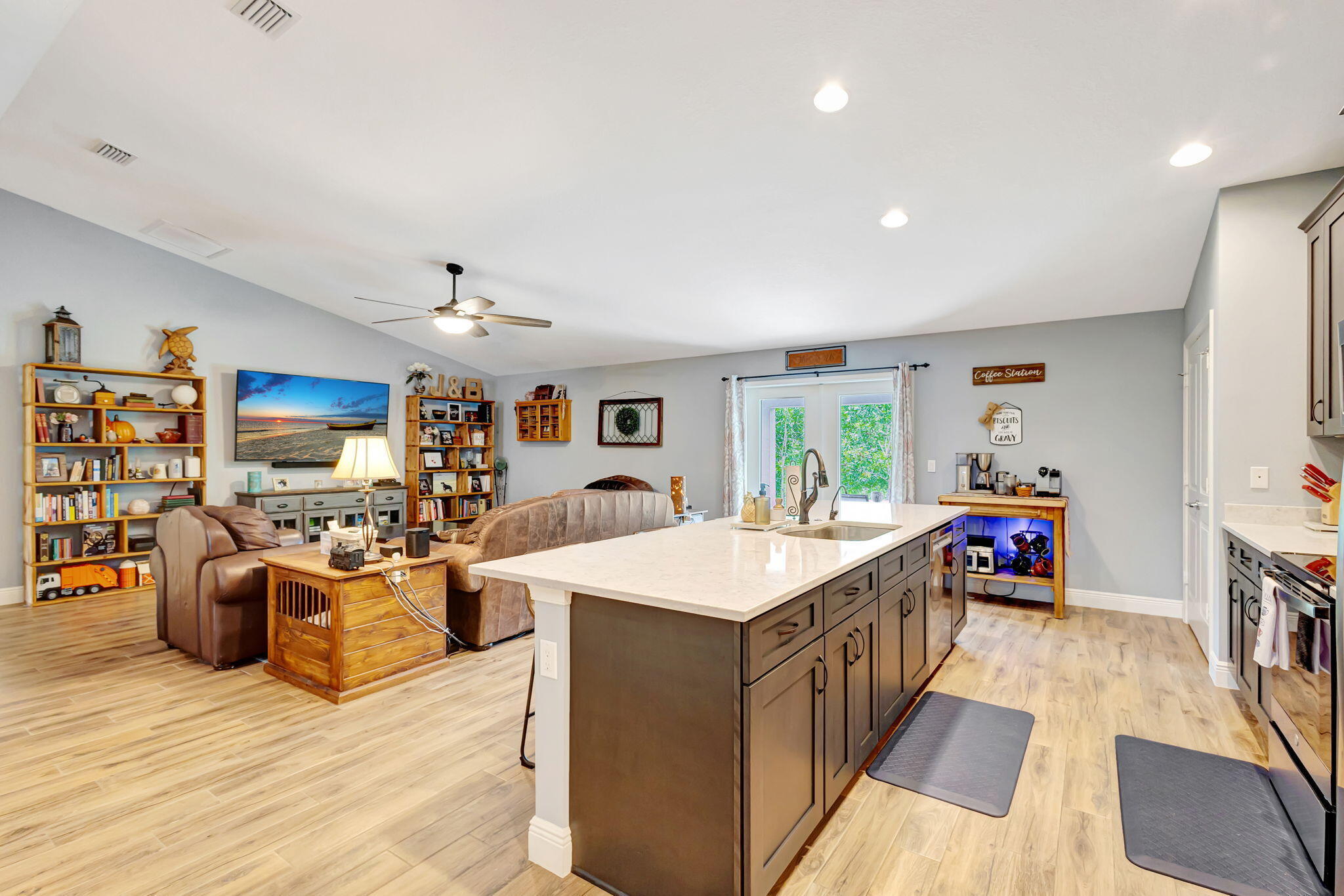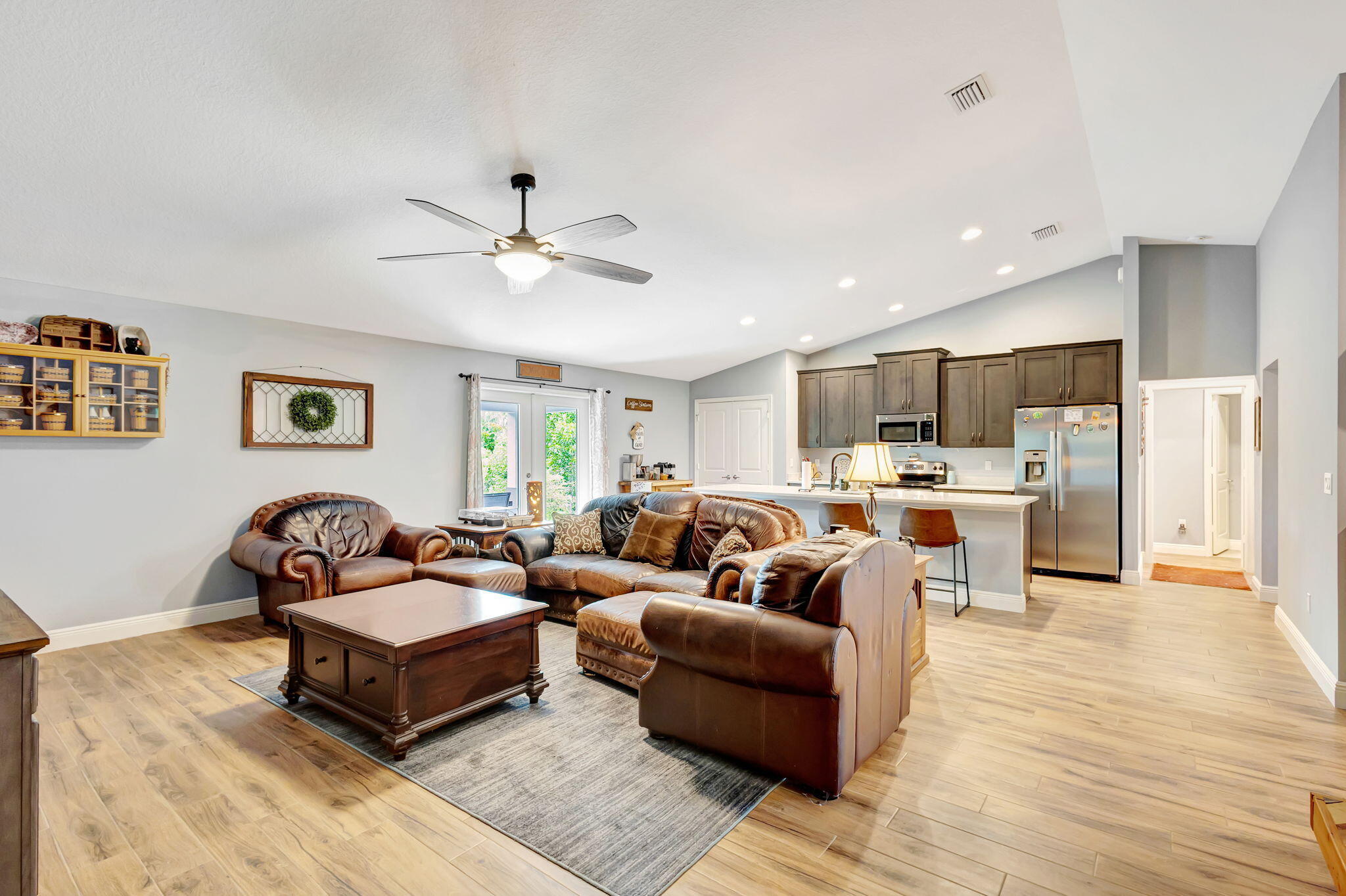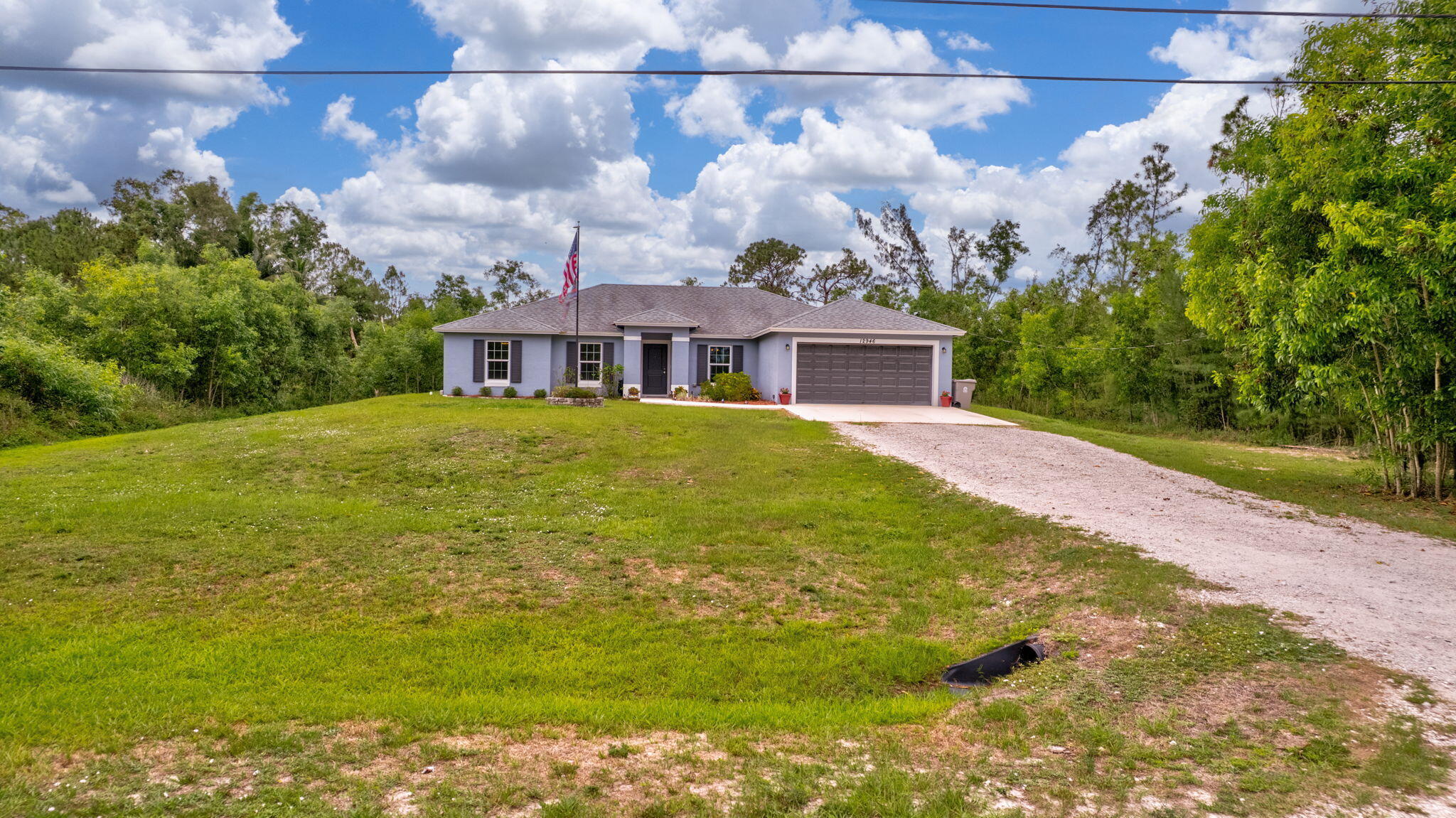 Like New, 4 bedroom, 2 bath, Ibis Model with covered back patio built by Synergy Homes in 2021. The home features Synergy's top tier energy efficiency via whole home insulation, energy efficient appliances and double pane hurricane impact windows. The living space offers an open concept, wood look tile, recessed lighting and vaulted ceilings. The kitchen features wood shaker cabinets, GE stainless appliances, upgraded Quartz tops with a generous 10 foot long island. The bathrooms provide dual sinks and granite tops. Offering a turn key home... water filtration and softening system, reverse osmosis for the kitchen, partial Ceiling Fans and Light Fixtures, Window Treatments as well as a washer and dryer all in place. Located on 1.16 acres convenient to schools and shopping.