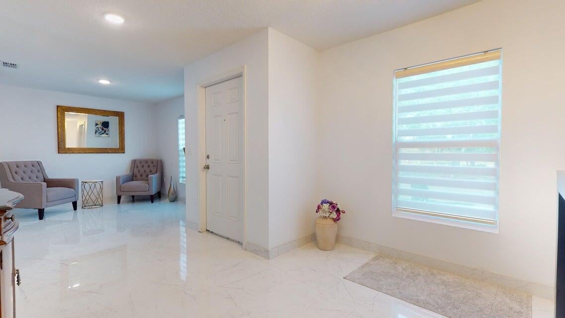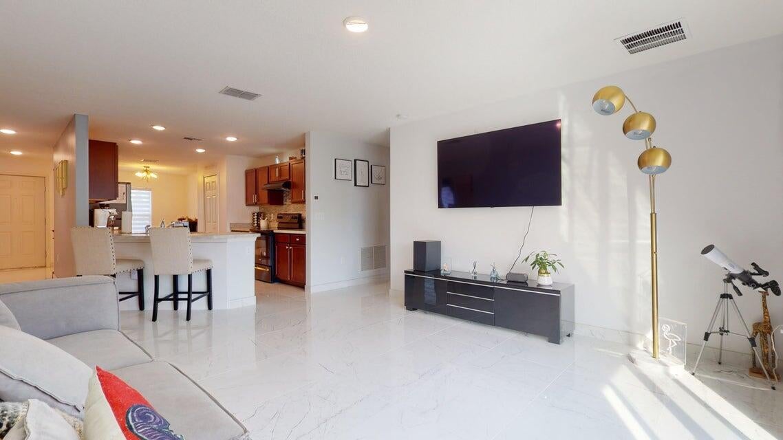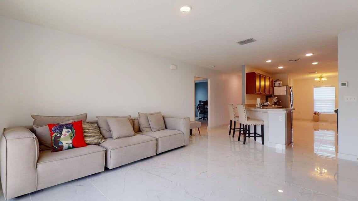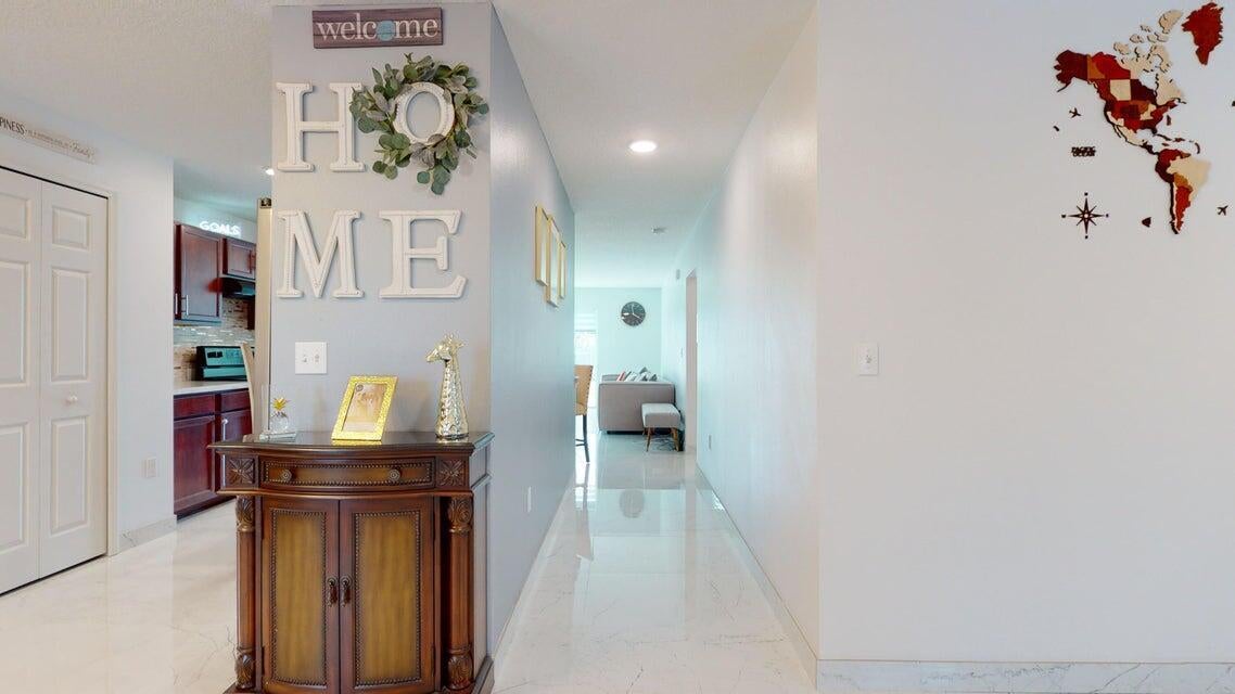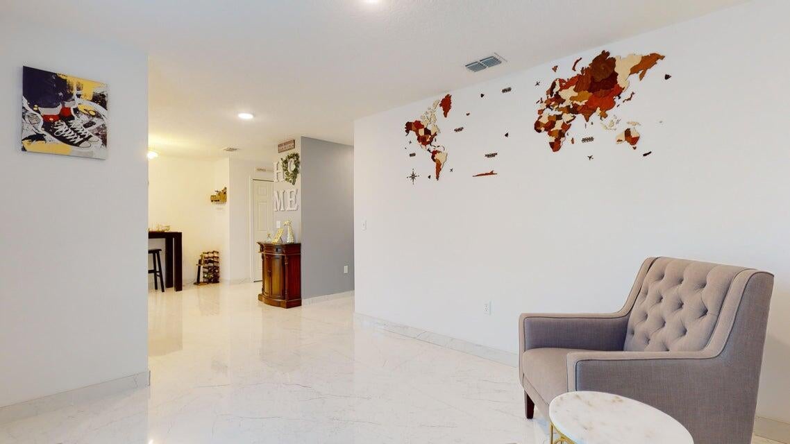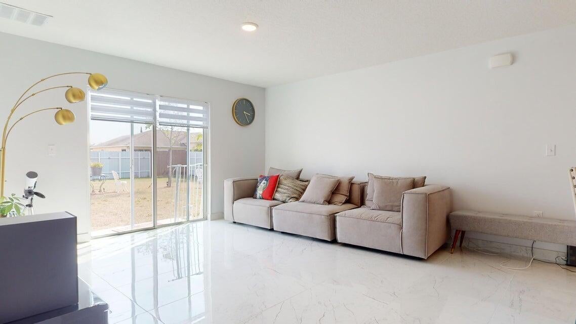 Tranquil Living Just Minutes from Tradition!Welcome to this beautifully upgraded home featuring elegant gold accents and premium flooring imported from Spain. Enjoy a water view from the spacious living room, perfect for relaxing or entertaining guests.The formal dining area flows seamlessly into a large, open kitchen equipped with stainless steel appliances, ample counter space, and a walk-in pantry. The desirable split floor plan offers privacy, with the master suite featuring a double vanity, walk-in closet, and spa-like finishes.Two additional bedrooms are located on the opposite side of the home, both overlooking the fully fenced backyard with lush greenery--ideal for outdoor living, play, or peaceful sunset views.Located in a quiet neighborhood. Minutes from shopping.