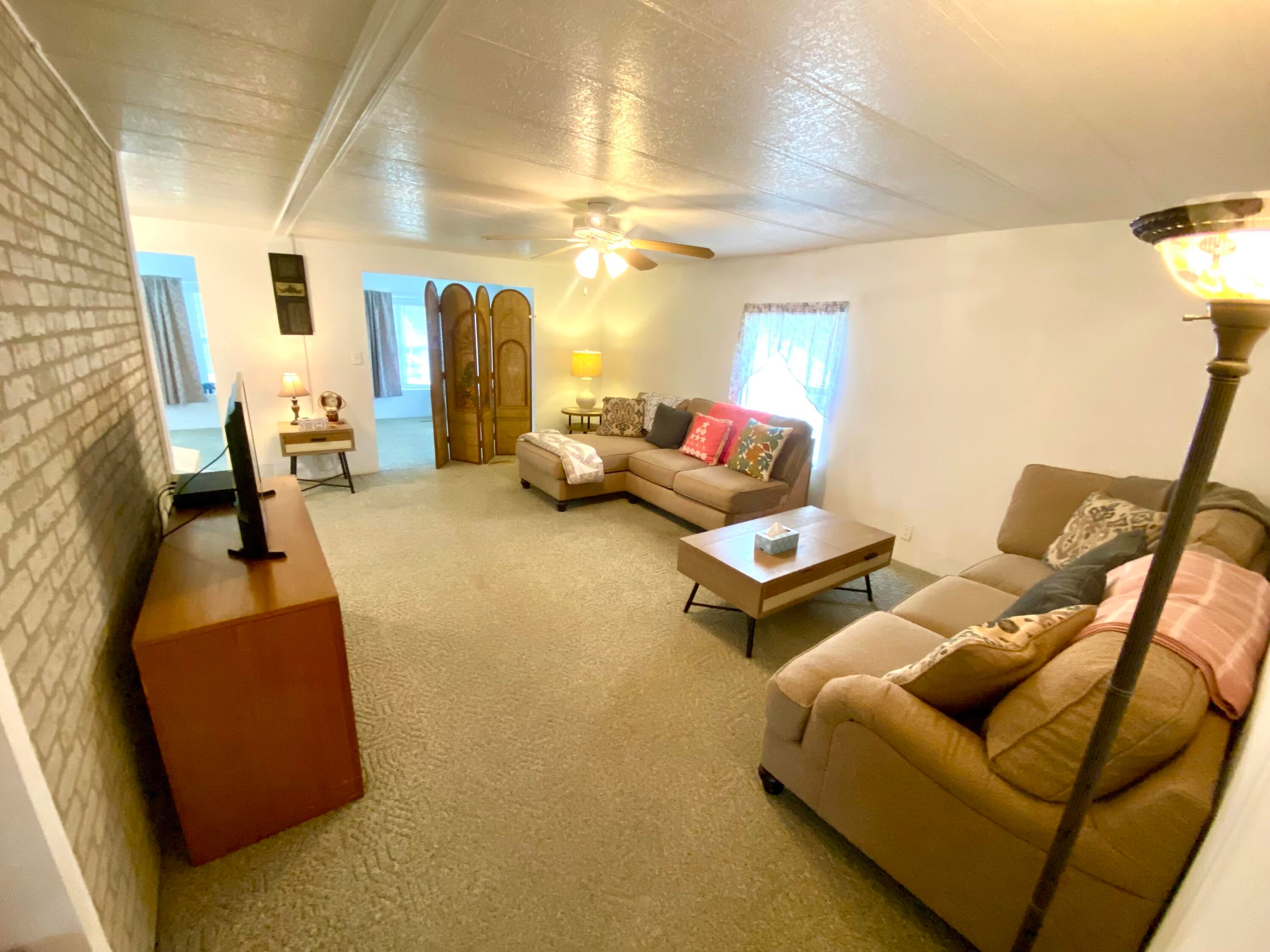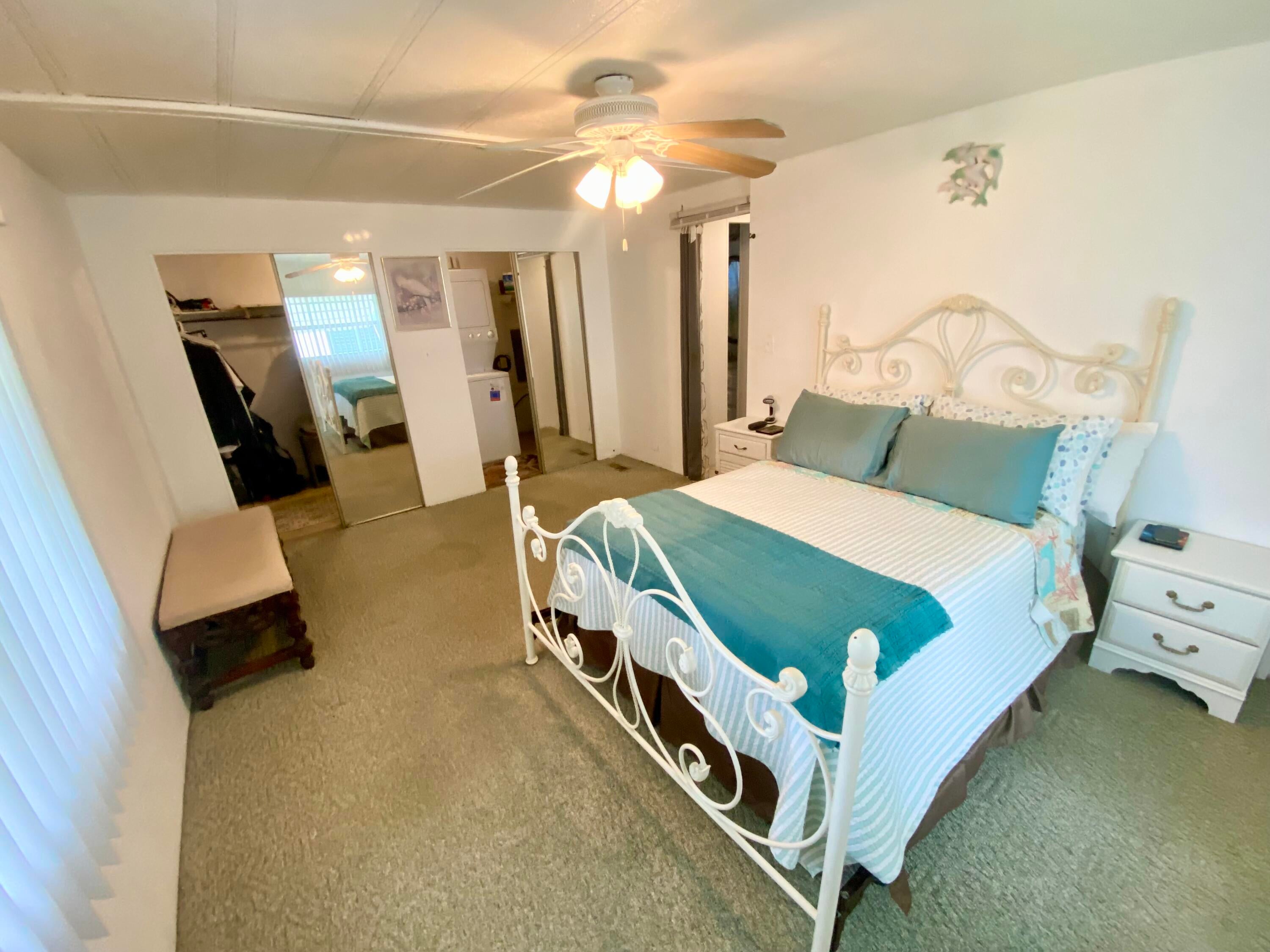 Move-in ready home conveniently located on a corner lot at the beginning of the neighborhood. Bright and inviting with crisp white walls throughout. Washer/Dryer located in huge walk-in master closet makes laundry a breeze. Large, open living area with furnishings available. Nice landscaping and extra storage available in shed. Large covered carport with pull down shades & big enough for two vehicles. All information to be verified by the buyer.