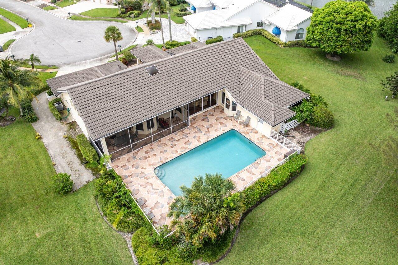 Elegant custom home on a rare oversized lot at the end of the cul-de-sac on one of the most desirable streets in prestigious Boca Woods Country Club, this 3 bed/3.5 bath offers spectacular panoramic golf course views a true standout in the community. Take in the serene setting from the screened patio with oversized pool and cabana bath. Features include a new 4-ton A/C, new oven, new refrigerator, and partial impact windows along with many more improvements throughout the home. Boca Woods is an all age Country Club Community which offers resort style amenities, including two championship golf courses, Har Tru tennis courts, pickleball courts, state of the art fitness center, spa, game room, fully renovated clubhouse with fine dining and much more! Mandatory Country Club