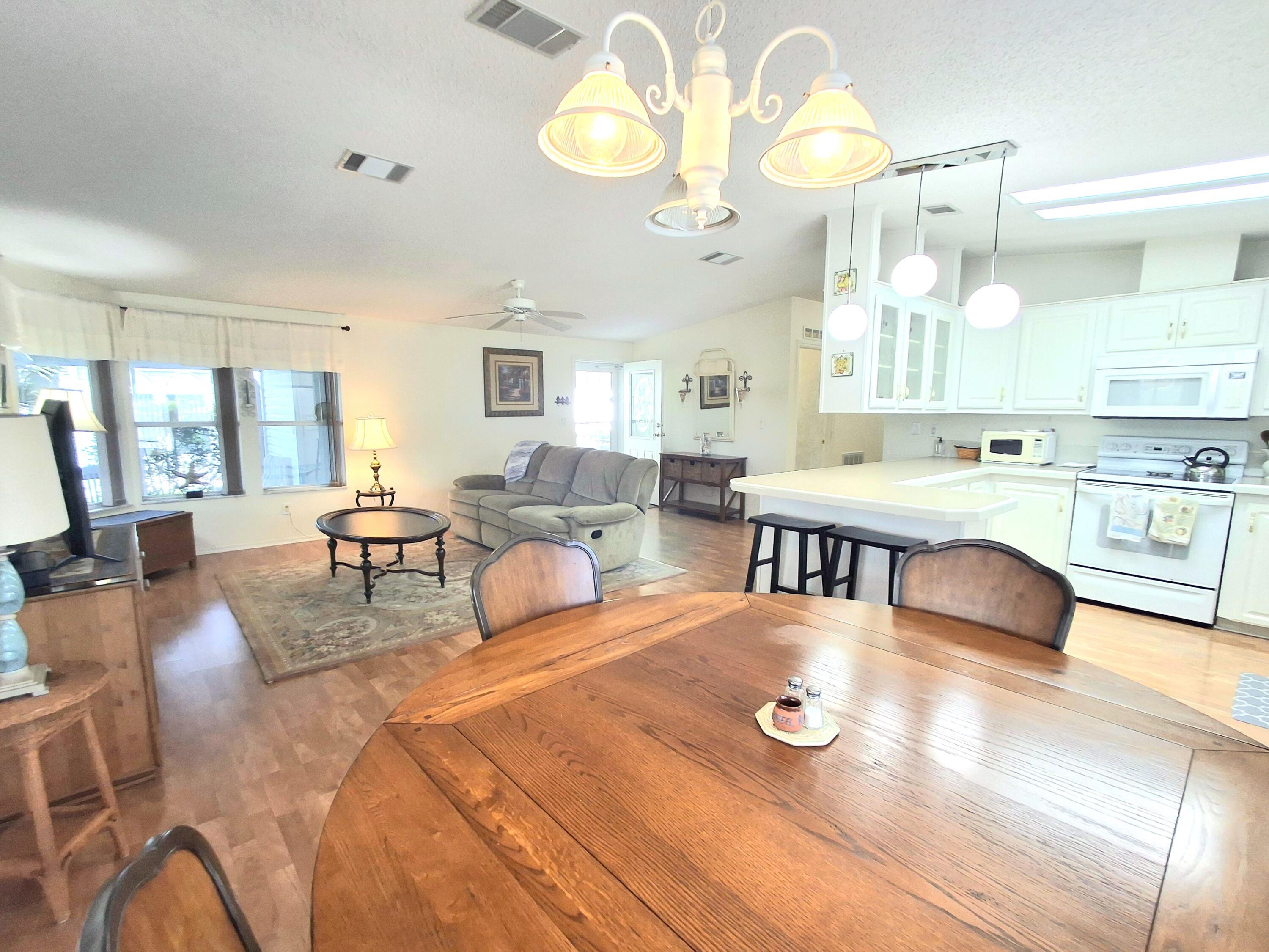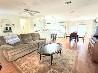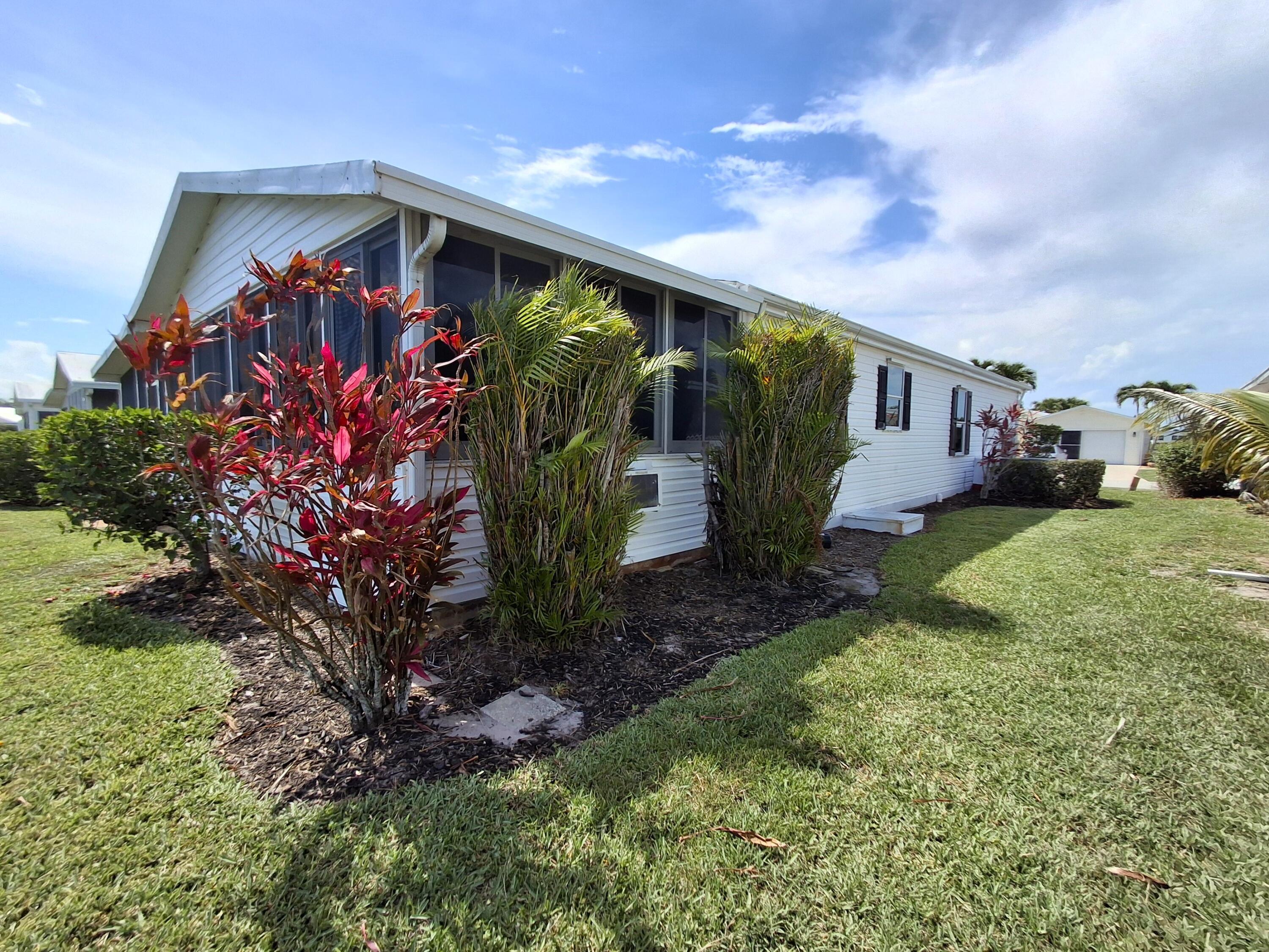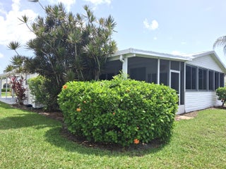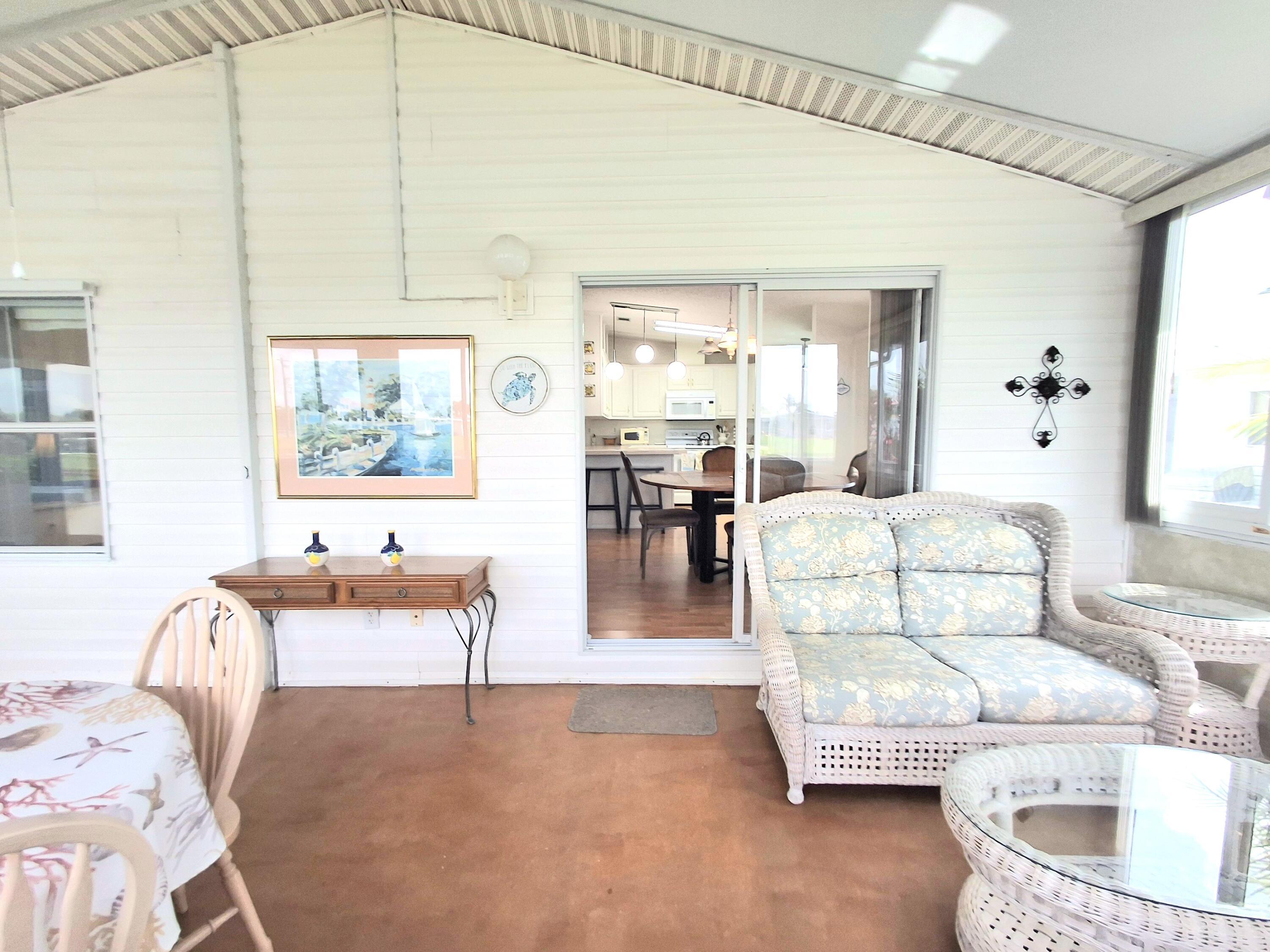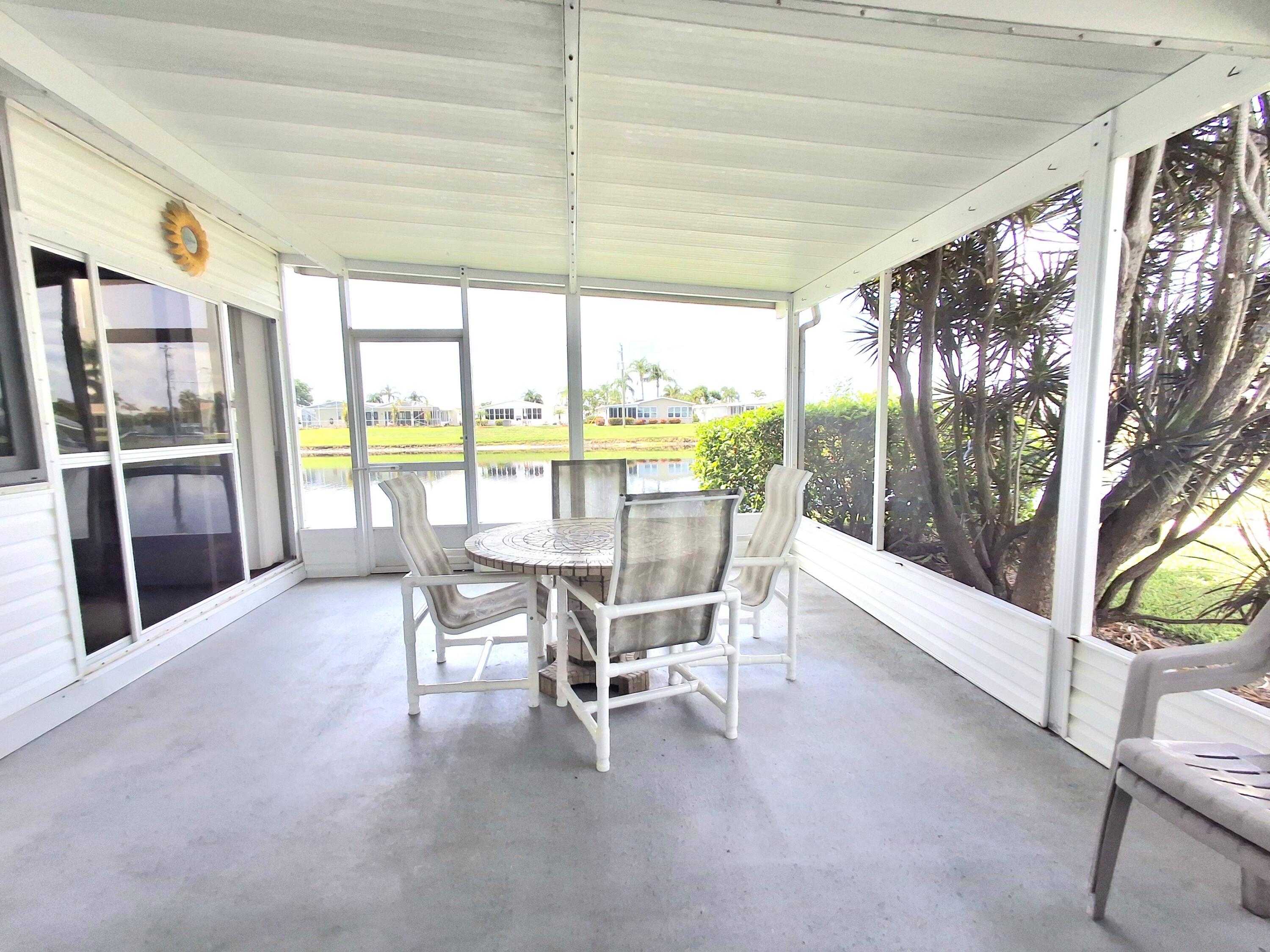 Waterfront, sold turnkey with everything you see EXCEPT SCOOTER IN SHED. Welcome to this fabulous waterfront home with a HUGE enclosed back lanai (23x11) AND a large screened lanai (13x19) overlooking a large pond in Savanna Club. Entertain your family and friends in Florida with this beautiful view. This home offers 2 beds with 2 baths. The primary bedroom will fit a king sized bed. The spacious primary bath has extra storage for all your linens and towels. The guest bedroom and bath both are the perfect size for guests. Open living from the kitchen, dining, and living room where you can have get togethers and see everyone AND have views of the water too from these rooms indoors. This home also features a New Roof completed in 2018 and a New AC in 2017.