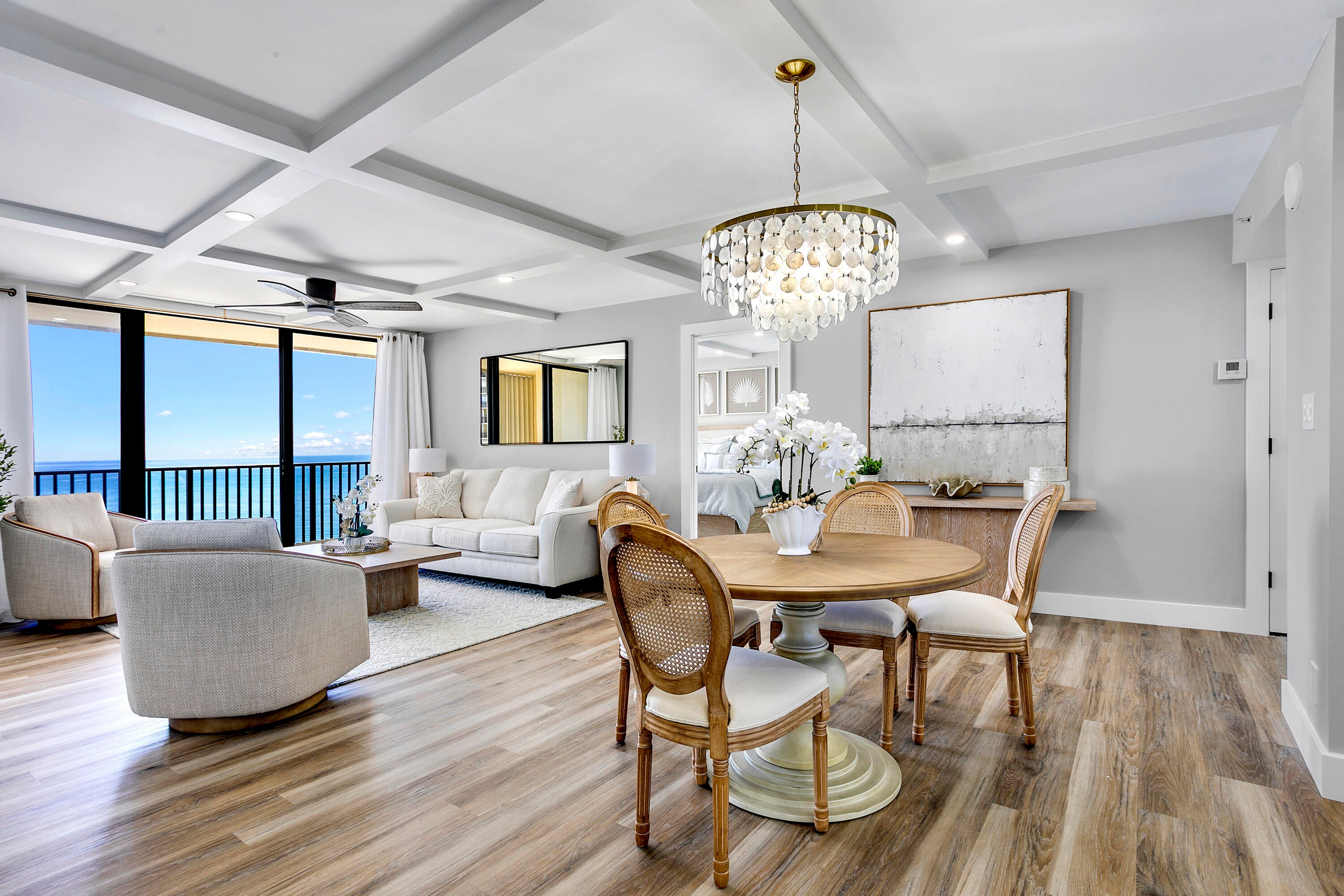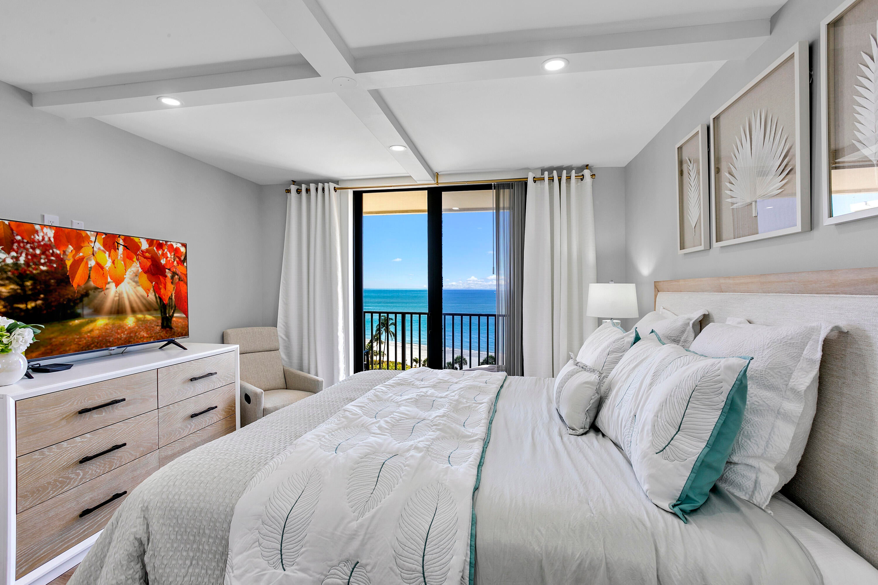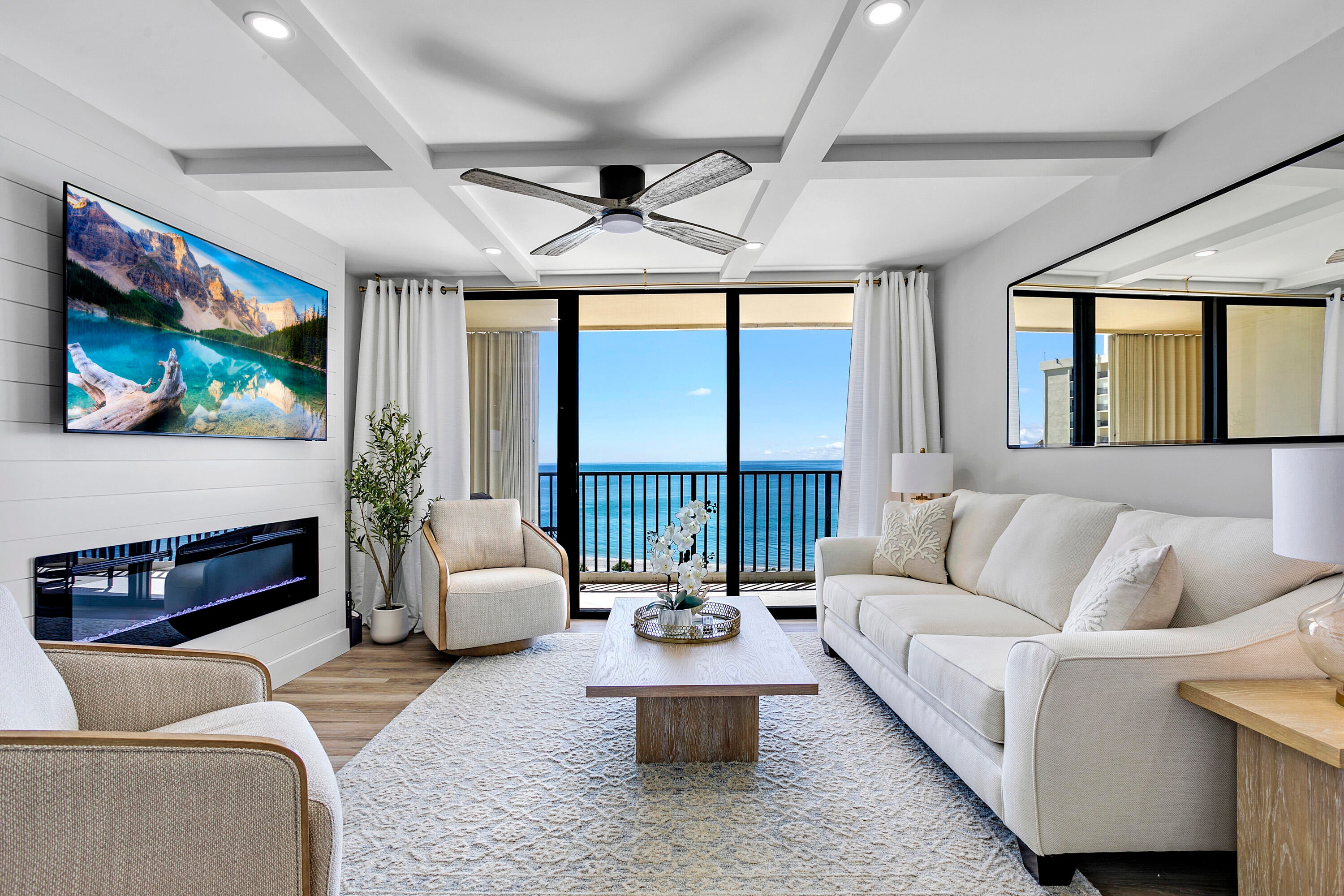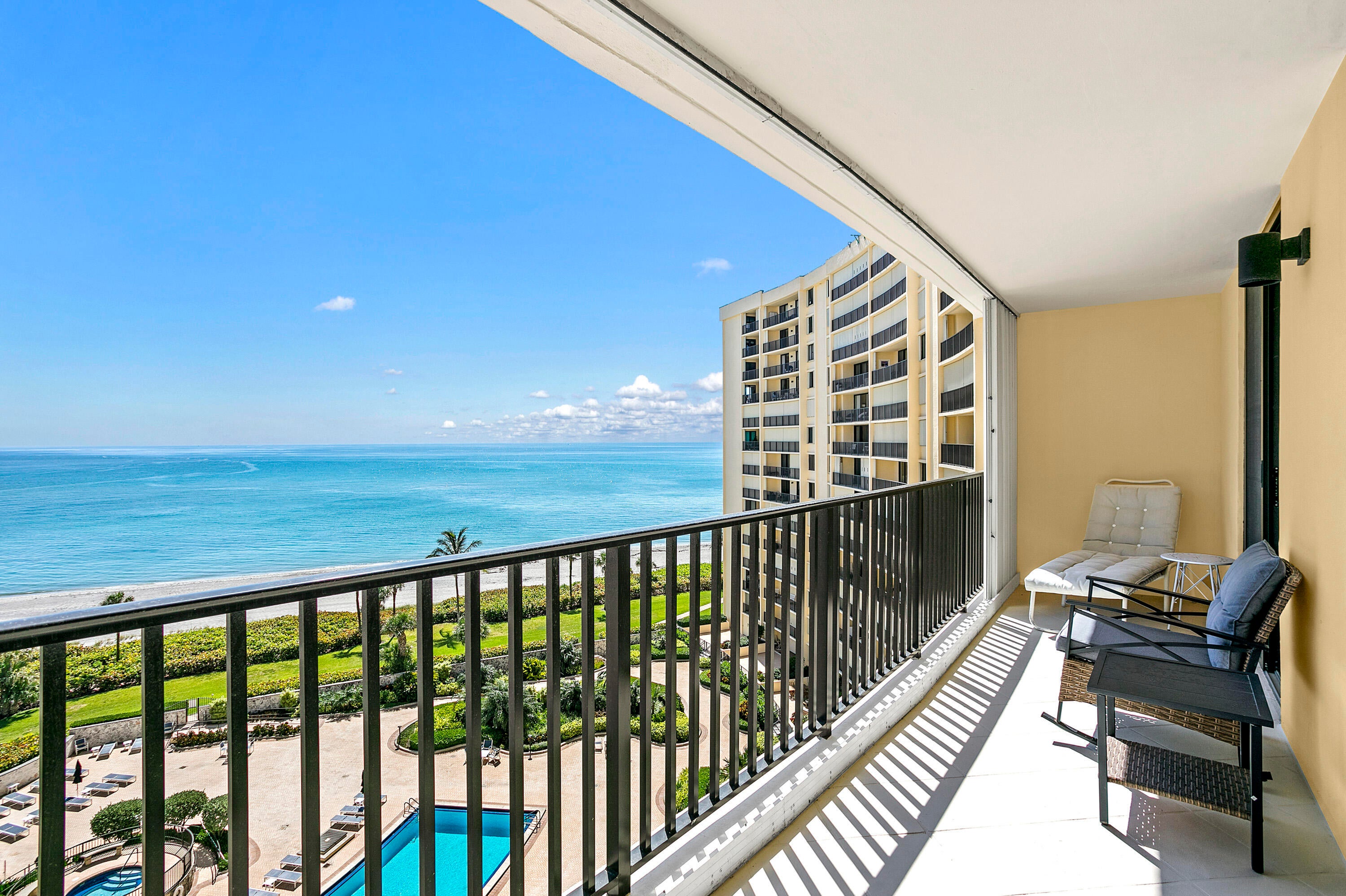 Directly on the beach in Jupiter with a stunning 9th floor, due east ocean view. This 2 bedroom / 2 bath condo is completely renovated top to bottom with all new furnishings (2024). If you have high expectations, you will appreciate the $300k+ interior renovation + the brand new decor selected and styled by a local designer. Offered seasonally @ $11,500 / month with a 4 month minimum lease, or $7000 / month annually turnkey. Extensive building renovations are complete! Ocean Trail is directly on the beach and offers heated pools, spa, sauna, fitness room, social activities, tennis, gated entry, and secure under building parking.Full renovation includes: Impact sliders and windows Doors, trim, moldings Appliances and AC Custom closets Open foyer and kitchen Built-in buffet cabinetry with beverage cooler Custom office space or makeup vanity in the primary bedroom Every piece of decor and furnishing is brand new Built-in media console with ambient fireplace and customizable lighting All utilities are included in the rent, except annual tenants pay electric charges. $11,500 / month for season $7,000 month for an annual lease $7,000 deposit and $150 condo rental application fee $250 exit clean fee Tenants will be required to provide a credit and background check prior to lease approval. No smoking is permitted inside the condo, or on the balcony. The State of Florida engineering inspections are complete, and all building renovations are done.