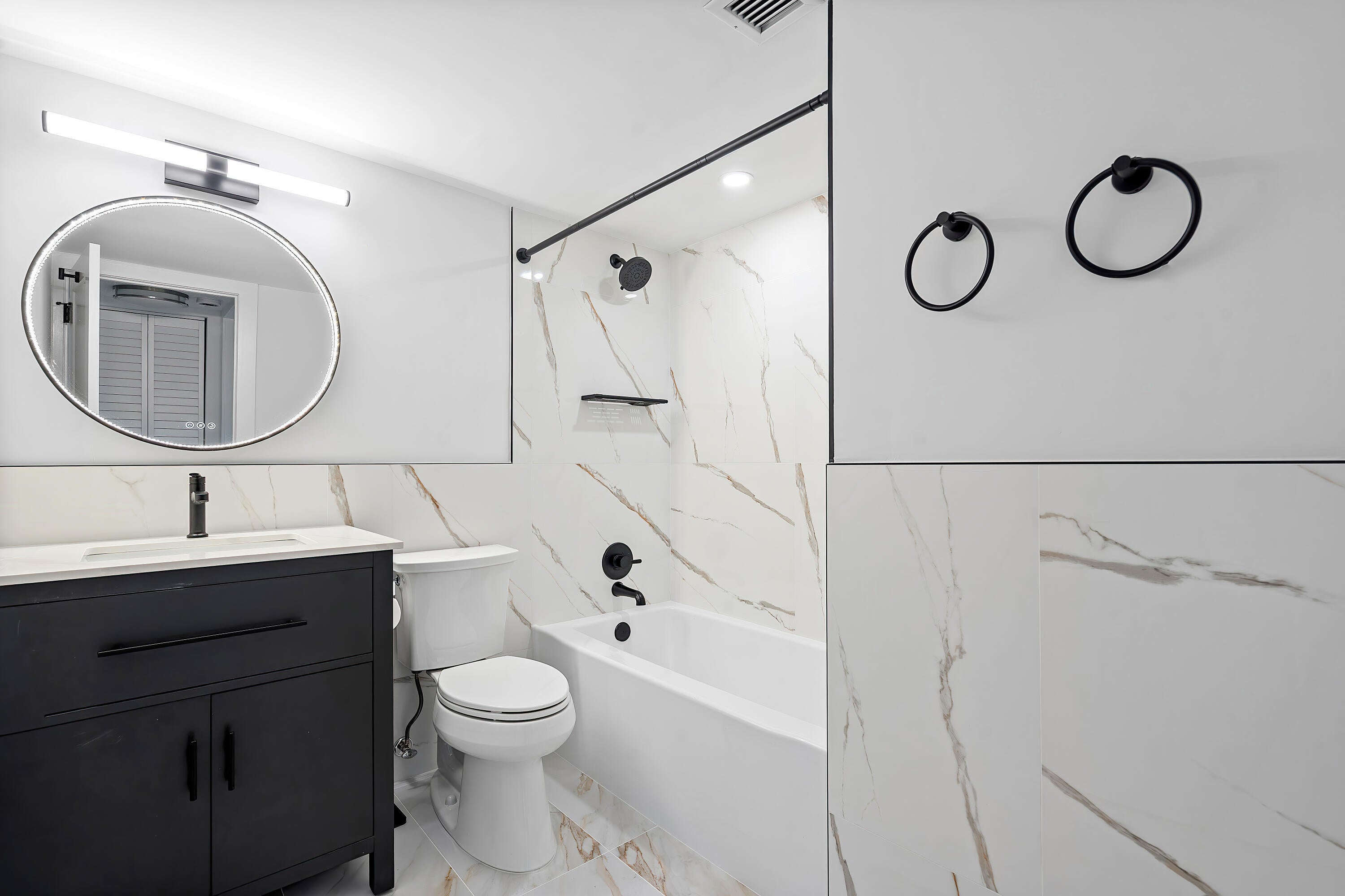 Welcome to Unit 109 at Boca House -- a stunning, fully renovated water-front 2-bedroom, 2-bathroom ground-floor condo offering 1,056 sq ft of modern coastal charm. Every detail of this home has been thoughtfully updated. The brand-new kitchen features beautiful quartz countertops, soft-close cabinetry with ample storage, and brand new premium stainless steel Samsung appliances. The open concept provides the ideal space for entertaining and hosting family and friends...The combination of the natural light, fresh interior paint and recently installed vinyl flooring, give the unit has a light and bright feel throughout. A new electrical box was installed in 2025, and the unit is fully equipped with impact rated windows, sliders, and a brand new front door! Open your sliders to your screened in patio, where you can enjoy the peaceful views of the intracoastal. The building features a private pool, easy access to the beach, and is minutes from the shops & restaurants of Mizner and Royal Palm Plaza. Boca House and unit 109 provides everything there is to love about the South Florida Coastal Lifestyle and is sure to leave a lasting impression!