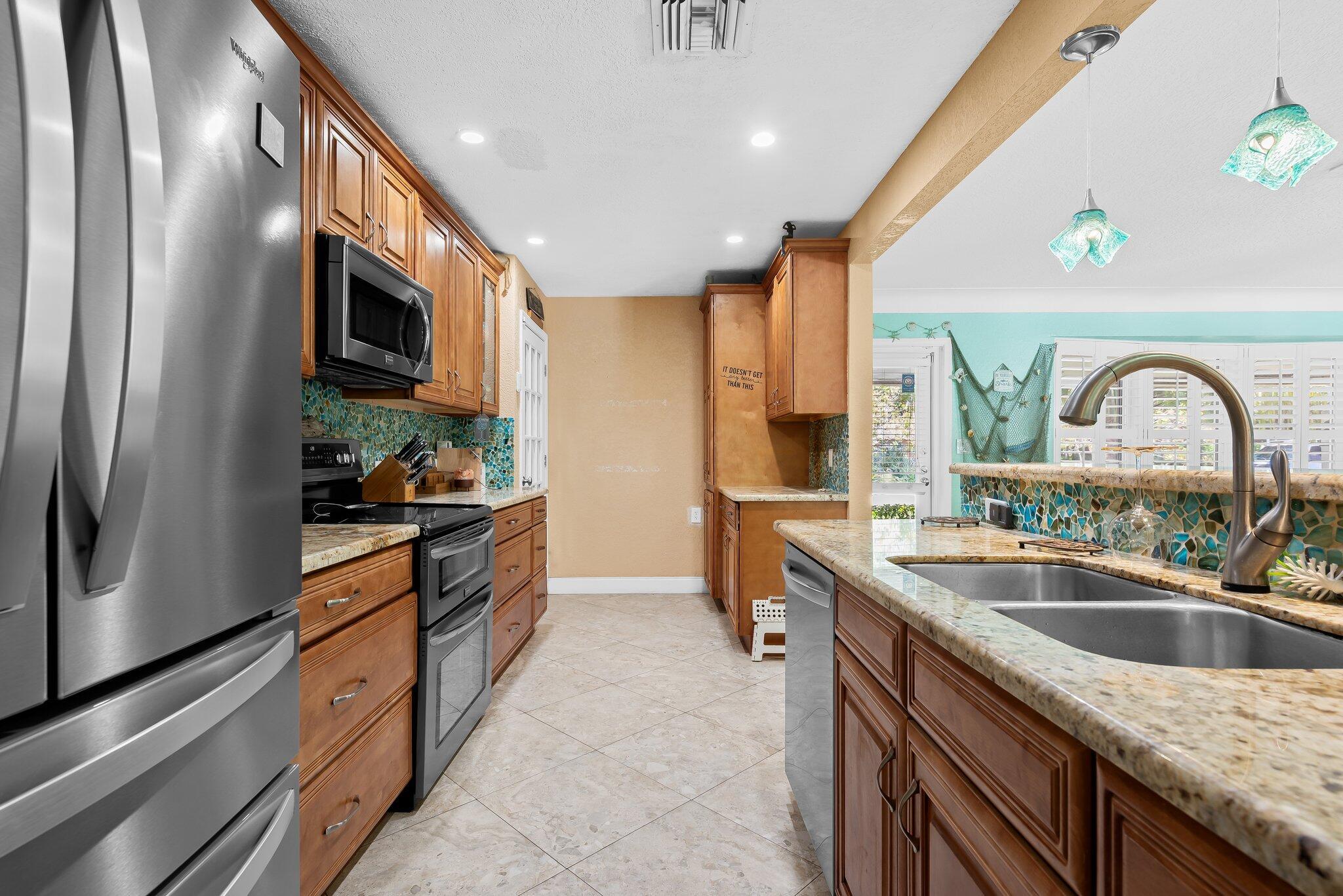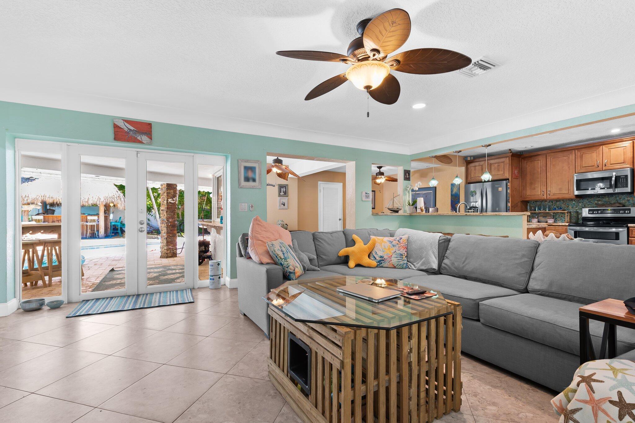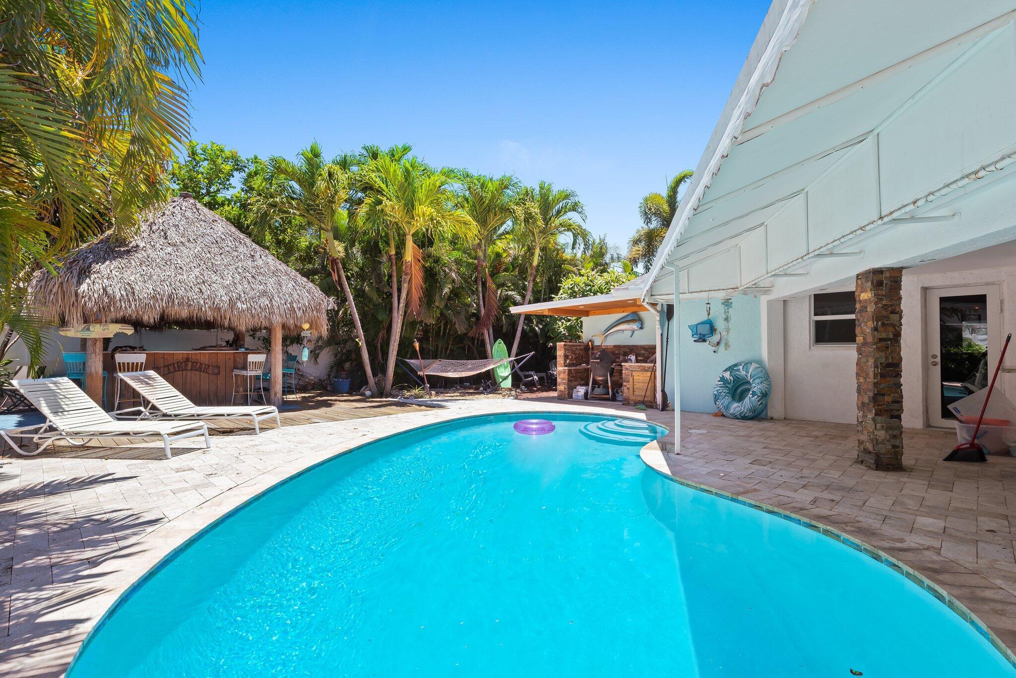 Tropically updated 3BR/2BA pool home on a corner lot in sought-after Palmetto Park Terrace. Zoned for Addison Mizner Elementary and Middle (A+ rated) and Boca Raton High School (A rated). This stylish home features a spacious open kitchen that flows into bright living and dining areas. The split floor plan offers privacy, with the primary suite overlooking the lush backyard and boasting an updated en-suite bath. Two guest bedrooms share a full bath with direct pool access. Enjoy a private tropical oasis with a pool, covered patio, fire pit, and powered tiki bar. Impact glass throughout and new roof (2024). Move-in ready and perfect for entertaining!