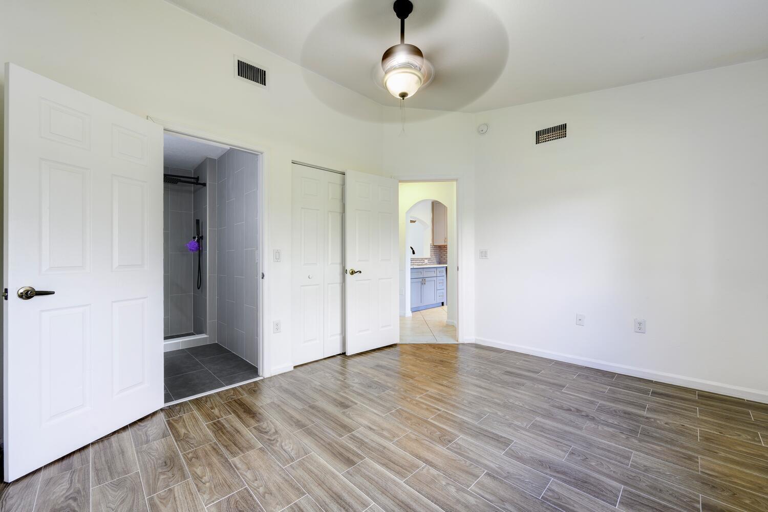 Now Available! This beautifully renovated 2-bedroom, 2-bathroom condo is available for rent in the highly desirable Cove at Briar Bay. Located on the second floor, this modern and contemporary unit features a spacious split floor plan with vaulted ceilings and tons of natural light. The main living areas have ceramic tile flooring, while the bedrooms offer wood-style ceramic plank floors, each with a walk-in closet and ceiling fan. The master suite includes an en suite bathroom with a frameless glass shower, updated vanity lighting, and peaceful lake views right from the bed.The kitchen is fully updated with gray and blue cabinetry, marble countertops, a pantry, a bay window overlooking the lake, and a breakfast nook. It also includes recessed lighting, a metallic and glass subway tile backsplash, stylish pot and pan holders, and contemporary finishes throughout. There's even a stylish barn door in the living room that conceals the central AC and extra storage. A stackable washer and dryer is included for your convenience. The unit has a private entrance and comes with assigned parking, plus plenty of guest parking. The rent includes water, and the community maintains the roof and exterior. Community amenities include a pool and tennis courts. The location is unbeatablejust a quick drive to Palm Beach International Airport, I-95, the beach, downtown West Palm Beach, Clematis Street, The Square, the Kravis Center, Ballpark of the Palm Beaches, top hospitals, restaurants, and shopping. This condo offers both style and convenienceschedule your showing today!