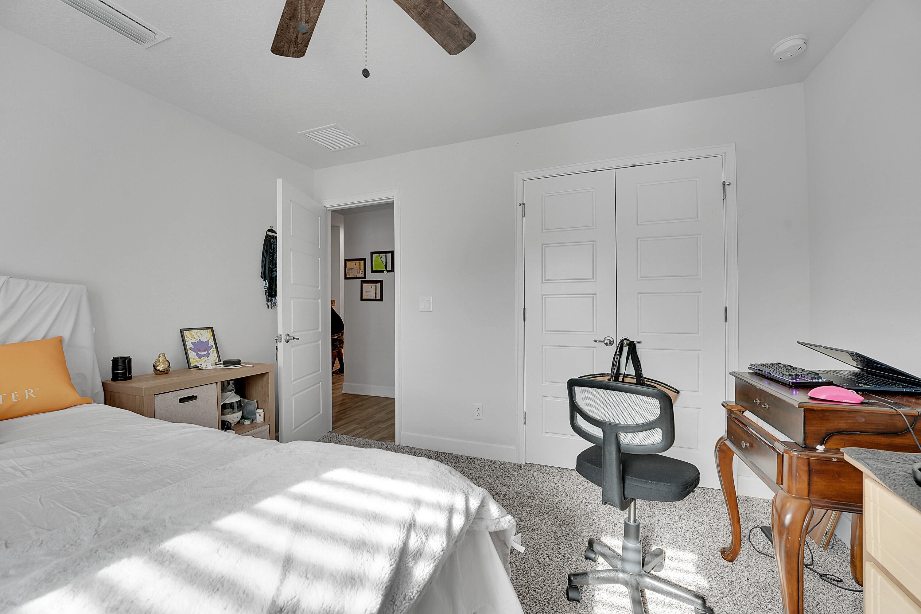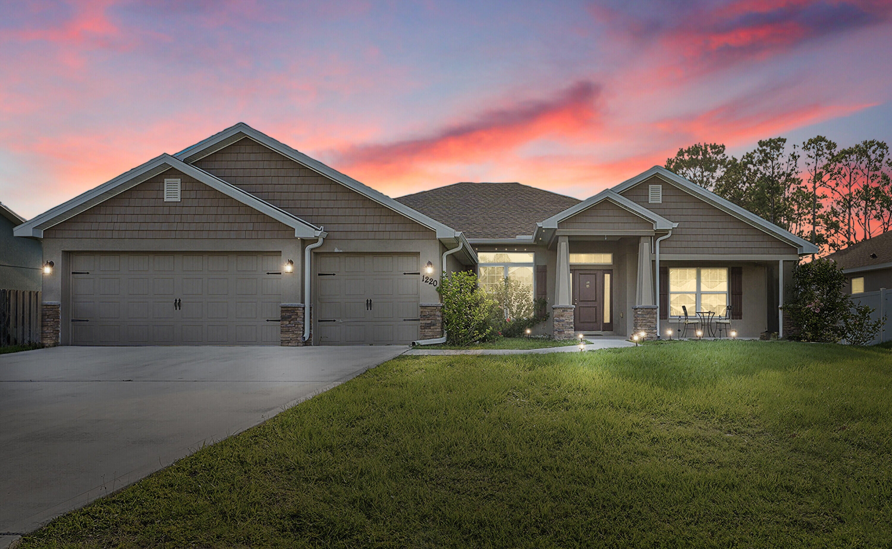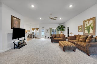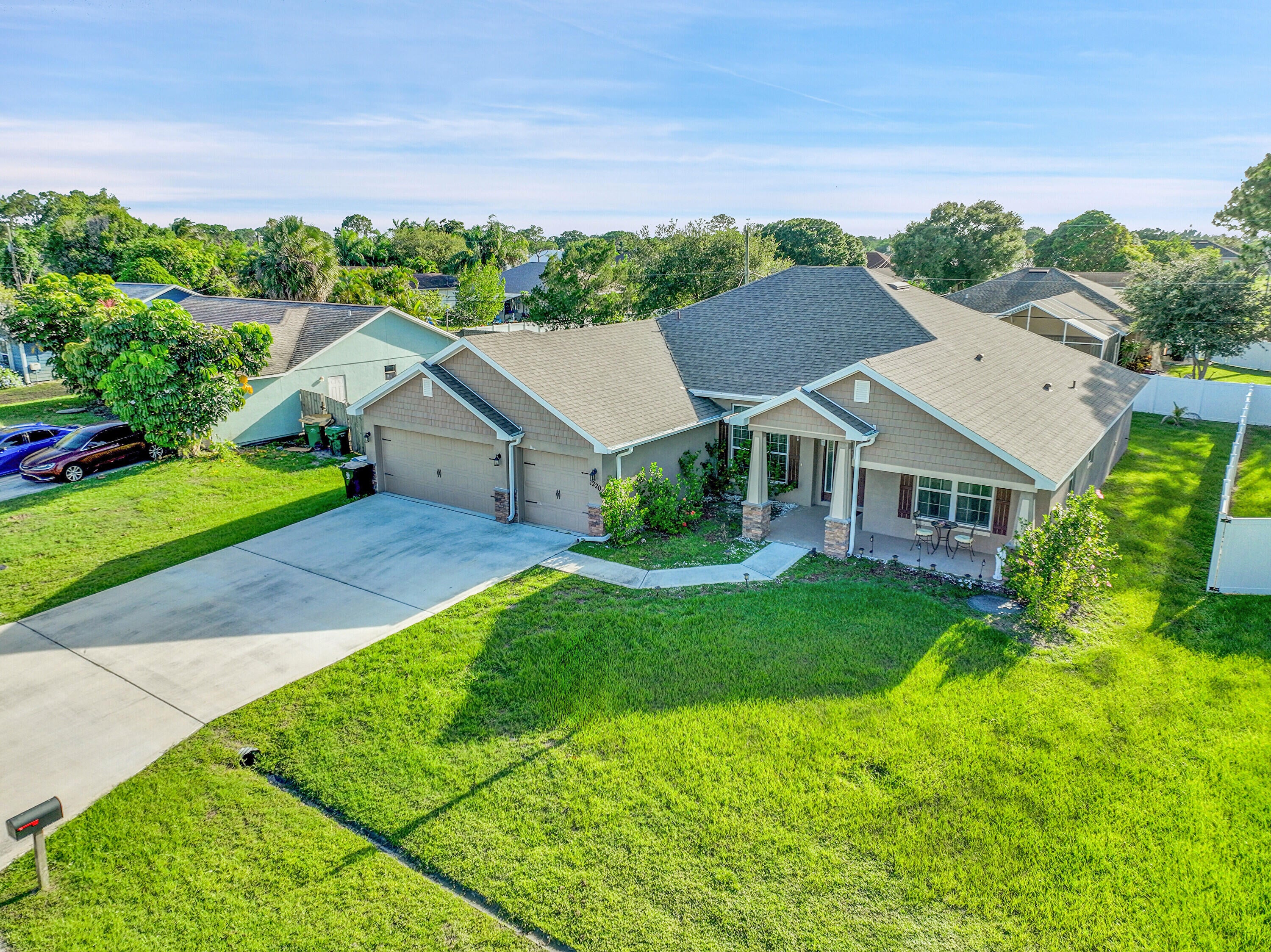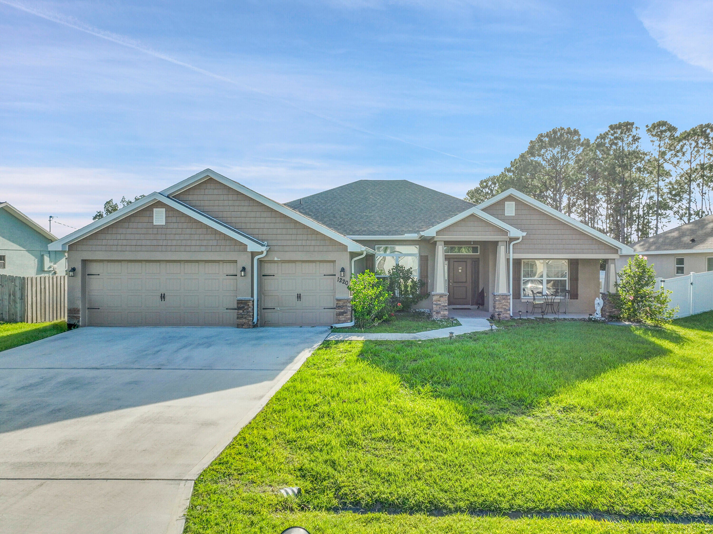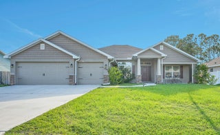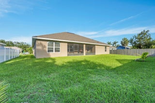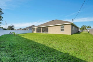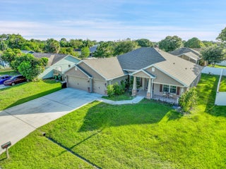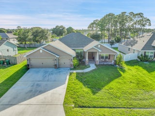 Spacious 4BR + Den / 3BA CBS home with oversized 3-car garage in desirable neighborhood off Crosstown Pkwy. Built in 2021 by Adams Homes, this 2,510 sq ft open-concept home features vaulted ceilings, split-bedroom layout, tile in main areas, and a large living room. The primary suite offers dual sinks, soaking tub, and separate shower. Bonus flex room can serve as 5th bedroom or office. Enjoy a covered lanai, screened patio, and a fenced backyard with room for a pool. No HOA. Close to schools, shopping, dining, I-95 & Turnpike. Pet-friendly!