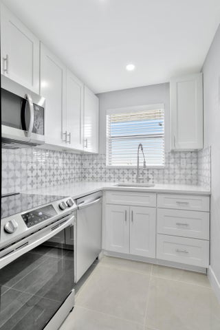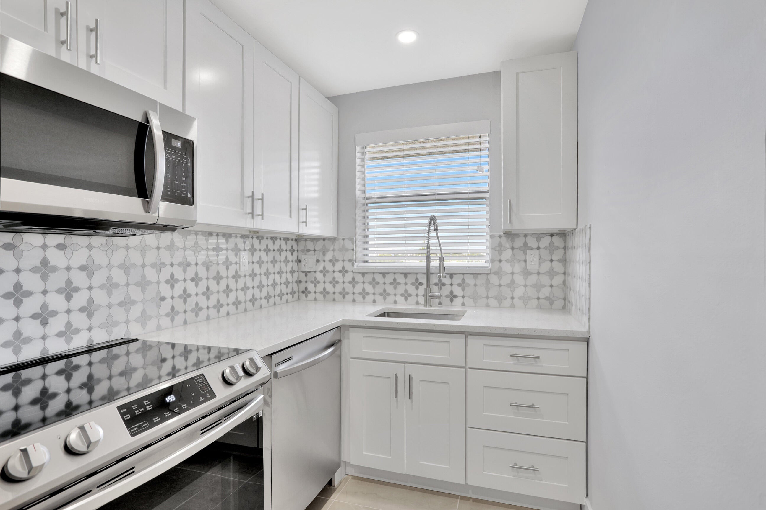 This stunning one-bedroom, one-bath condo in East Pompano is a true gem, located on the fifth floor, offering breathtaking views and abundant natural light. Recently fully remodeled, the interior boasts contemporary finishes and modern amenities. The spacious living area features an open concept design, seamlessly connecting the living room and a stylish kitchen equipped with stainless steel appliances, sleek countertops, and ample cabinetry. The bedroom offers a serene retreat with generous closet space and large windows that enhance the airy feel. The bathroom is beautifully updated with a luxurious shower, elegant fixtures, and chic tile work. Residents can enjoy access to building amenities, including a pool, and convenient laundry facilities. Located just minutes from the beach.