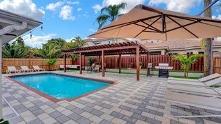 NO HOA home located near Sandalfoot in highly desirable Boca Raton! This property features a large extended paver driveway--perfect for work vans, trucks, or trailers. Inside, enjoy many updates along with sleek 30x30 ceramic tile flooring throughout. The spacious backyard is built for entertaining, boasting an oversized pool and a stunning pergola. A rare find with flexibility, space, and style! A Rated schools, and close distance to Walmart, Publix, many shoppes, and dining.
