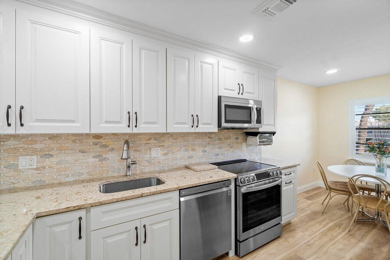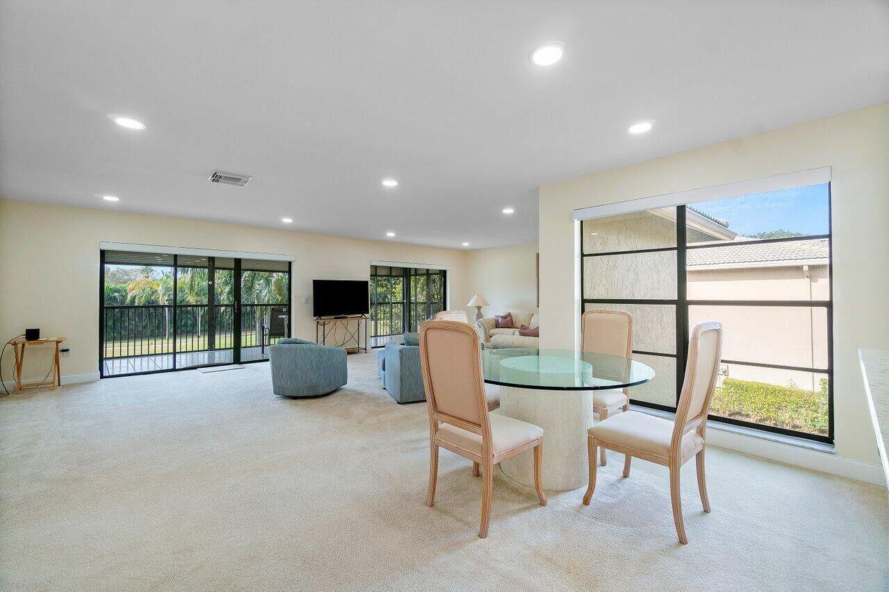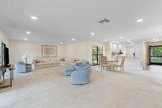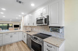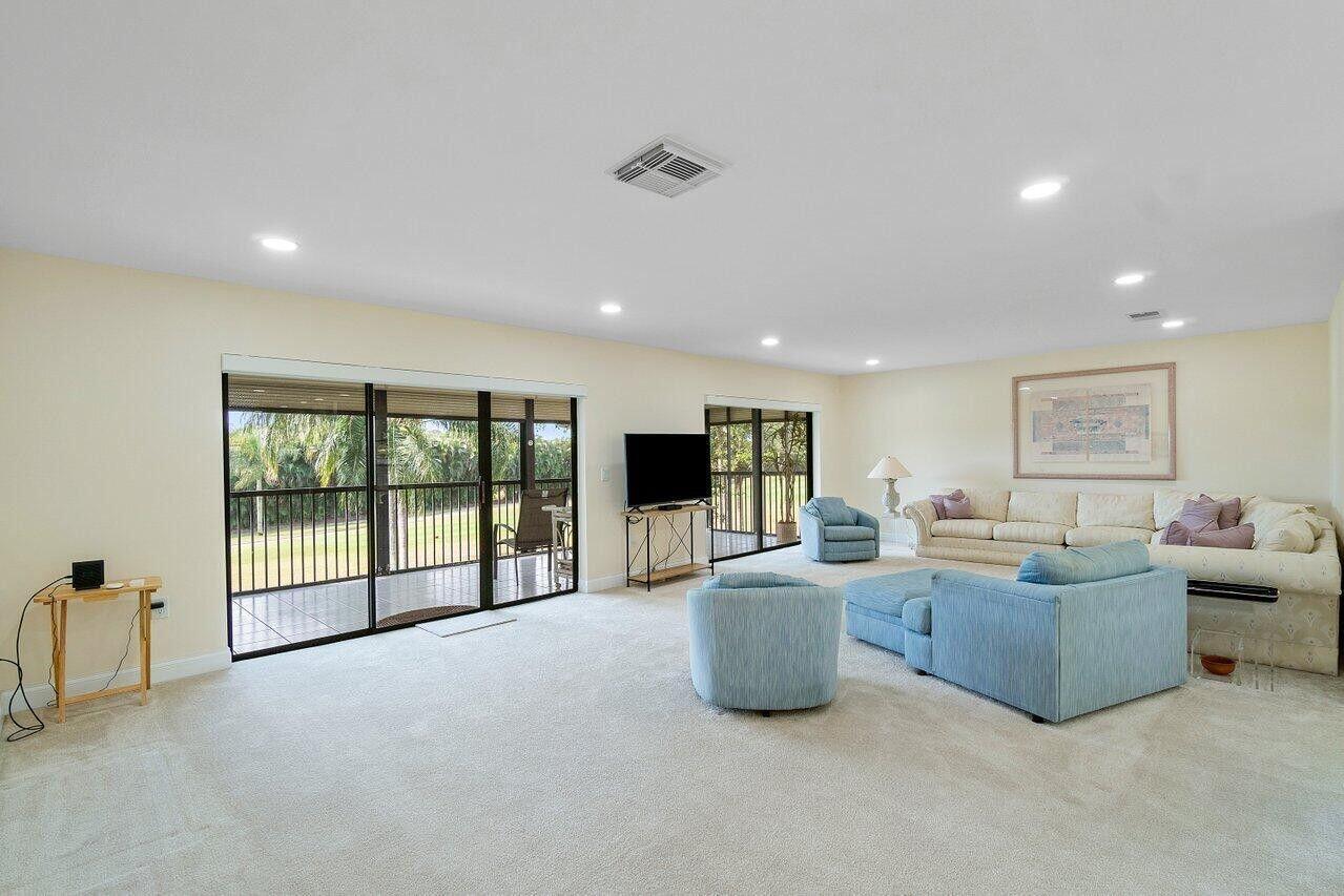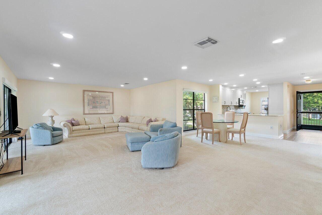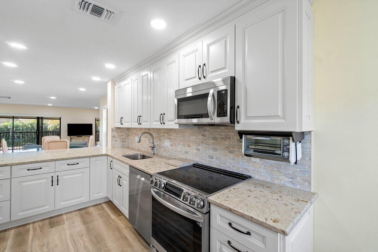 Beautifully updated convertible 3 bedroom, 2 bath condo located on the 2nd floor in the prestigious Hunters Run CC. Light, bright, &inviting, this elegant residence offers breathtaking panoramic views of the lush golf course,.Step into the spacious living area, where natural light floods through large windows w/modern plantation shutters & motorized Hunter Douglas sunshades--offering both style and effortless comfort. The open floor plan flows seamlessly into the oversized, screened lanai, perfect for enjoying morning coffee or relaxing evenings while taking in the sweeping fairway views.The heart of the home is a beautifully appointed open kitchen, w/Cambria quartz counters, custom cabinetry, LG appliances. Primary w/updated en suite bath. Recessed LED lighting throughout. Newer HVAC