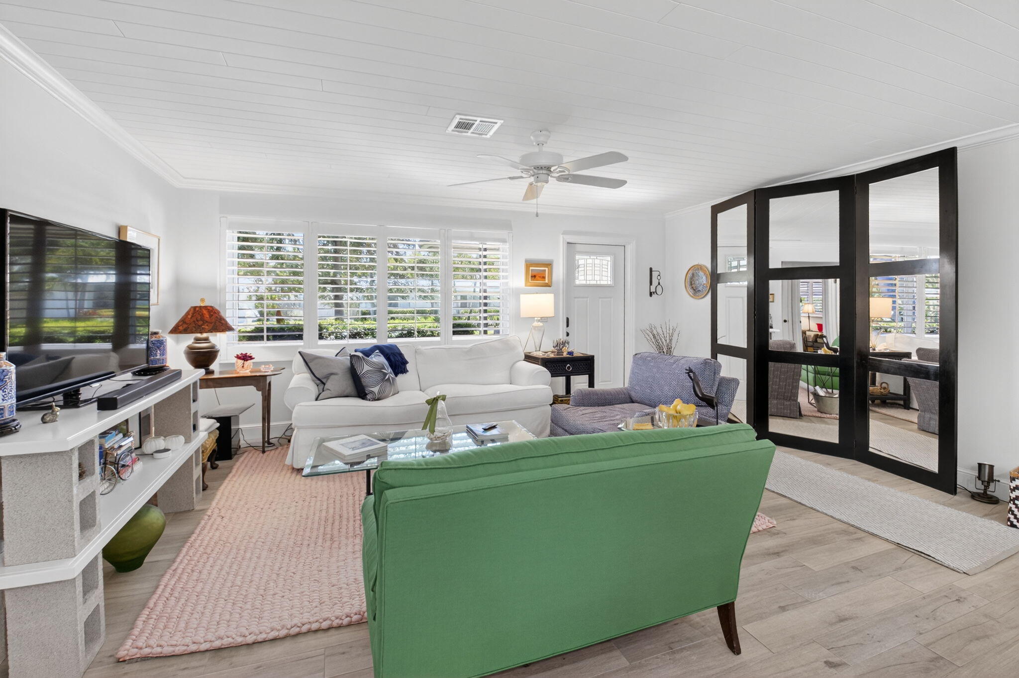 Don't miss your chance to live in one of the hottest areas in town! Step into this beautifully renovated home, located in the highly sought-after Chapel Hill neighborhood. This charming residence offers the perfect blend of modern comfort and timeless appeal, nestled in a tranquil yet convenient setting just minutes from downtown Delray Beach, Atlantic Avenue, pristine beaches, Bethesda Hospital, and easy access to I-95. As you enter, you'll be welcomed by an open concept living space bathed in natural light, creating a warm and inviting atmosphere perfect for entertaining or relaxing. The spacious kitchen is a true centerpiece, featuring gorgeous quartz countertops that complement the custom white shaker cabinets. Stainless steel appliances, including an island with a microwave drawer,provide both style and functionality, while the abundance of storage and counter space makes meal prep a breeze. The home boasts two thoughtfully designed bathrooms, each with modern fixtures and finishes. This home is equipped with hurricane impact windows and doors, offering peace of mind during storm season. You'll also appreciate the convenience of a tankless gas water heater, providing energy-efficient hot water on demand. Other notable features include porcelain tile wood-look flooring, Plantation shutters and crown molding throughout; shiplap ceilings in the living room, kitchen and primary bedroom; updated electrical panel; expanded driveway; freshly painted interior and exterior; and outdoor shower. Natural gas powers the range, washer/dryer, and hot water heater. Step outside to your private, well-manicured backyarda perfect retreat for outdoor dining, entertaining, or simply unwinding after a long day. The large, covered patio offers a shaded space for enjoying Florida's beautiful weather, while the fenced yard provides privacy and the opportunity to complete your tropical oasis with a pool and Tiki hut. Chapel Hill is a non-HOA, pet-friendly community known for its walkability and golf cart-friendly streets. Just a short stroll from your front door, Forest Hills Park awaits with its playground, picnic spots, and sports areasideal for enjoying outdoor activities with family and friends. Whether you're heading to work, dining at one of Delray's best restaurants, or spending a day at the beach, you'll love the convenience of this prime location. Don't miss the opportunity to call this beautiful home your own!