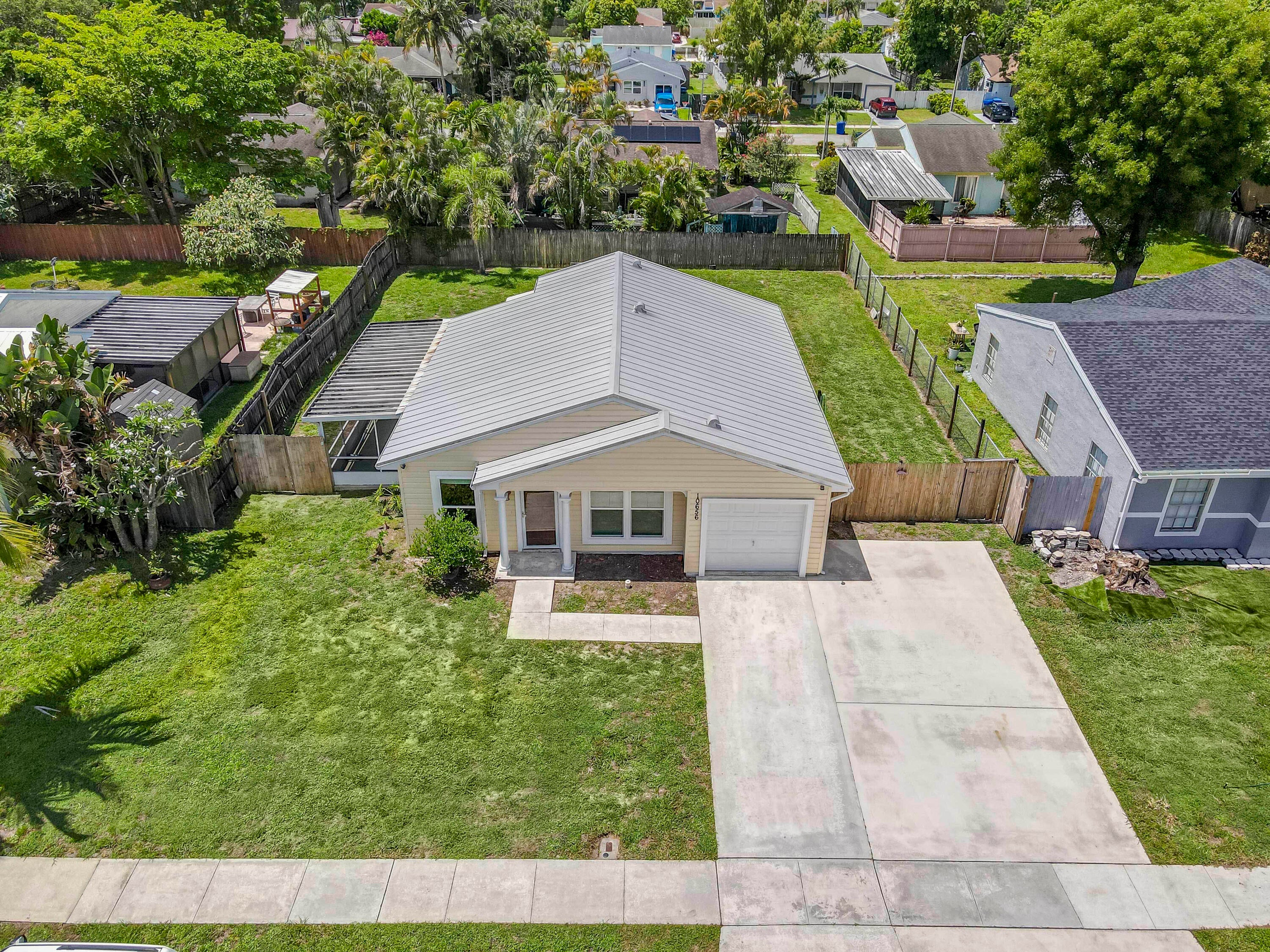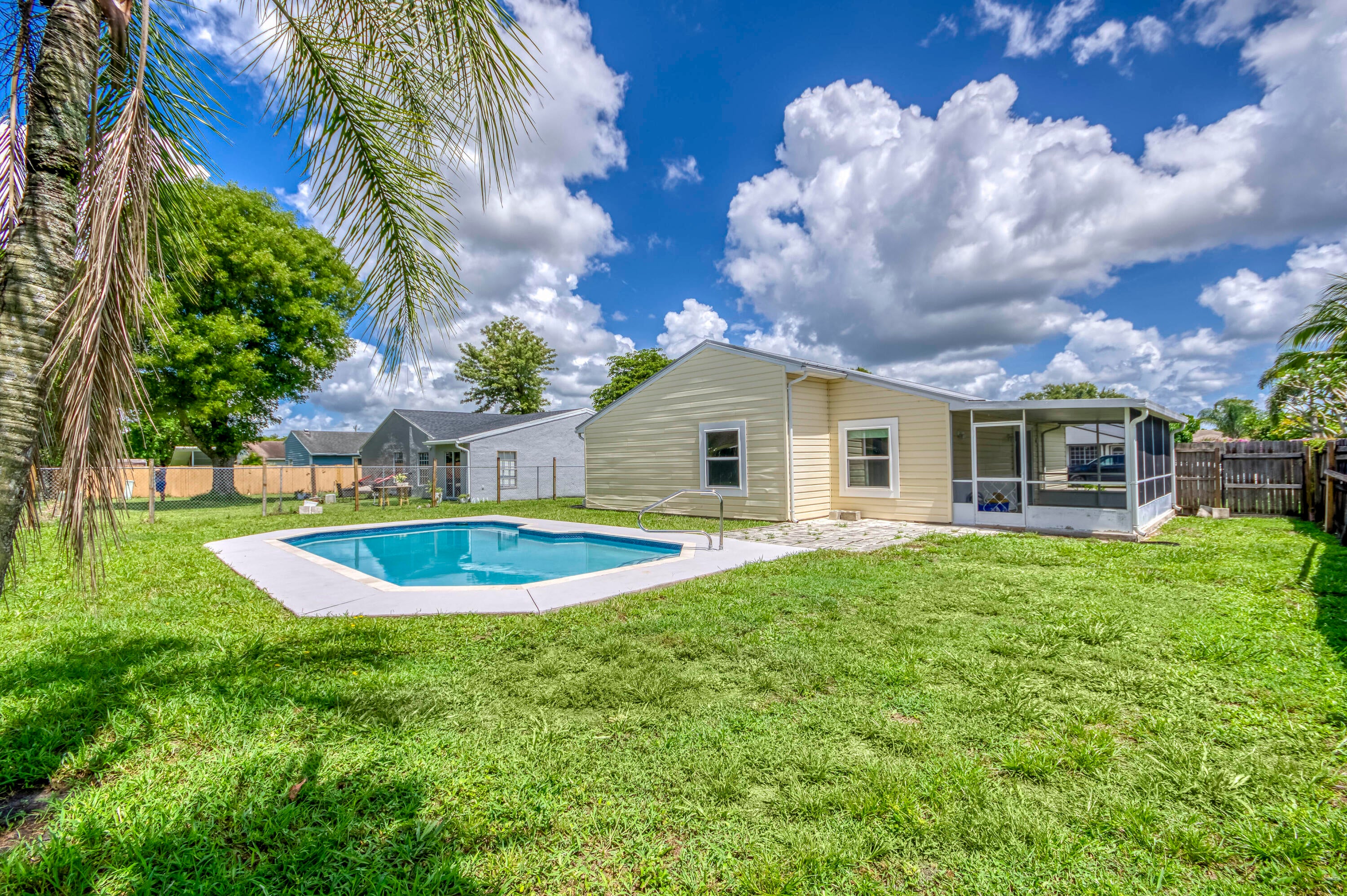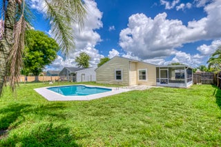 This updated, move-in ready 3-bedroom home in Counterpoint Estates offers charm, comfort, and a private backyard oasis. Featuring an updated kitchen with white cabinetry, stylish backsplash, and vaulted wood-paneled ceilings, plus real wood floors throughout. The bathroom is oversized and newly renovated with elegant tile work and a clean, modern finish. Enjoy the screened-in and covered patio, a private in-ground pool, and a generously sized backyard with green space for kids or pets. A 2016 roof, massive driveway, and one-car garage add to the value and functionality. Located in a quiet, family-friendly community with three parks, walking trails, and lakes with a shared dock, ready for your personal touch, this is a rare find with incredible curb appeal potential. No HOA!