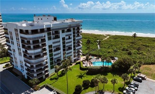 Life's better in turquoise. This 4th-floor corner condo captures breathtaking ocean views from its expansive wrap-around balcony; your private front-row seat to paradise. Inside, natural light floods the open layout showcasing a modern kitchen w/granite counters, breakfast bar, & sun-drenched dining nook. Daily ease is assured w/in-unit laundry, covered parking, & essential impact glass. Indulge in a pool, spa, fitness center, & private beach pavilion offering direct sand access. Nestled in an idyllic oceanfront location, you're also mere moments from the Intracoastal & miles of nature trails.