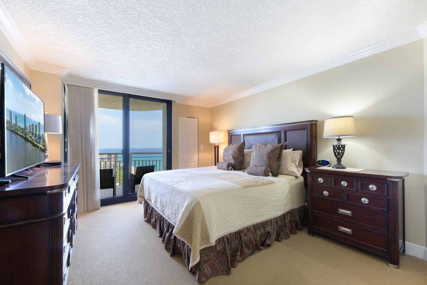 2026 Seasonal Lease avail 4 to 6-mo (price based on lease duration). Oceanfront living at the Tiara--turn-key 1BR, 1.5BA penthouse perfect for your winter escape. Exquisite views of the ocean and intracoastal waterway! Access balcony from LR & BR, quartz counters, SS appliances & W/D inside. Ample closet space. Sought-after building with 24/7 concierge, staffed gate, and guest suite. Amenities include heated pool, jacuzzi, tennis, pickleball, fitness with steam/sauna, billiards, library, and card room. Beachside restaurant offers dine-in or delivery. 43rd-floor Marquis Lounge with views, dining, and bar. Cable, internet, water, and common area Wi-Fi included. Just 15 mins to shopping/dining and 20 mins to PBI.