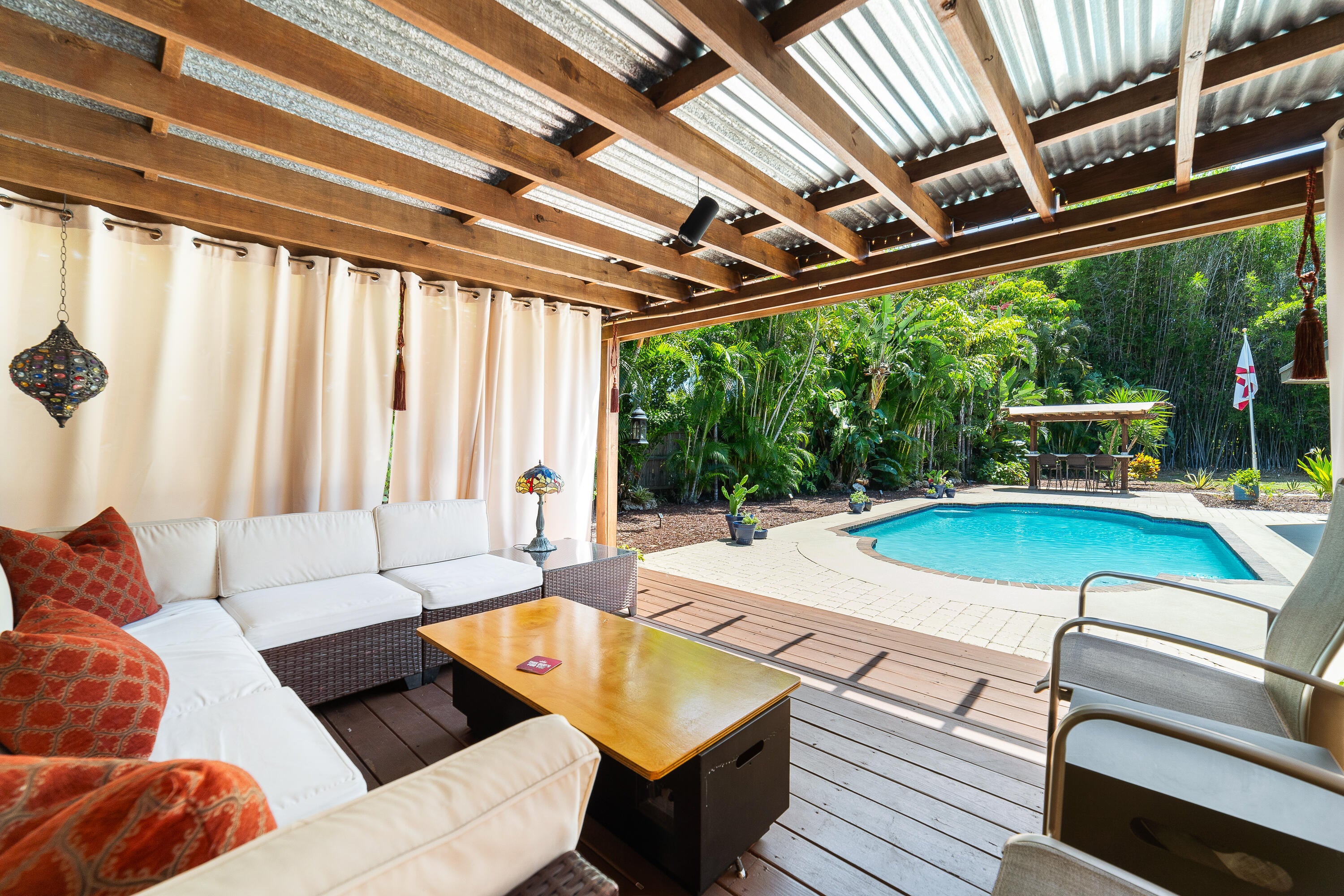 Tucked away at the end of a quiet cul-de-sac, this beautifully updated 4-bedroom, 2-bath home in Boca Raton Square offers comfort, privacy, and style. Set on a generous 1/3-acre lot, the property has been thoughtfully remodeled over the years, including updates to the kitchen, roof, flooring, and AC. The backyard is made for relaxing and entertaining, featuring a Roman-style Diamond Brite pool, spacious sun deck, and a custom-built tiki bar under an enclosed patio. A barrel tile roof and 2-car garage add to the home's value and curb appeal. Inside, the layout is functional and inviting, with natural light flowing throughout. Whether enjoying quiet evenings or hosting gatherings, this home offers the space and features to enjoy every day.Located in a highly rated A+ school district and just 2 to 2.5 miles from Mizner Park, Boca's vibrant dining and shopping scene, and the beach. Best of all, this home sits outside of a flood zone for added peace of mind. The back yard is large enough to in compass an addition or a mother in law suite. Also it has the room to store a large boat and or a 45 foot RV. There is no restriction by the city as long as the property is fenced in.