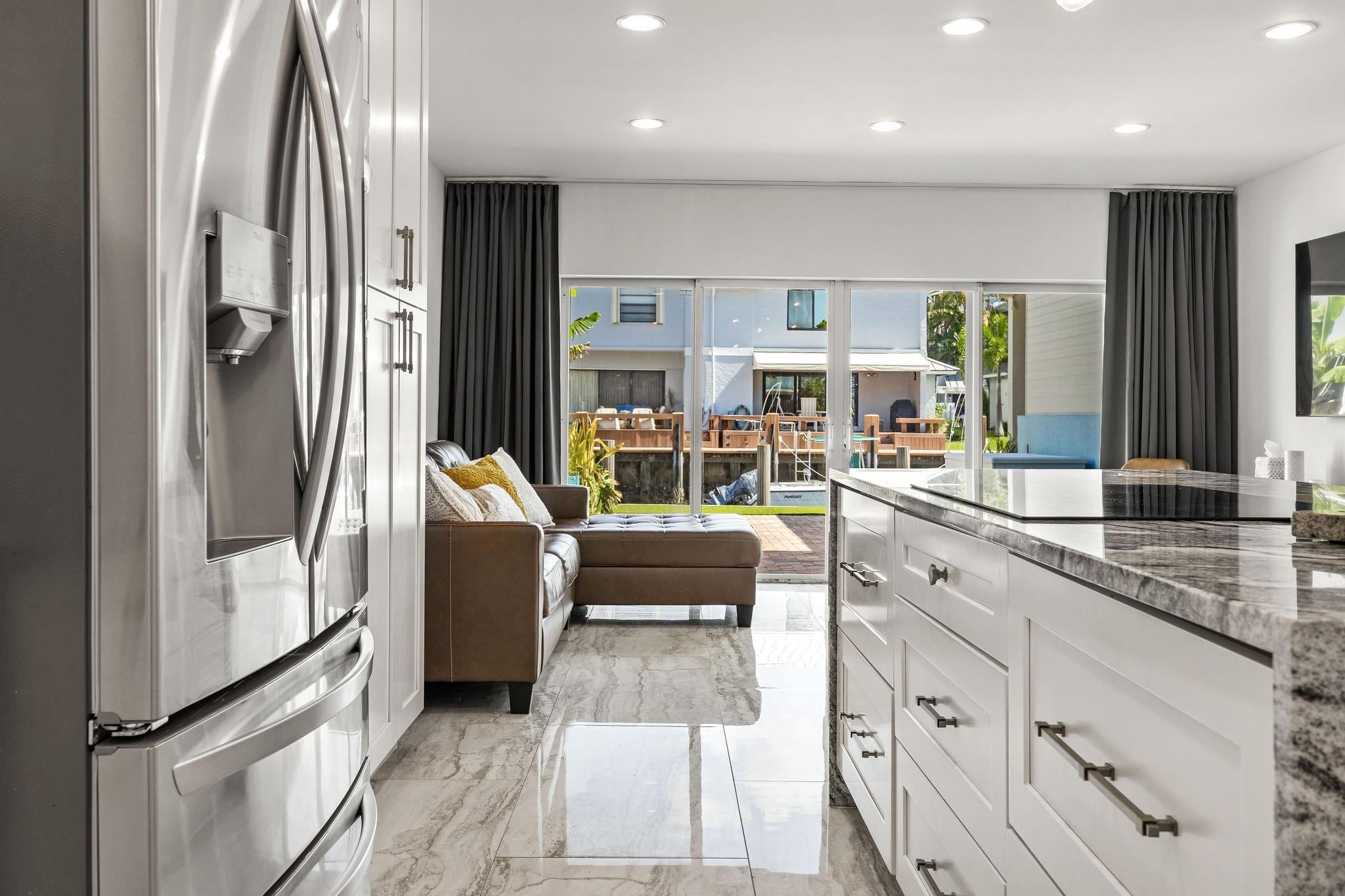 Month to Month orDiscover the ultimate boater's dream in this beautifully renovated townhome with direct access to the Intracoastal Waterway and Boynton Inlet. Enjoy a private 20-foot boat dock just steps away. This smart home has been thoughtfully redesigned with high-end finishes and modern details throughout. You'll find sleek features like a waterfall countertop, stainless steel appliances with an induction cooktop, and large-format tile downstairs. Upstairs boasts marble-accented bathrooms with a spa-style shower, body jets, and a freestanding soaking tub. Also included: full impact glass windows with shutters, updated plumbing, a 2024 AC, Boston pavers on the driveway and patio, and oversized closets. Best of all, there's no HOA. Live your tropical dream and boating lifestyle toda