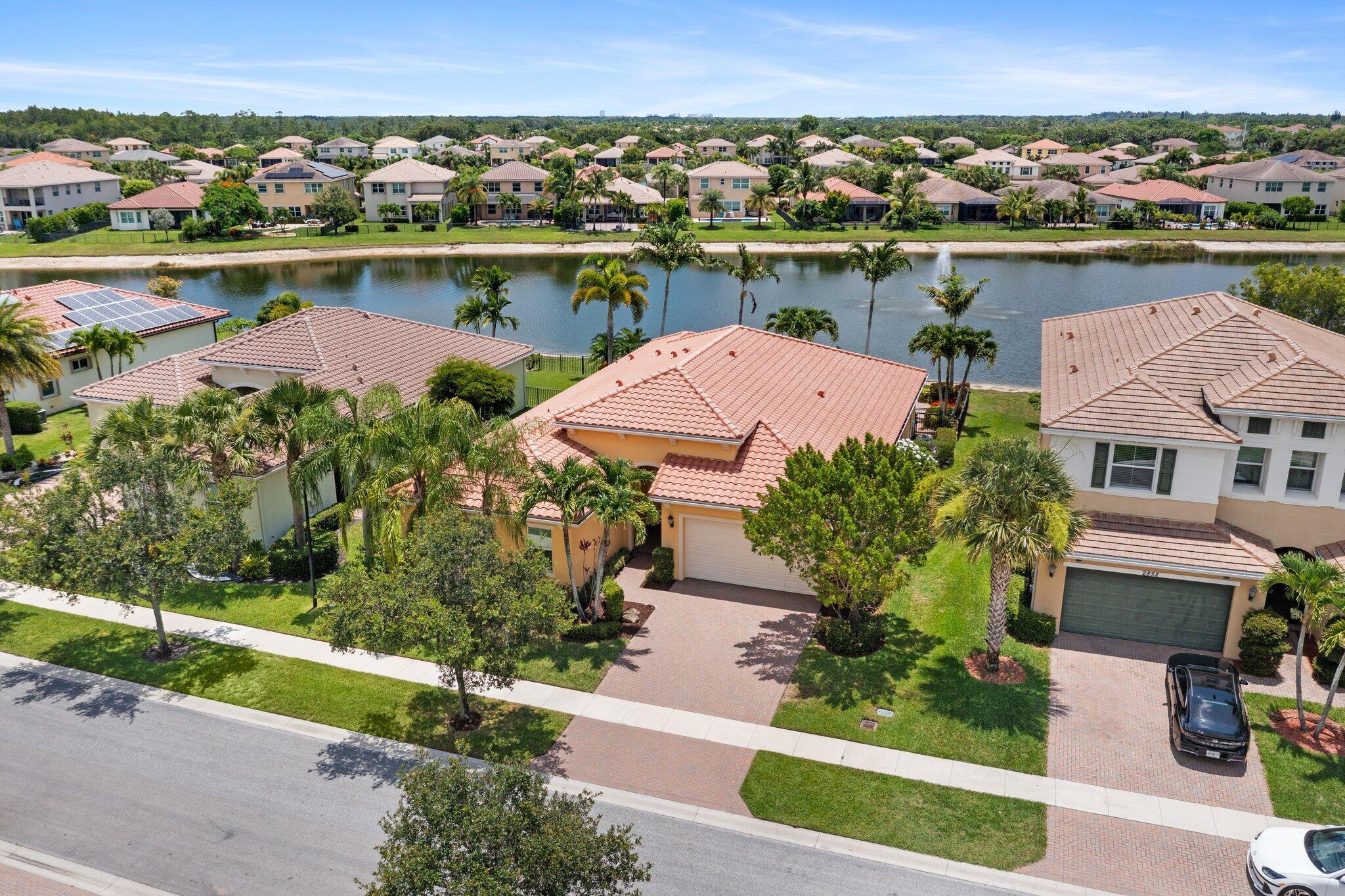 Welcome to 2854 Bellarosa Circle, a stunning residence nestled in the highly sought-after resort-style community of PortoSol in Royal Palm Beach. This spacious and beautifully maintained home features 4 bedrooms, 4 baths plus a versatile bonus suite, perfect for a home office, gym, or guest quarters.Enjoy a gourmet kitchen equipped with soft-close cabinets, granite countertops, stainless steel appliances, and a whole home water filtration system. The home also boasts a brand-new A/C system with a Reme Halo whole-home air purification system, full impact windows, in-house pest control, and fresh interior paint making it truly move-in ready. Step outside to your private backyard oasis, complete with a sparkling inground pool featuring a tranquil water fountain and panoramic waterfront view