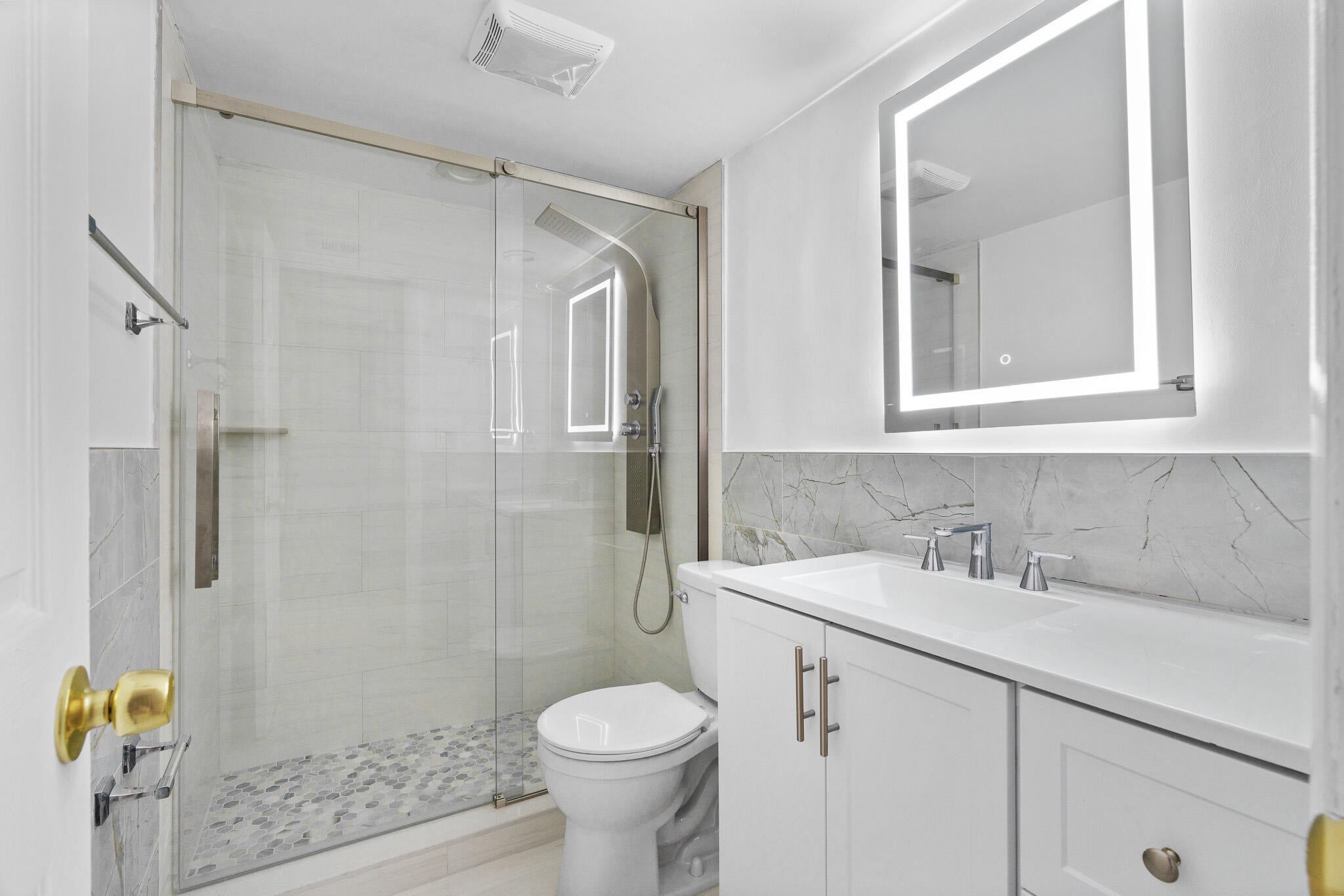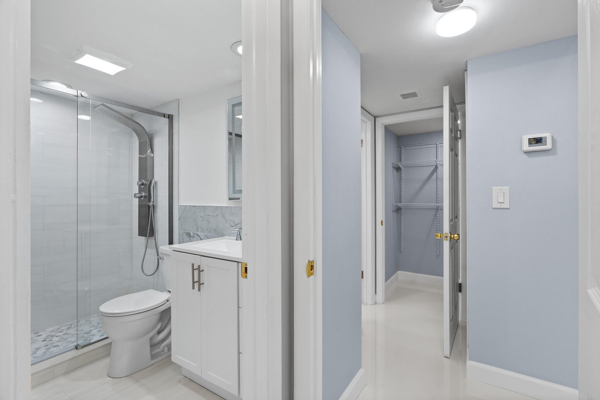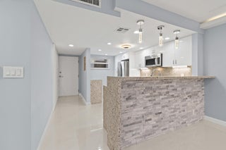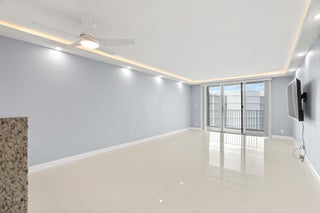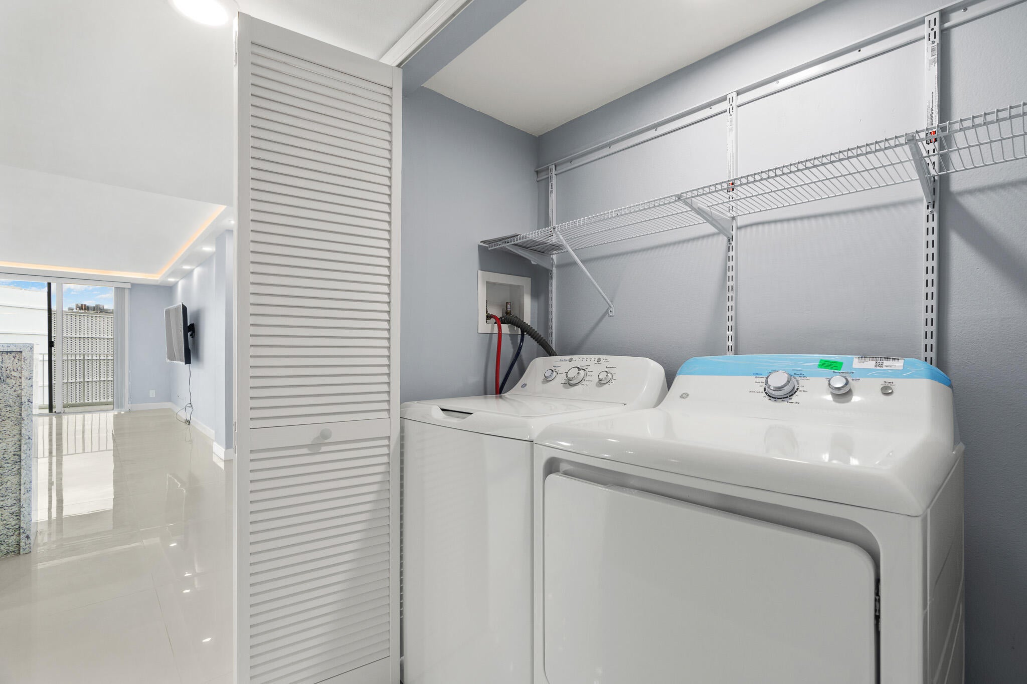 This stunning residence gleams from its meticulous top-to-bottom, fully permitted architectural redesign. It has been seamlessly transitioned from a spacious 1-bedroom into a possible 2-bedroom/Den/Office sanctuary, reminiscent of the finest Manhattan lofts. Every detail during its two-year metamorphosis was executed with unparalleled precision, representing nearly $200,000 invested in reimagining this unit. Upon entering the spacious living room, you'll immediately notice the very unique and comforting ceiling illumination surrounding the room and the gleaming 35'' grout-less off-white tile floors below. This is a chance to enjoy a piece of Florida's coveted coastal real estate and finally live out your coastal living dream escape. (Click the ''More'' link for additional details).Welcome to a truly revamped and luxurious coastal retreat! Culinary enthusiasts will revel in the kitchen, which features a symphony of sleek, brand-new stainless-steel appliances and sumptuous granite countertops. Storage is never an issue thanks to multiple ingeniously designed pull-out drawers in the counter-prep area and a floor-to-ceiling pantry. Indulge in the opulence of the fully revamped primary bath with its designer tile finish, glass doors, a state-of-the-art illuminating vanity mirror, and a super soaking double shower headperfect for washing off sand after a day at the beach. The additional half-bath for visiting guests has also been artistically re-crafted. Conveniently located next to this half-bath is an extra floor-to-ceiling storage room ideal for beach toys, luggage, or bikes. A tailored entrance welcomes you to the suite, where a full-sized Washer & Dryer is thoughtfully placed behind bi-fold doors in the hallway, replacing the previous stack system in the kitchena testament to ingenious spatial utilization. Step out through the double sliding glass doors onto the south-facing outdoor patio and enjoy the year-round Florida sunshine. You'll appreciate the partial ocean views by day and the city lights by night. Nestled directly on the golden sands of South Palm Beach on the coveted east side of South Ocean Boulevard, this home offers all this and more at Horizons East, complete with an oceanfront pool deck and a full exercise room. You'll also be within easy walking distance to the local Publix grocery store and a fine array of local shops and restaurants. If you need to travel, Palm Beach International Airport is just a 15-minute drive away. Seize the chance to make this unparalleled vision your reality!