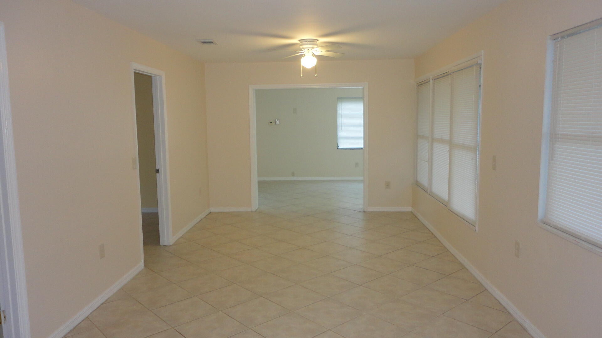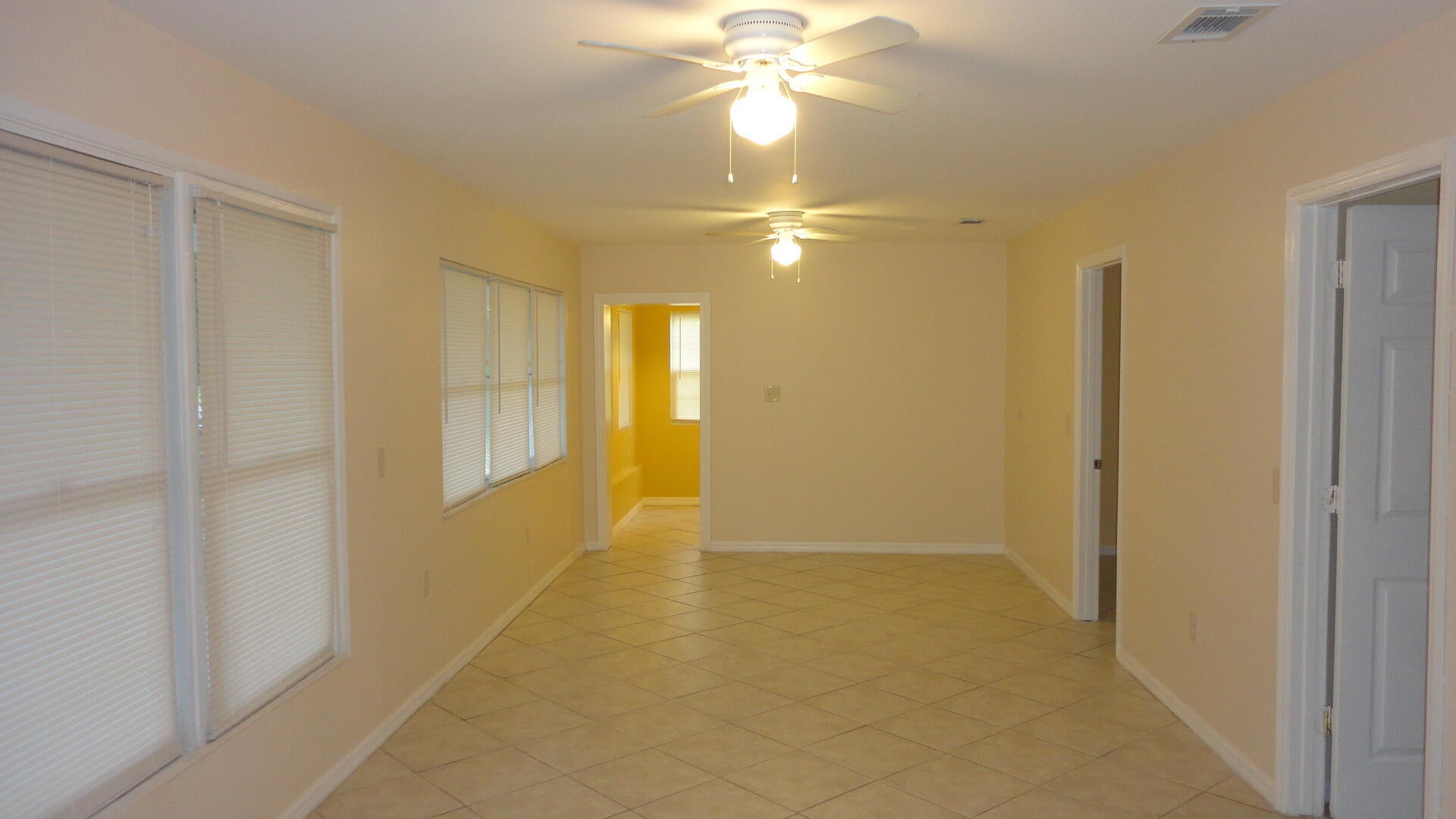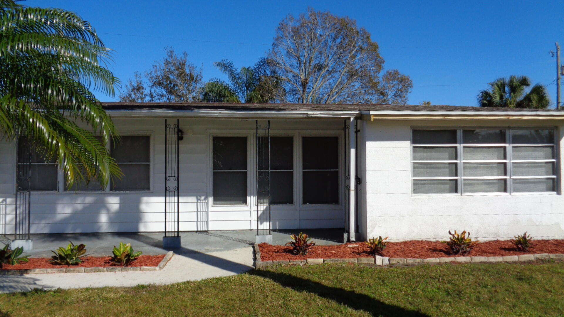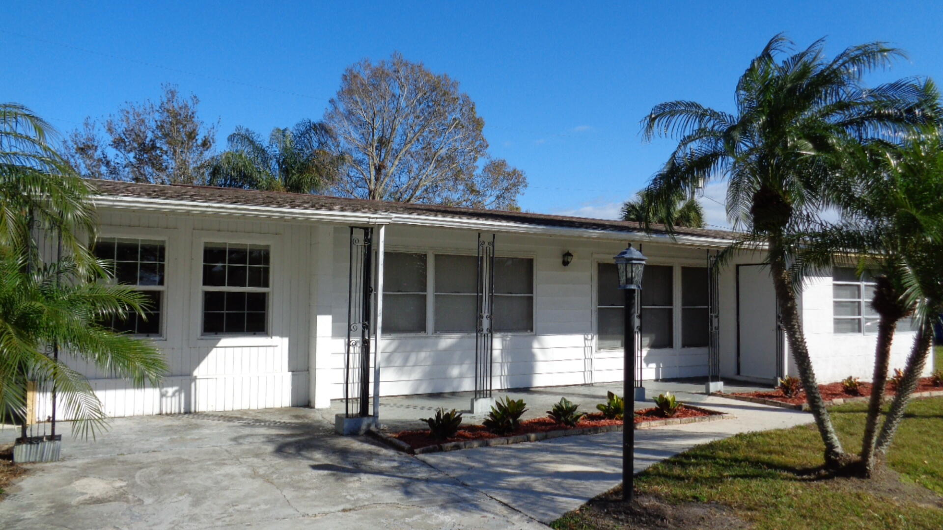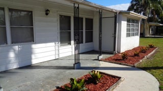 Unfurnished annual rental. Available for new residents NOW. This Charming 2 bedroom, 2 bath home plus multifunctional room, large partially fenced back yard. Tile in all the rooms, living dining combo, Florida Room, covered front and back porches, patio for BBQ. Laundry closet with stackable washer and dryer. Breakfast nook in the kitchen. Home located in desirable Rock Ridge. Convenient central location in heart of Vero, near shopping, restaurants, medical, banks, parks, beaches, theater. Monthly lawn service included in monthly rent. Pets permitted, only prior owners approval is required for pets. Call to set appointment time for previewing this home inside. Reserve it for your move in date.