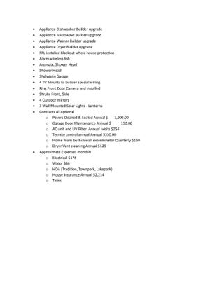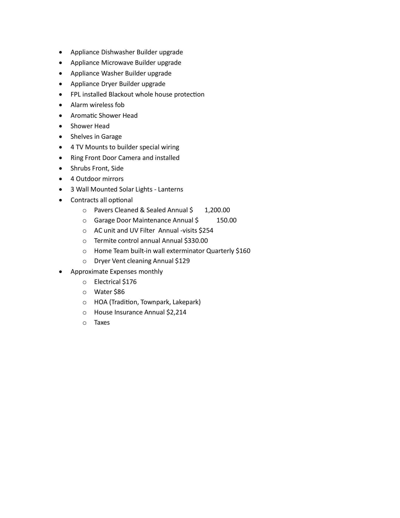 Auto Garage Open, Dishwasher, Disposal, Dryer, Fire Alarm, Microwave, Range - Electric, Refrigerator, Washer, Water Heater - Elec