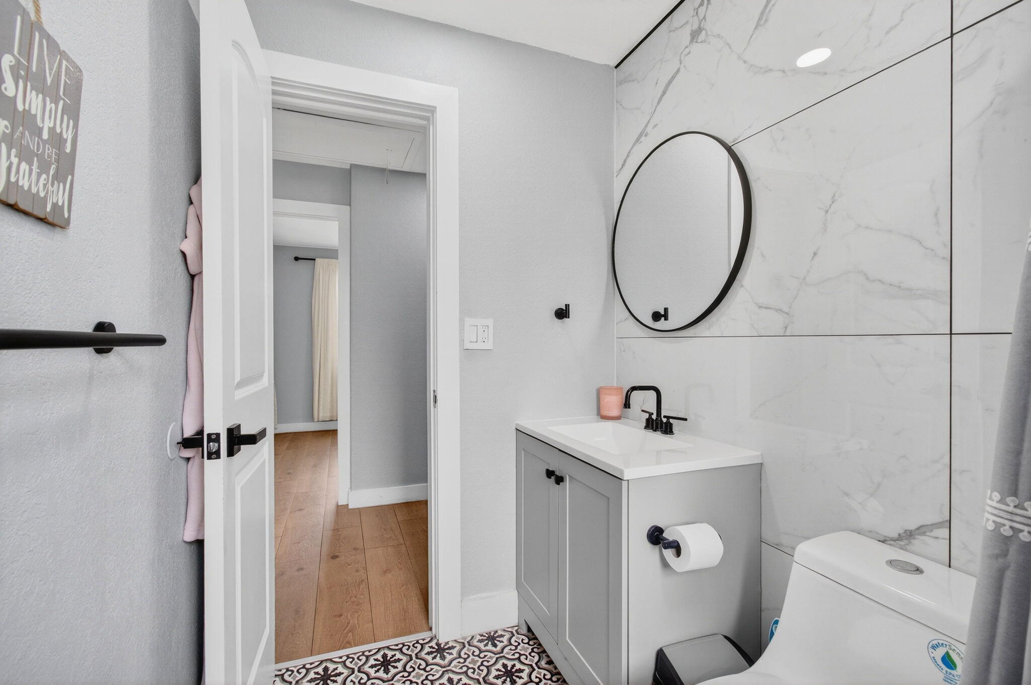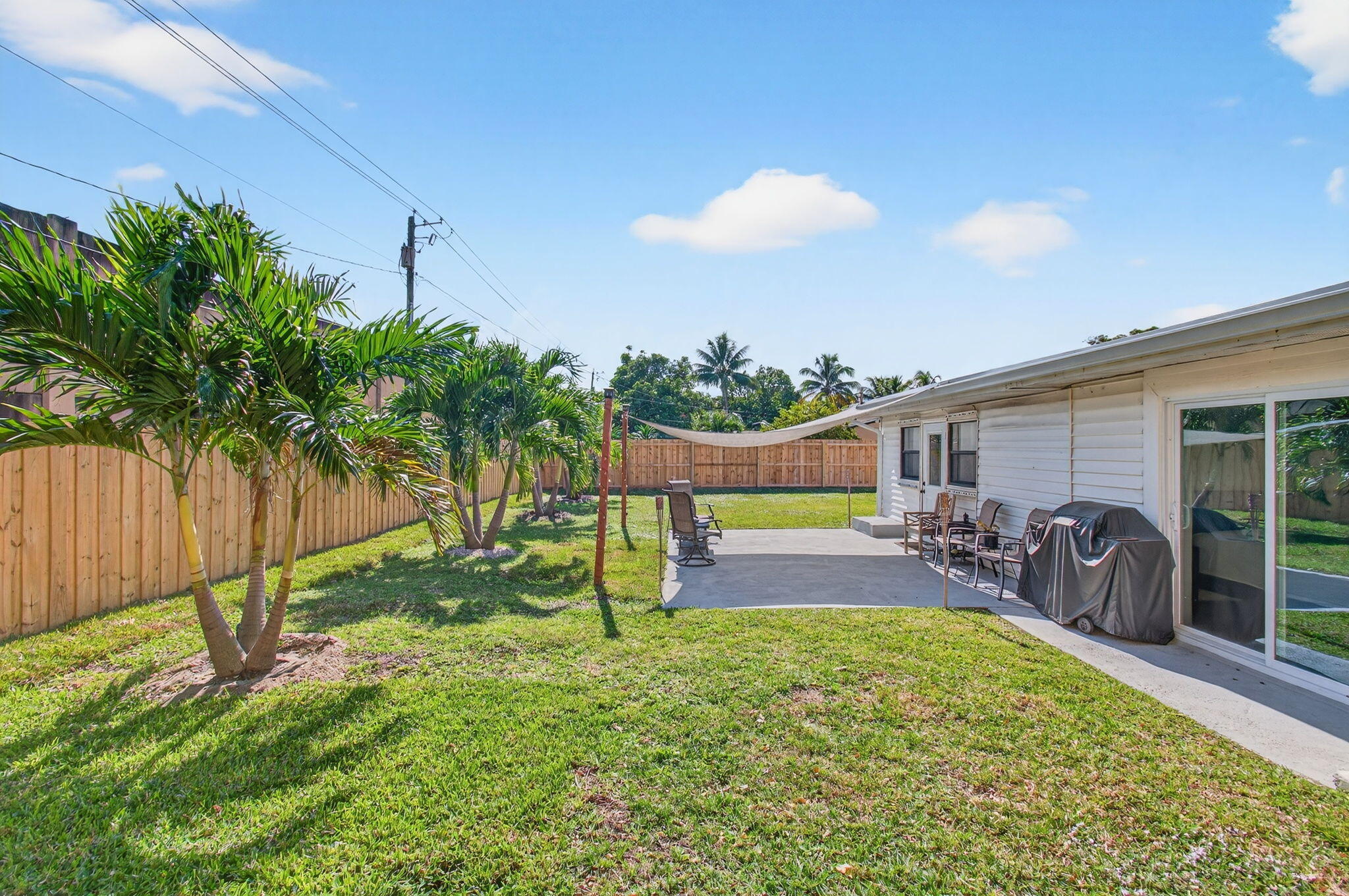 Move right into this beautifully updated home in Lake Osborne! This turnkey 4Bed/2Bath/2Car Garage home offers over 1700sqft of open-concept living space with a split-bedroom floor plan, luxury tile flooring throughout and 2024 ROOF. Enjoy the Florida lifestyle with NO HOA while living only 10 minutes from the Beach. The eat-in Kitchen features white quartz countertops and decorative tile backsplash, 42'' white cabinetry, stainless steel appliances, breakfast nook and large center island with plenty of extra storage and seating. The Primary Suite showcases a spacious ensuite with double sink vanity, soaker tub and separate shower, walk-in closet and Impact Glass sliders leading to the backyard while the three sizable guest bedrooms share an updated full bath. Additional features include:Brand New 2025 Mini-split in the Primary, 2024 Resealed Flat Roof, 2021 AC, large Covered Porch, 2025 Fully Fenced Yard perfect for entertaining plus room for a pool, optional formal dining space off the family room and exterior Security cameras. Located in a quiet, pet- and family-friendly neighborhood, just a short walk or bike ride to Lake Osborne and John Prince Park, with convenient access to I-95, beaches, shopping, restaurants and more!