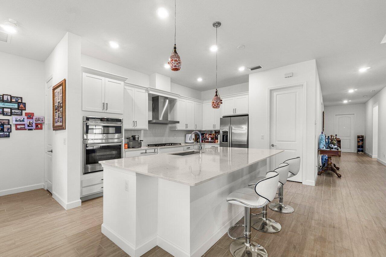 Discover this beautifully maintained 4-bed, 3-bath single-story home in the sought-after Arden community. Featuring high ceilings, impact windows, and a spacious backyard with a covered patio, it's ideal for entertaining. The upgraded kitchen with stainless steel appliances, walk-in closets, and dual sinks in the primary bath add luxury and convenience. Enjoy a 3-car garage, home warranty, and a layout designed for comfort. Live the resort-style life with a manned guard gate, clubhouse, resort pool, fitness center, tennis and pickleball courts, and nature trails. Top-rated schools nearby.