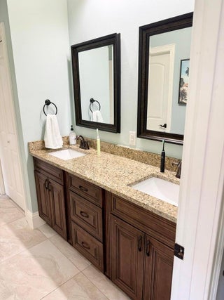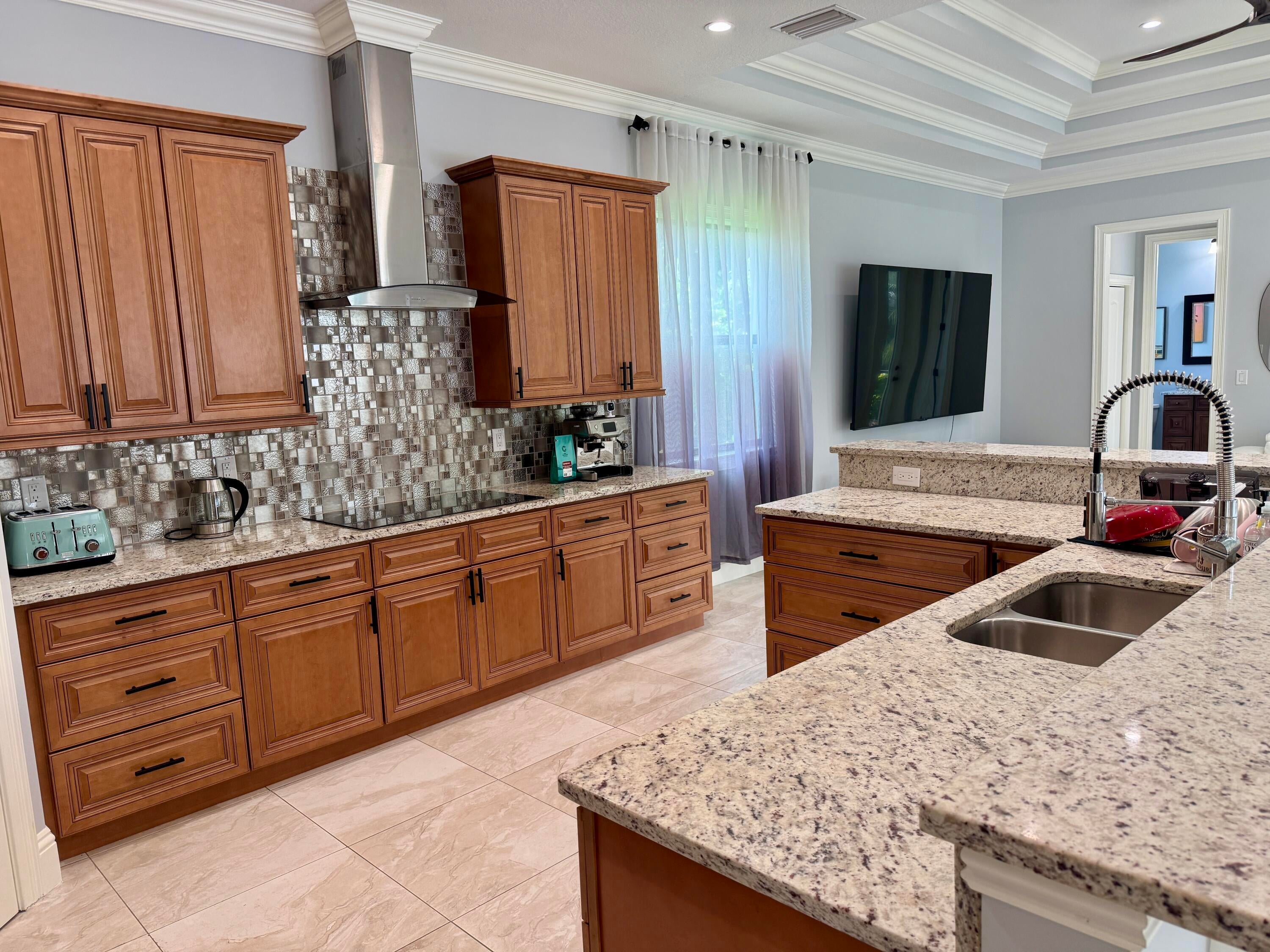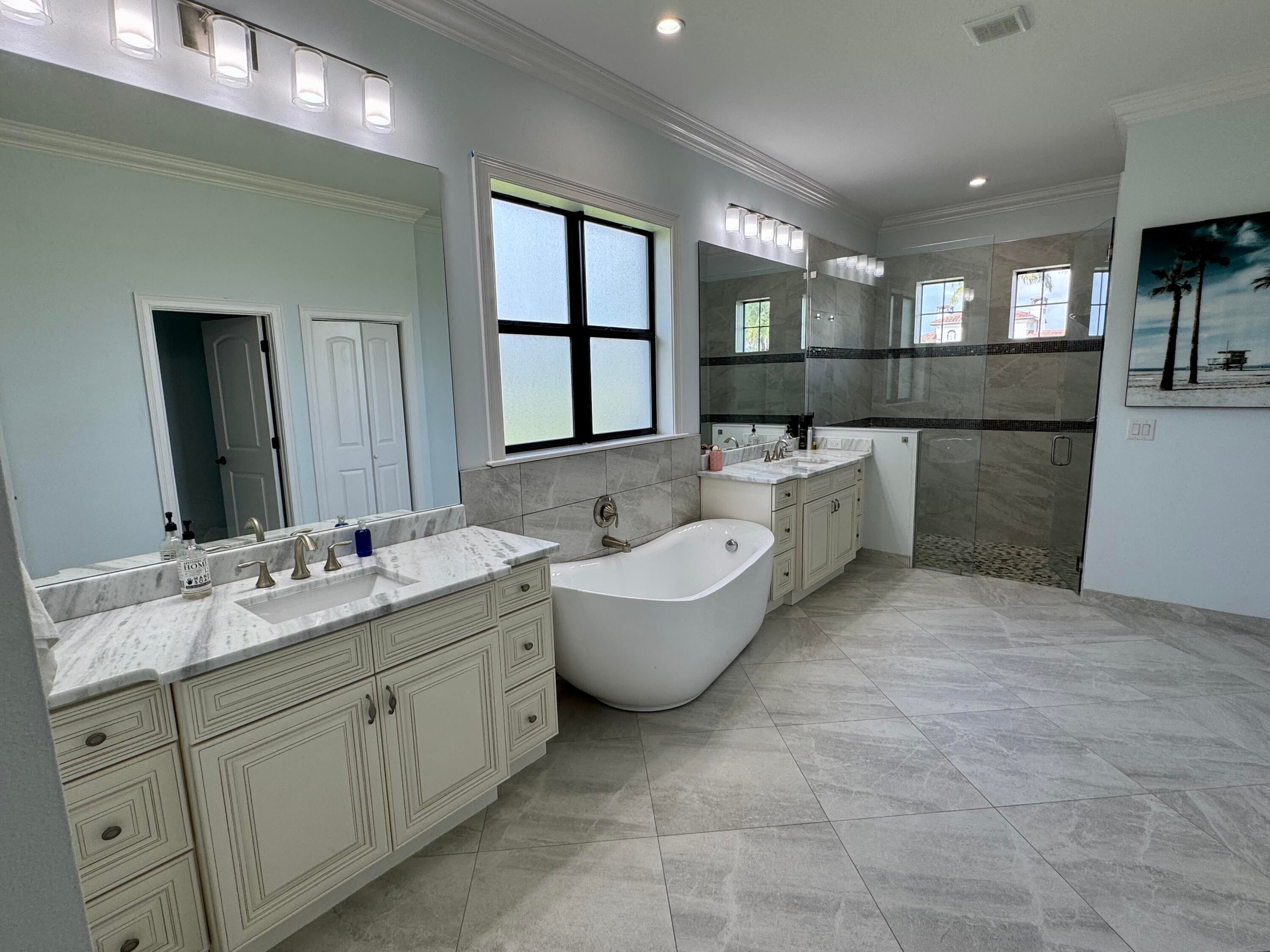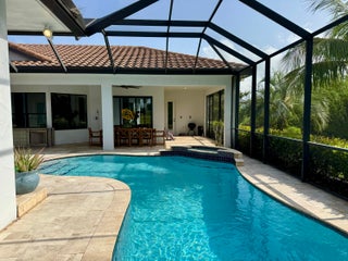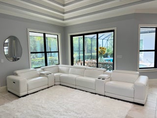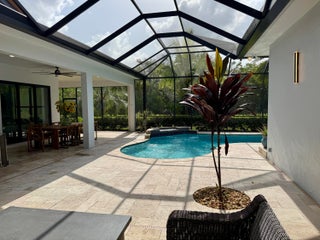 Enjoy the convenience and peace of mind that comes with this private pool home located in a double-gated community. Built in 2017, this custom-designed home is a true haven of comfort. The home features a private wing dedicated to the Primary Suite and office, which includes an oversized bedroom with a tray ceiling and a sitting area that overlooks the pool. The double walk-in closet is equipped with custom shelves & drawers. The Primary bathroom is bright & airy, with double vanities & a zero-edge glass shower with pebble flooring.The open plan is ideal for hosting gatherings, with spacious dining, kitchen, and family rooms. Two guest suites are connected by a Jack & Jill bath. Step out onto the tranquil screened lanai to enjoy the free-form pool. Pool & yard maintenance are included.