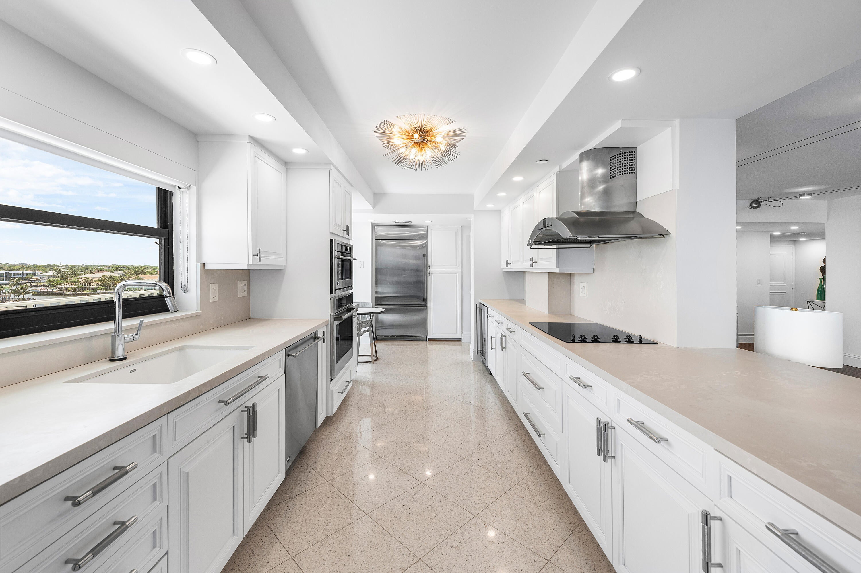 Luxurious elevated living in this 3-bedroom, 3.1 bathroom condominium at Trafalgar, Highland Beach. Condo embodies the ultimate in oceanfront living. Nestled on the 5th floor of this prestigious boutique condominium, the residence offers stunning panoramic views of the Atlantic Ocean and the Intracoastal from every room. Two balconies (completely renovated in 2024) span the entire length of the condo further enrich the indoor/outdoor living experience. The condo has been beautifully updated with newly installed impact windows, RG6 and Cat 6 wiring, all interior doors with glass insert and rail lighting. Spacious great room offers a service bar, wood floors and sliding doors opening to balconies with spectacular ocean views. Den/3rd bedroom further expands this entertaining space. Bright k