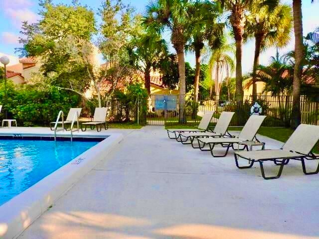 Great location! Spacious townhouse in the heart of Boca Raton, close to Town Center Mall. Features 3 bedrooms and 3 full bathrooms - one bedroom downstairs and two upstairs. Vinyl laminate flooring on stairs and upstairs bedrooms; ceramic tile on the first floor. Neutral colors throughout. Assigned parking space #73 located directly in front of the unit, with additional guest parking available. HOA approval takes approximately 3 to 4 weeks. Pet restrictions apply.VACANT - EASY TO SHOWING.Showings available ..
