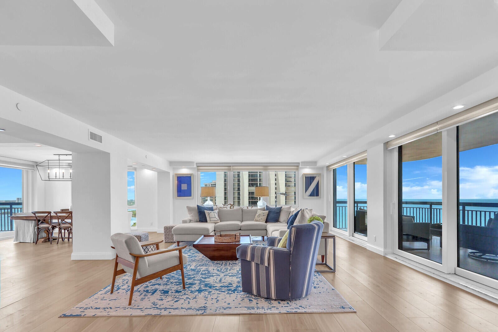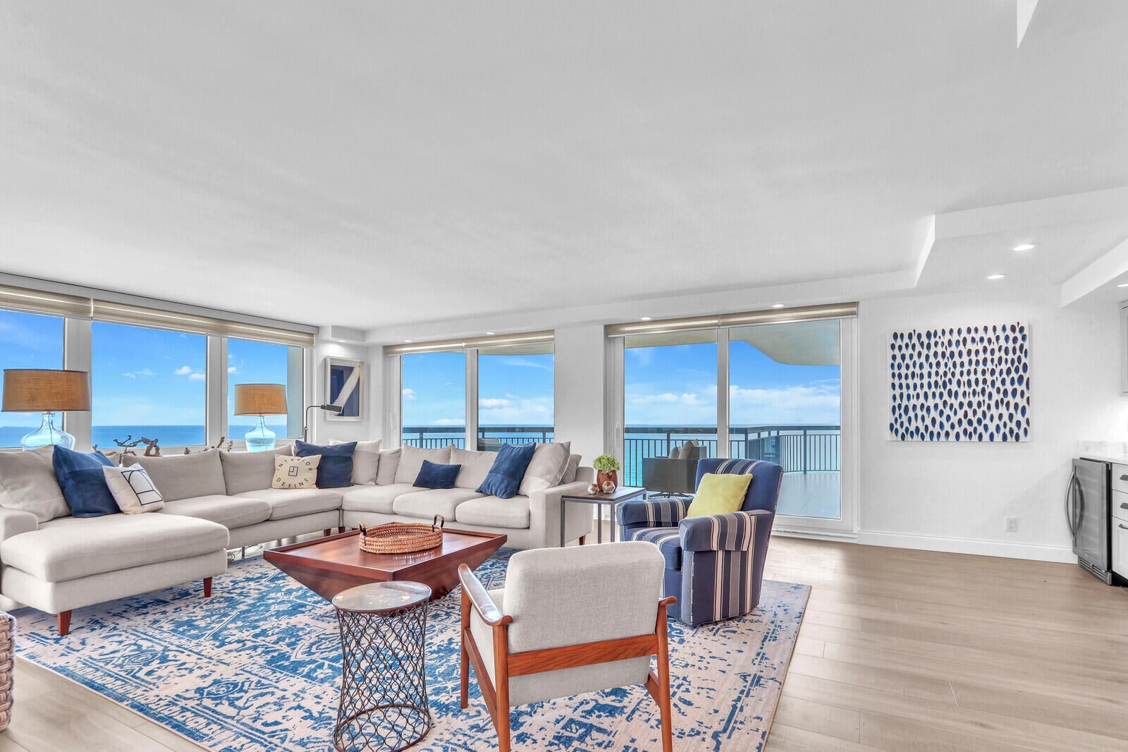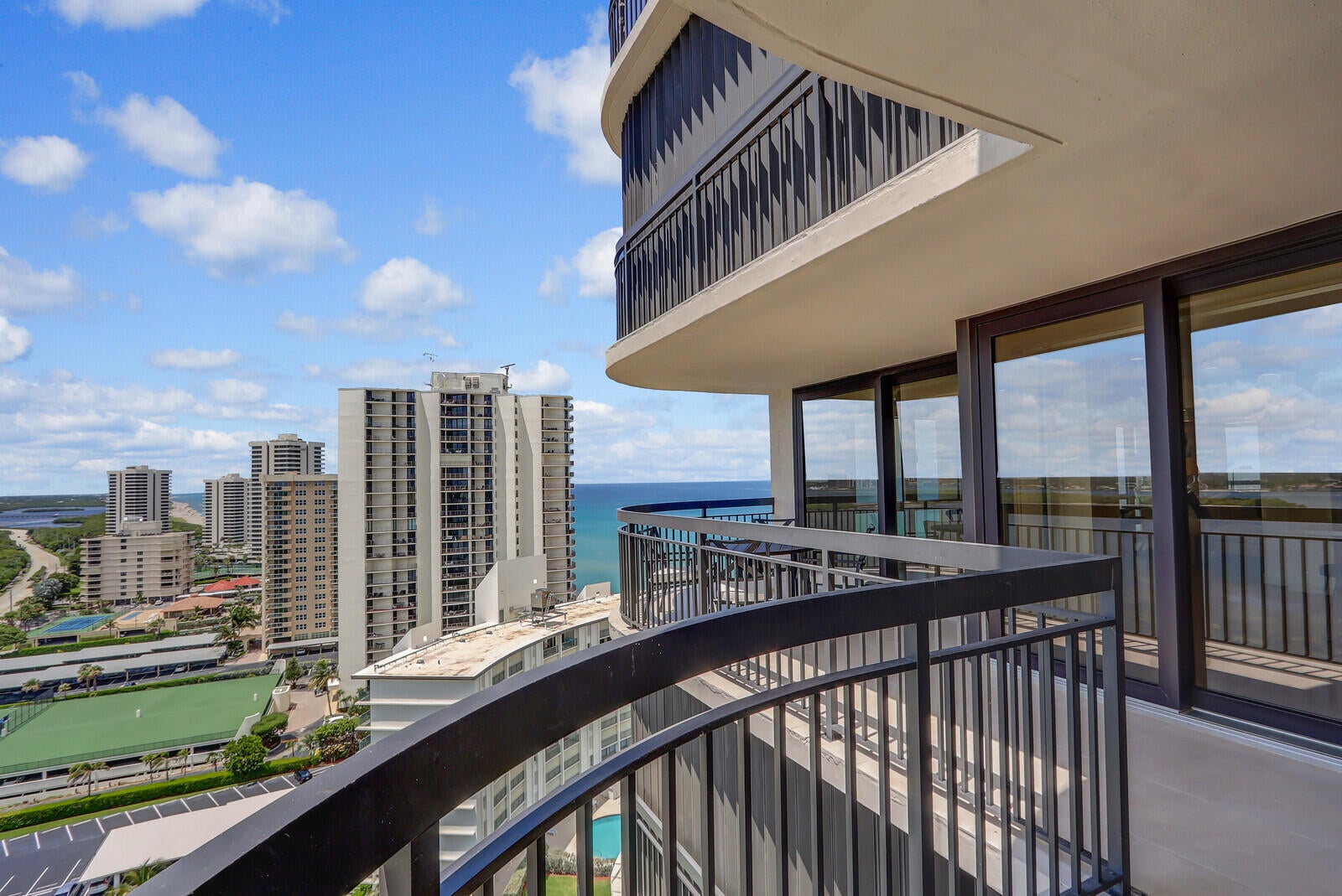 This spectacular corner ''J''-stack condo at Eastpointe II is a luxury-resort-chic condo available for a seasonal rental on Singer Island. Fully furnished and completely renovated to live like a single-family home in the sky, Unit 18J delivers over 3,000 sq ft of sun-drenched space with a dramatic wrap-around balcony boasting 300-degree views of the Atlantic, Intracoastal, and bay. Inside, designer plank-tile floors flow past a chef's marble-island kitchen into an airy great room; all three bedrooms feature en-suite baths with dual vanities and open to the balcony; LED-lit custom closets, laundry tub, and storage rooms on your floor add convenience. Eastpointe II's world-class amenities include a renovated pool and sundeck (see supplement)...... tennis courts, billiards and game room, library, state-of-the-art fitness center, 24/7 concierge and security, covered garage parking, on-floor private storage, and impact-glass windows. This high-floor residence is directly on the beach, and steps from John D. MacArthur Beach State Park's pristine trails and snorkeling, plus endless water activities at Phil Foster Park. Don't miss this extraordinary seasonal opportunity to live the ultimate coastal lifestyle in one of Singer Island's premier high-end buildings!