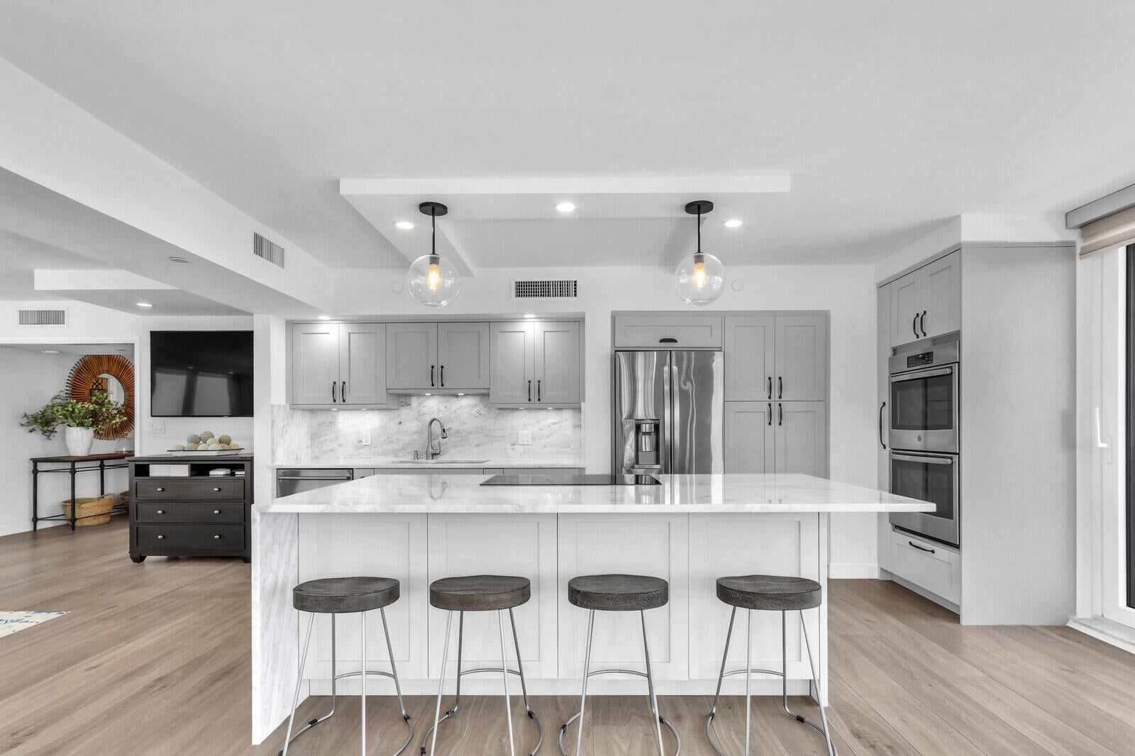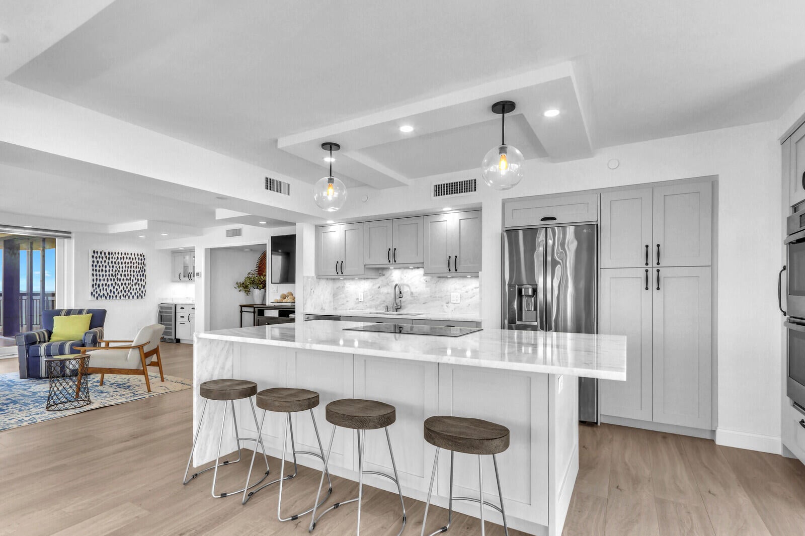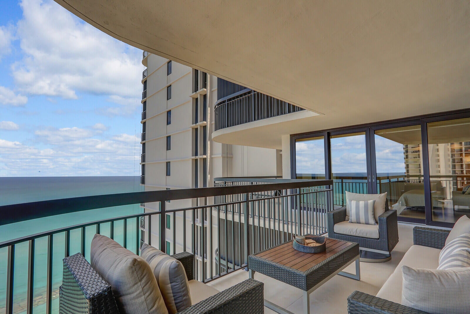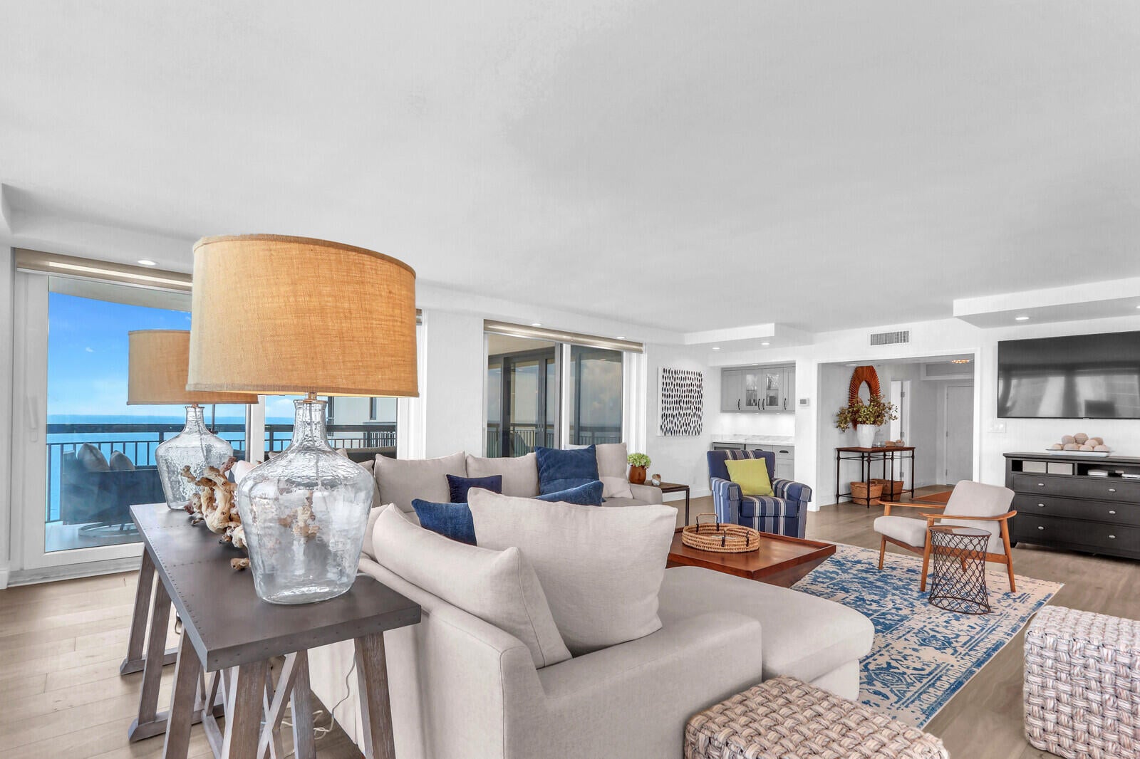 This spectacular corner ''J''-stack condo at Eastpointe II is a luxury-resort-chic condo available for a seasonal rental on Singer Island. Fully furnished and completely renovated to live like a single-family home in the sky, Unit 18J delivers over 3,000 sq ft of sun-drenched space with a dramatic wrap-around balcony boasting 300-degree views of the Atlantic, Intracoastal, and bay. Inside, designer plank-tile floors flow past a chef's marble-island kitchen into an airy great room; all three bedrooms feature en-suite baths with dual vanities and open to the balcony; LED-lit custom closets, laundry tub, and storage rooms on your floor add convenience. Eastpointe II's world-class amenities include a renovated pool and sundeck (see supplement)...... tennis courts, billiards and game room, library, state-of-the-art fitness center, 24/7 concierge and security, covered garage parking, on-floor private storage, and impact-glass windows. This high-floor residence is directly on the beach, and steps from John D. MacArthur Beach State Park's pristine trails and snorkeling, plus endless water activities at Phil Foster Park. Don't miss this extraordinary seasonal opportunity to live the ultimate coastal lifestyle in one of Singer Island's premier high-end buildings!