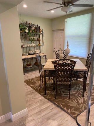 Unlimited Free Golf on 18 hole community course! Active adult community with 3 pools,fitness center,spas,saunas,bocce ball,woodworking shop and lots of activities,groups and clubs! Completely remodeled home with impact windows, driftwood laminate flooring throughout with new baseboards and crown molding. New ceilings with custom lighting and ceiling fans,new levelor window treatments.New SS Appliances w/Granite countertops and bar seating in open kitchen design. Pass through into dining/Florida Room.Walk-in shower in newly remodeled bathroom with granite vanity attaches to master bedroom with walk-in closet and auxiliary A/C. Double driveway with new waterproof garage flooring and newer full size Samsung washer/dryer and 1/2 bath. Large attached storage room in back corner of home.