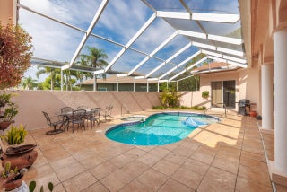 3/3/2 CBS Charming Courtyard Home with pool. Lakefront home is in the lovely, gated community -Lost Lake of Hobe Sound ''aka'' the Falls. A Courtyard home allows privacy for outdoor living & pool use. Pool Child gate.Courtyard bedrooms can be used for home offices, art studio, home for mom, guest bedroom, etc. The courtyard bedroom has its own bath. Main house offers a spacious kitchen overlooking the living room & breakfast room. Spacious kitchen with granite, dining counter & new July 2025 appliances.Expansive dining room. Split bedrooms. Master Bath & Cabana Baths. Additional Patio faces the backyard, located off the breakfast room. Pool has solar panels. Leased Gas tank services the hot water heater & dryer. 2018 A/C. 2019 Roof. 2024 Electrical Panel. LEASED 250 gallon gas tank