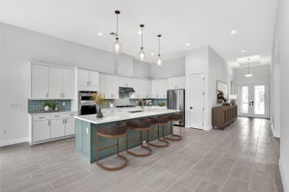 Located in the exclusive, gated Tesoro Club--a premier private country club community--this move-in ready 3-bedroom, 2.5-bath home offers a perfect blend of luxury, comfort, and style. The open-concept layout features elegant tray ceilings, sleek porcelain flooring, and impact-rated windows and doors that bring in abundant natural light. The gourmet kitchen is a chef's dream, with a 5-burner gas cooktop, stainless steel appliances, and quartz countertops. The spacious primary suite overlooks a serene backyard retreat, offering peace and privacy. Ideal for entertaining or relaxing, the backyard is perfect for outdoor living, and an 8' extended garage provides room for a golf cart. Experience elevated living at Tesoro Club!