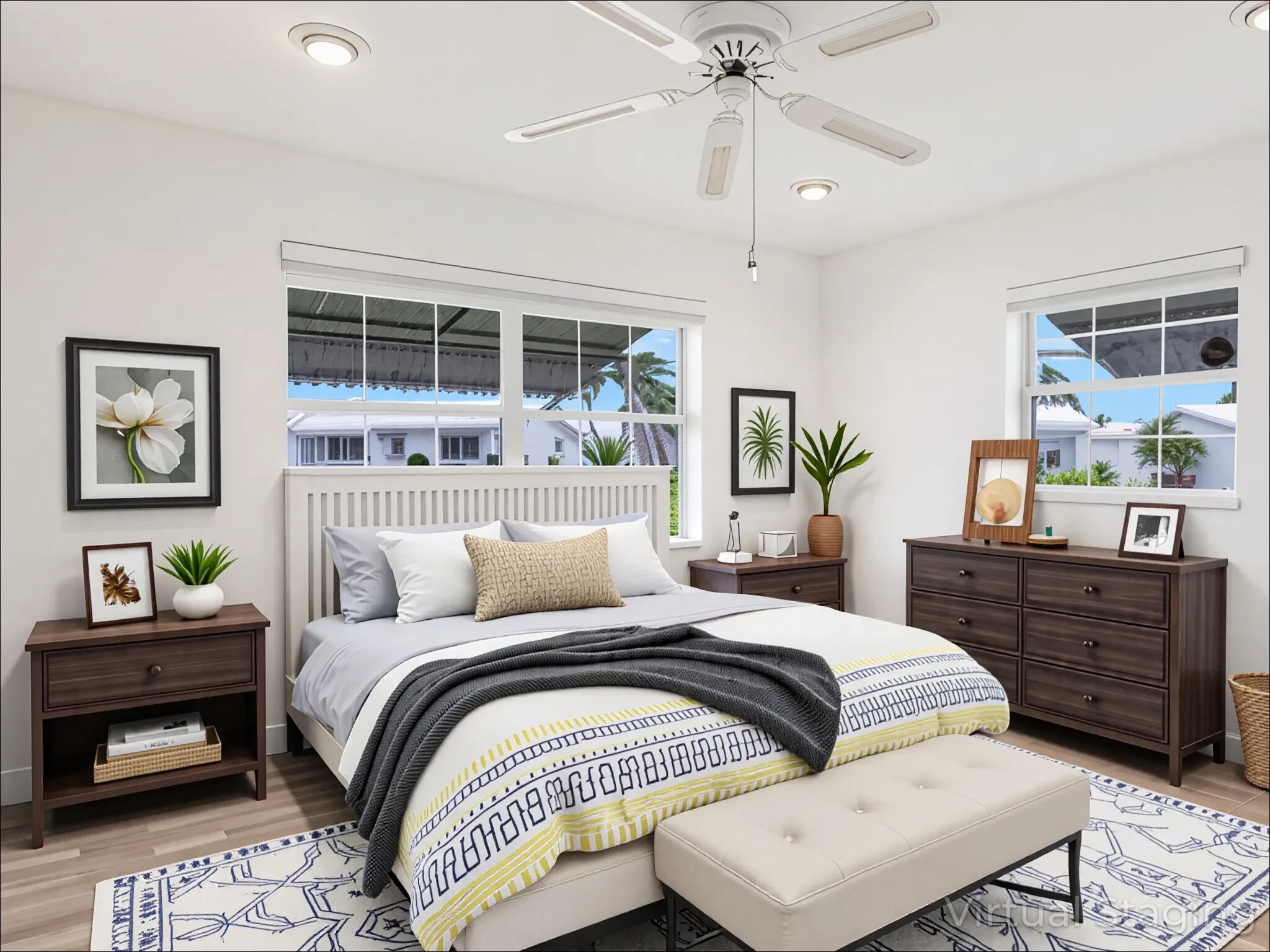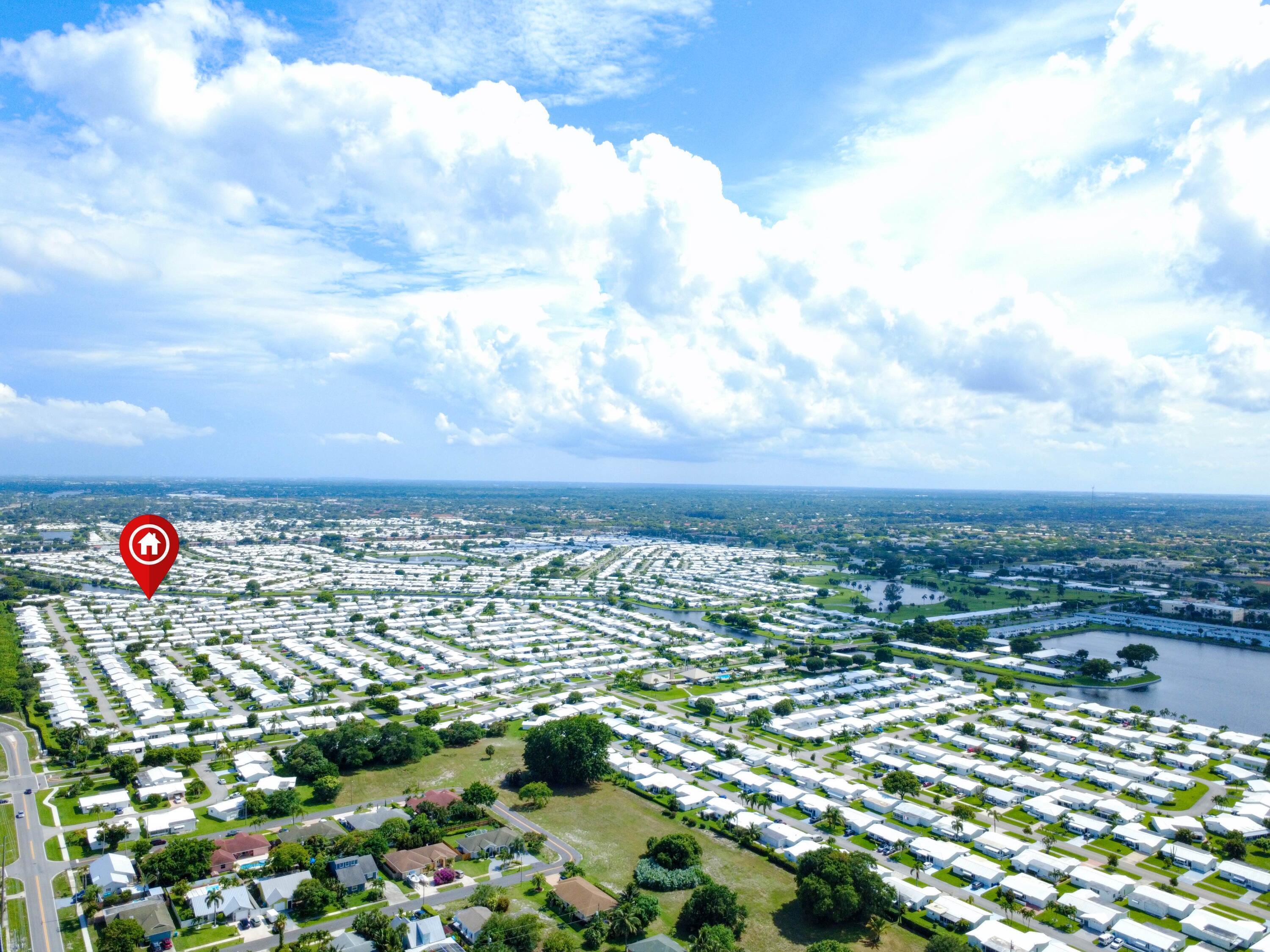 Location! Beautiful Regis Model home on a large corner lot in a very quiet area of Leisureville. (No heavy thru traffic) Immaculate condition with a new back patio and patio roof in 2019. Custom kitchen in warm tones, tile floors and wood tone laminate in bedrooms. Great closet space. Double wide driveway. 3 heated pools, 3 clubhouses, and FREE 18 hole par 3 golf!!