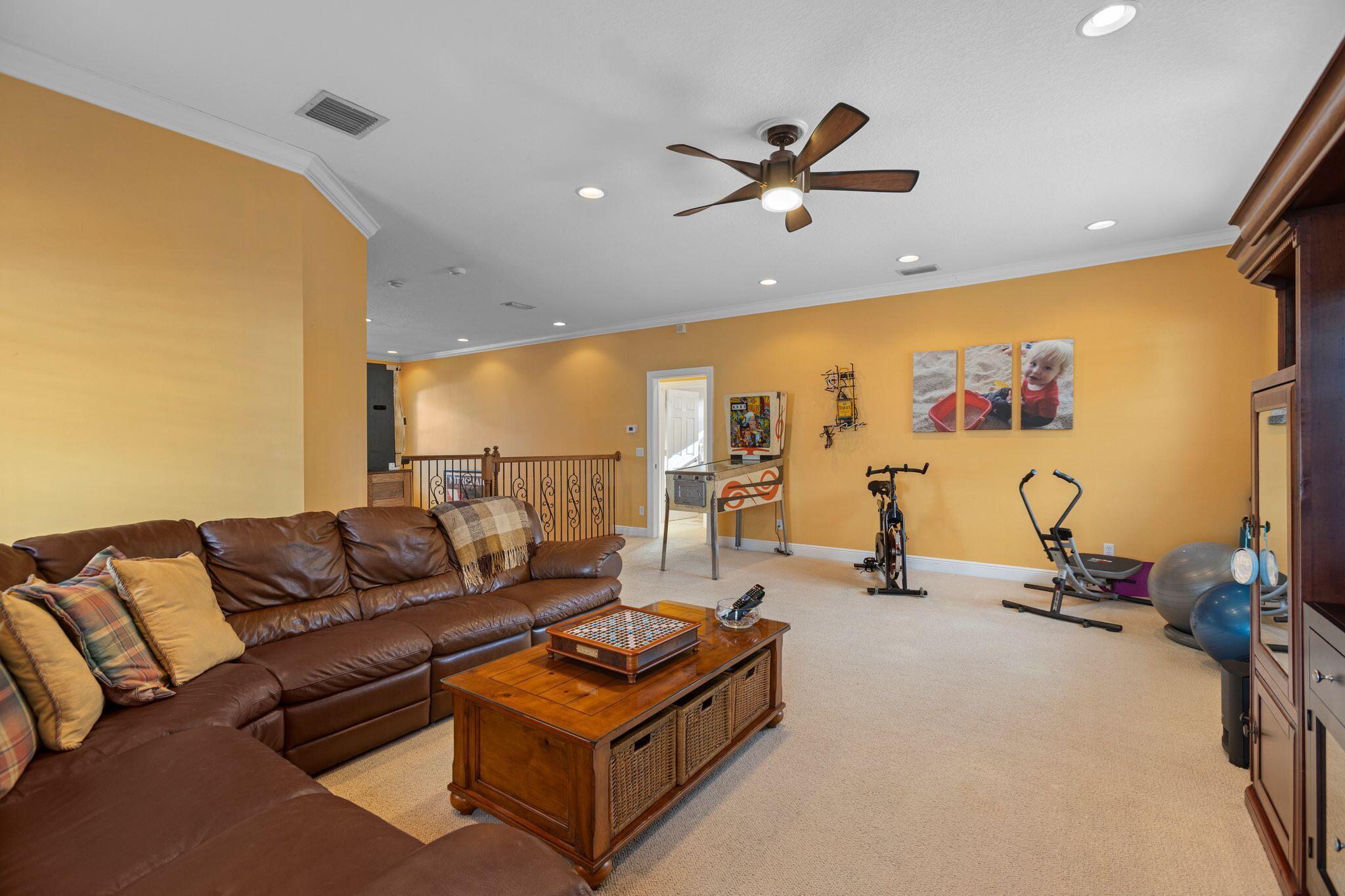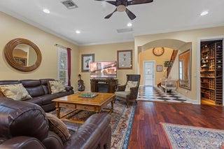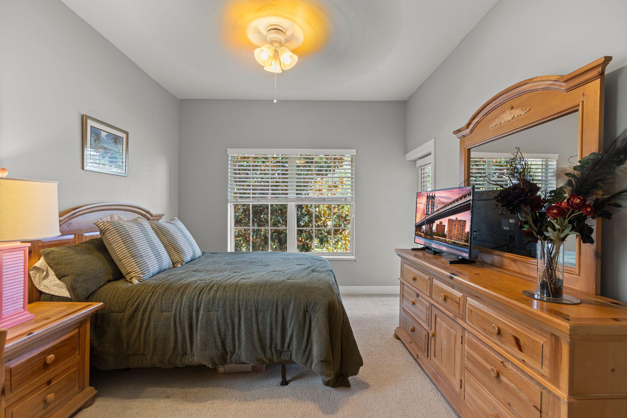 Welcome to Hamilton Place, Palm City's hidden gem! Nestled in an exclusive gated community of just 24 homes, this sprawling Key West style residence offers 3,976 liv. Sq. ft., 5 bedrooms, 4.5 baths, and a 2 car garage. A whimsical front entry invites you into a light-filled open layout for living, dining, and kitchen, featuring a dedicated flex/office space and a private in-law/guest suite complete with a kitchenette and full bath, ideal for multi-generational living or extended stays. The chef's kitchen boasts gas cooking, granite countertops, SS appliances, and a cozy wine nook tucked under the stairs off of the dining area. Enjoy the peaceful, private backyard with a Jacuzzi spa, retractable awning, and lush tropical landscaping. Your own personal oasis. One upstairs bedroom featuresa private balcony, perfect for morning coffee or unwinding in the evenings. Don't miss this rare opportunity to own a beautifully maintained and generously sized home in one of Palm City's most exclusive communities, homes here seldom hit the market!
