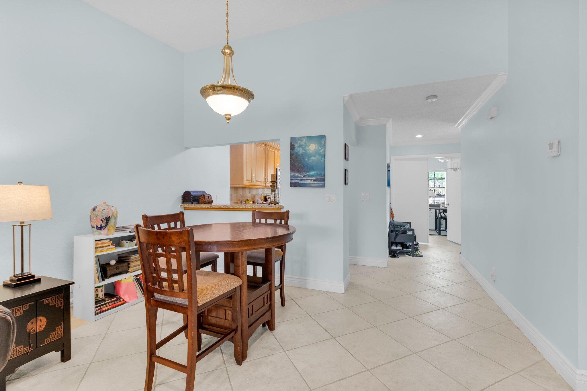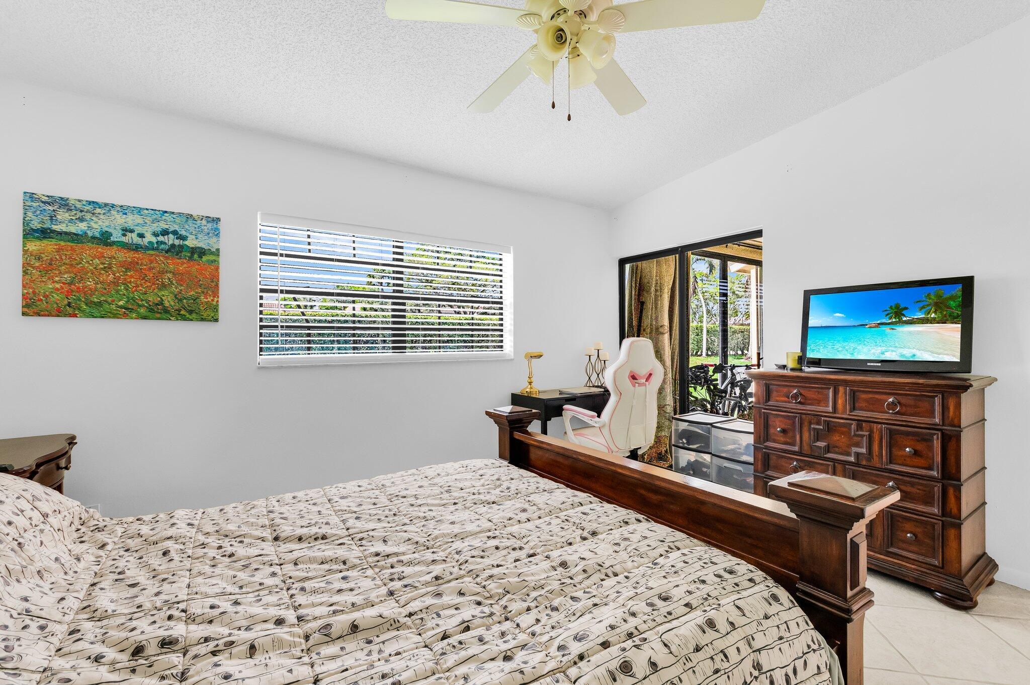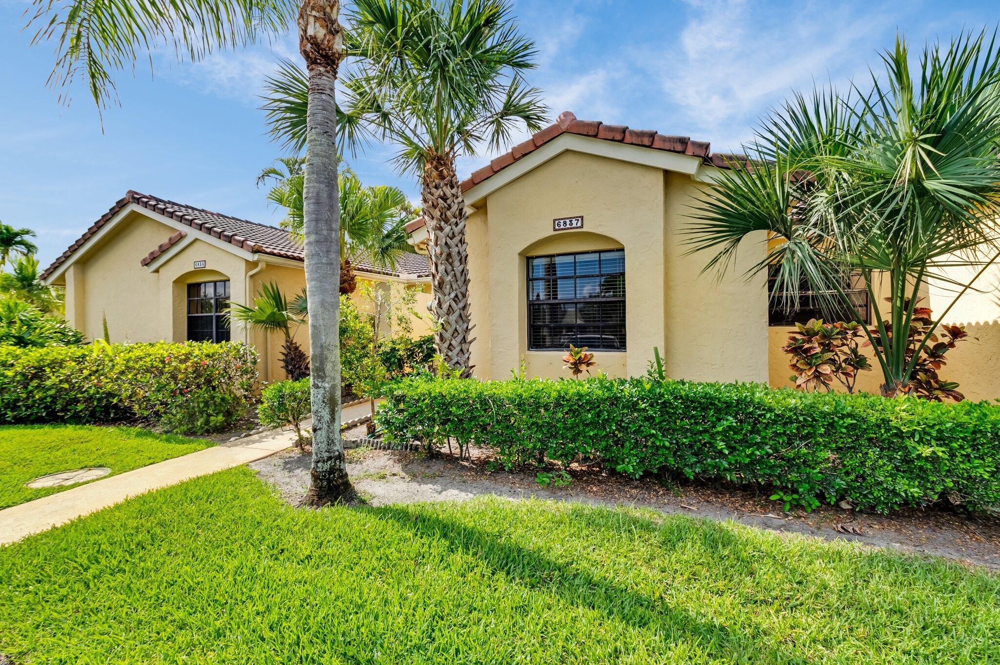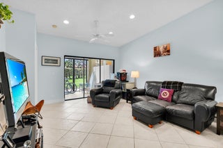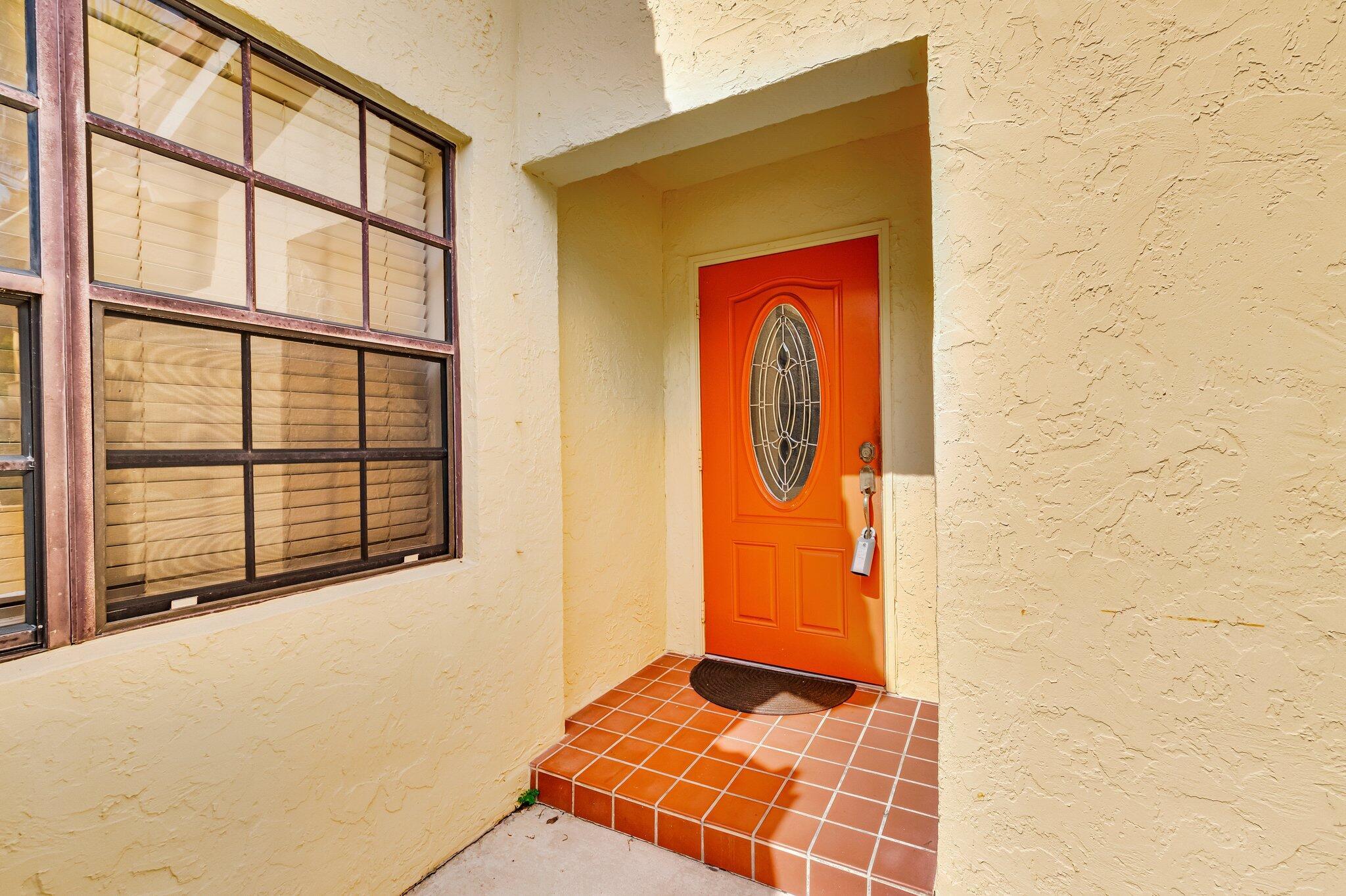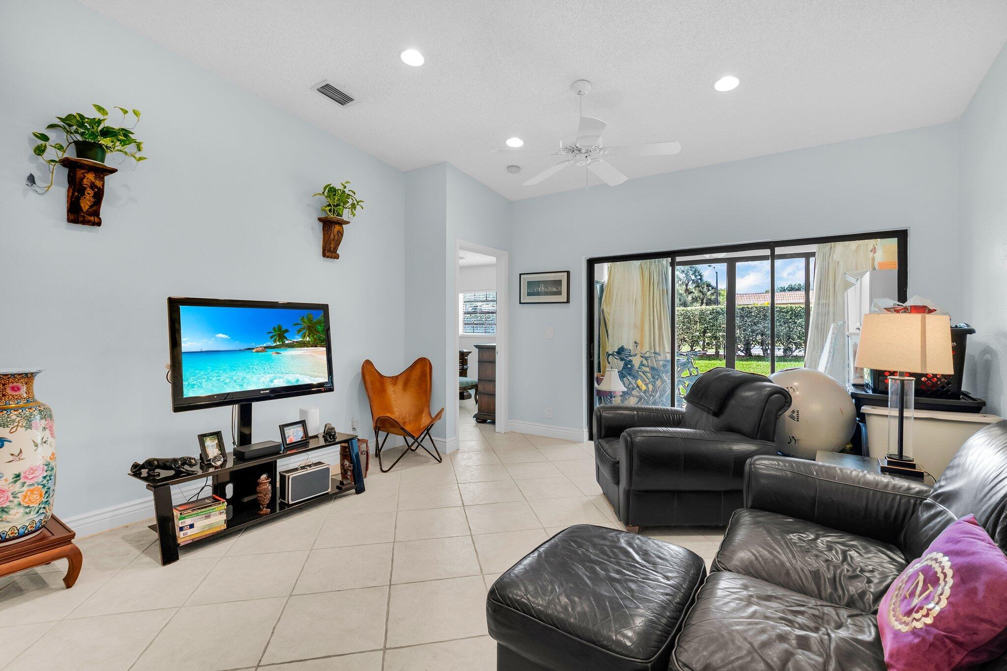 Welcome to your new home nestled in the heart of convenience and serenity! This stunning 3-bedroom, 2-bathroom villa offers an unparalleled lifestyle, boasting breathtaking views of lush greenery. Upon entering, you're greeted by an abundance of natural light that illuminates the spacious living areas, adorned with beautiful white ceramic tile flooring throughout. The open layout seamlessly flows from the living room to the dining area, creating the perfect space for entertaining guests or enjoying cozy evenings with loved ones. The well-appointed kitchen is a chef's delight, featuring modern appliances, ample cabinet space, and a convenient breakfast bar for casual dining. Retreat to the expansive master bedroom, complete with vaulted ceilings, a huge walk-in closet and a luxurious en-suite bathroom. The two additional bedrooms are generously sized and offer plenty of room for rest and relaxation. Step out onto the air-conditioned patio, glassed with floor-to-ceiling sliding doors, seamlessly blending indoor and outdoor living and adding additional interior living area. Located in an excellent school district, this home offers the perfect blend of convenience and tranquility. Enjoy strolls to your favorite shopping destinations, gym, houses of worship, and fine dining establishments, all just steps away from your front door. With easy access to I-95 and Florida's Turnpike, commuting to Palm Beach or Fort Lauderdale is a breeze, allowing you to explore the best that South Florida has to offer. Please be respectful and remember to take your shoes off before entering this meticulously maintained property. Additionally, pets are allowed, adding to the comfort and joy of your new home. Please note that there is a restriction on renting for the first 2 years of ownership, ensuring a sense of community and stability. Don't miss out on the opportunity to call this beautiful villa your own! Schedule your showing today and experience the best of Florida living in this friendly, well-taken-care-of community.