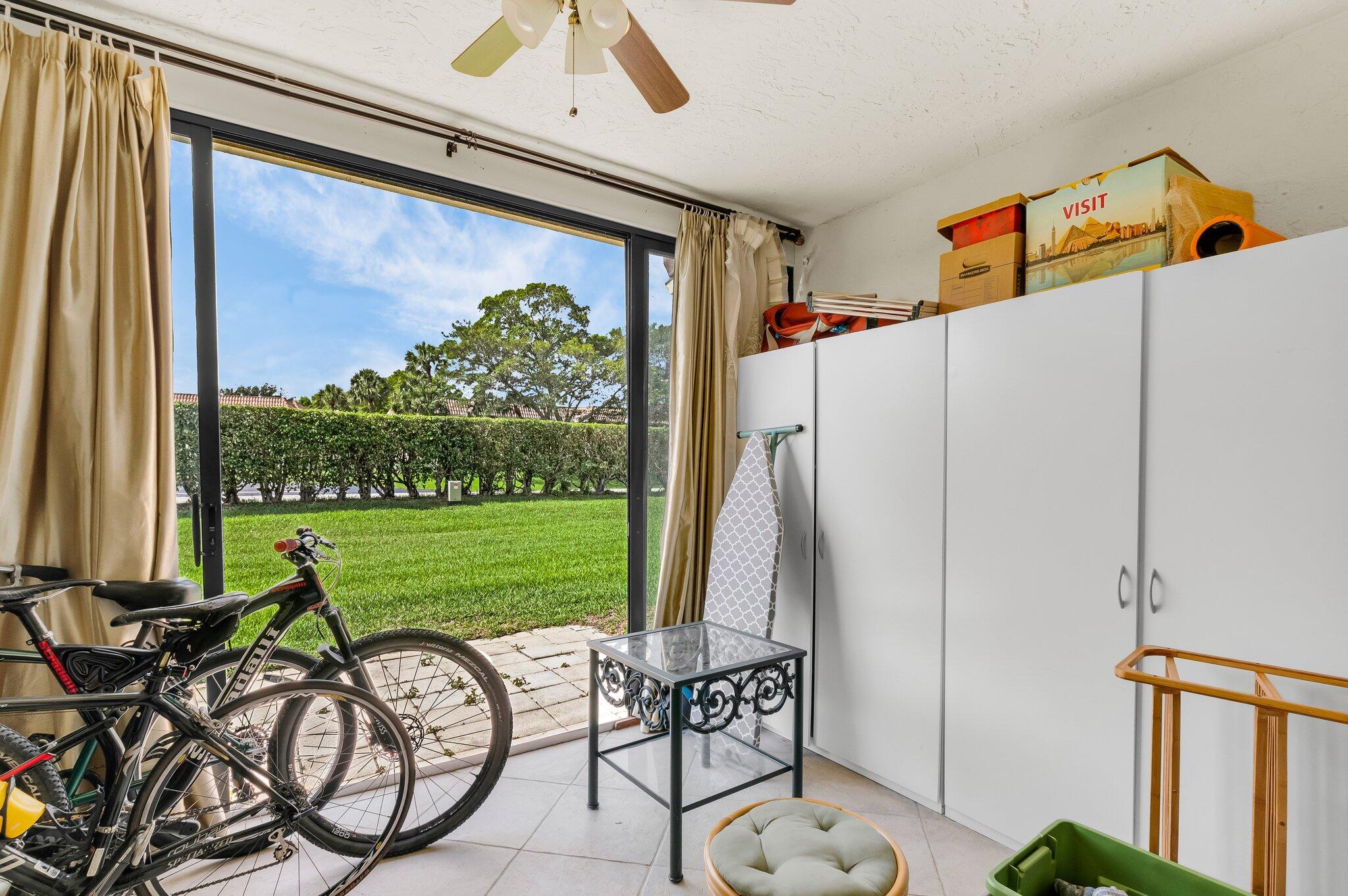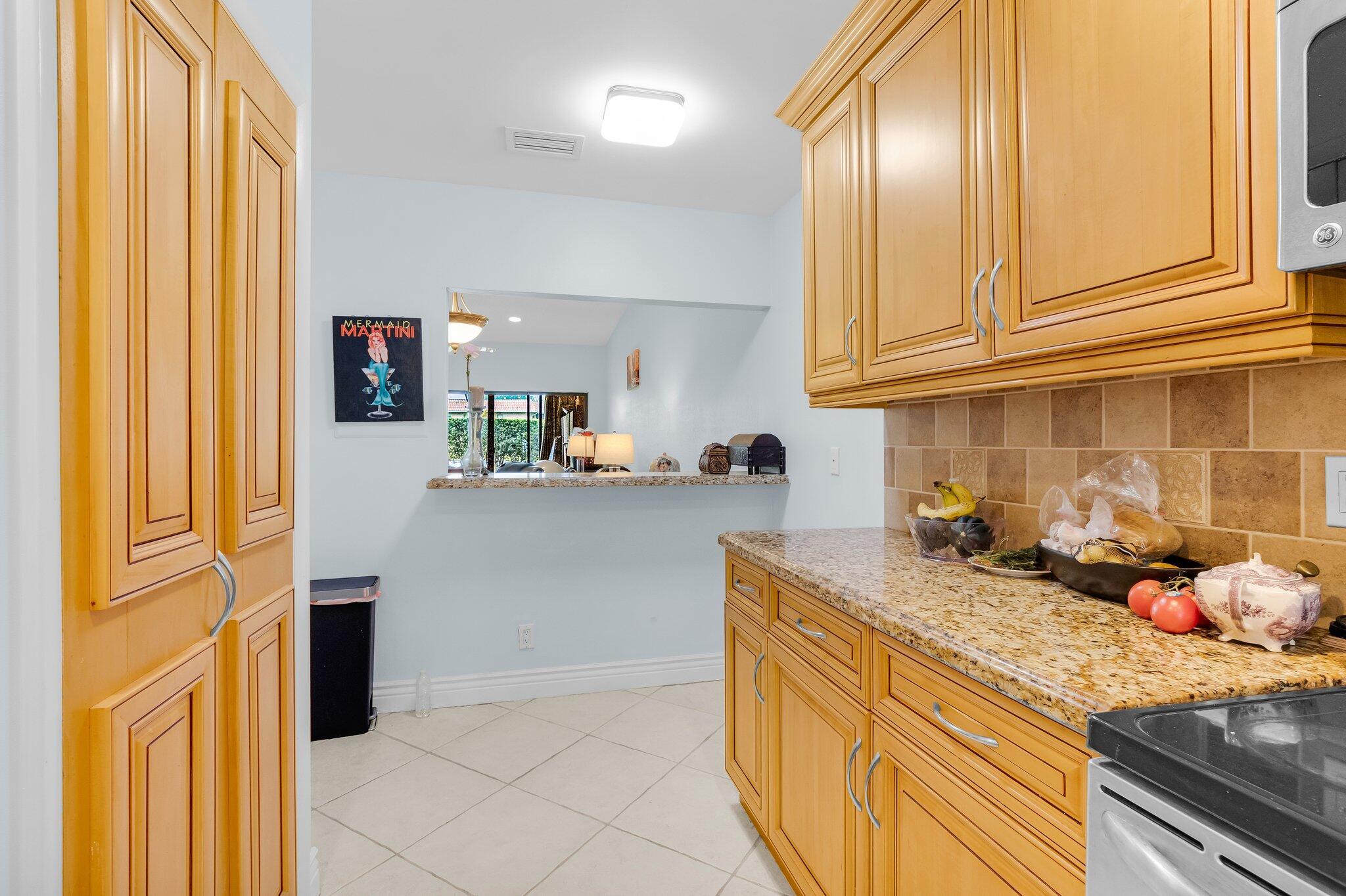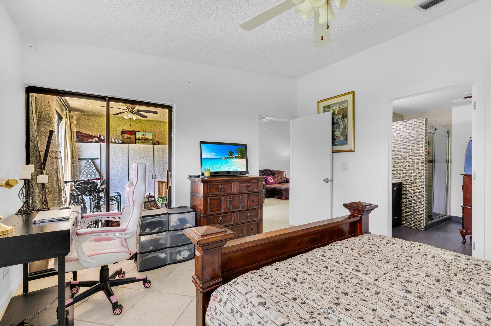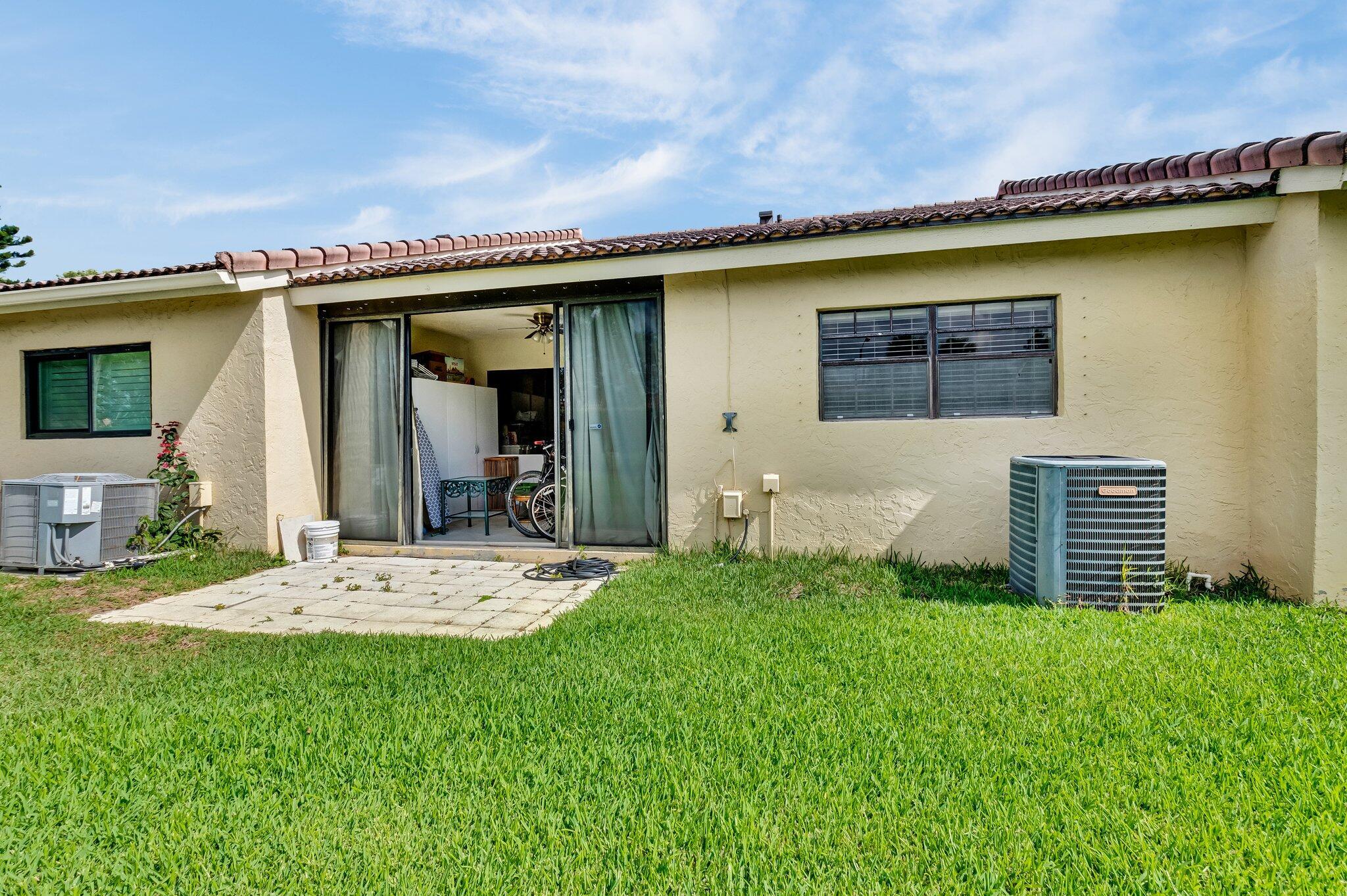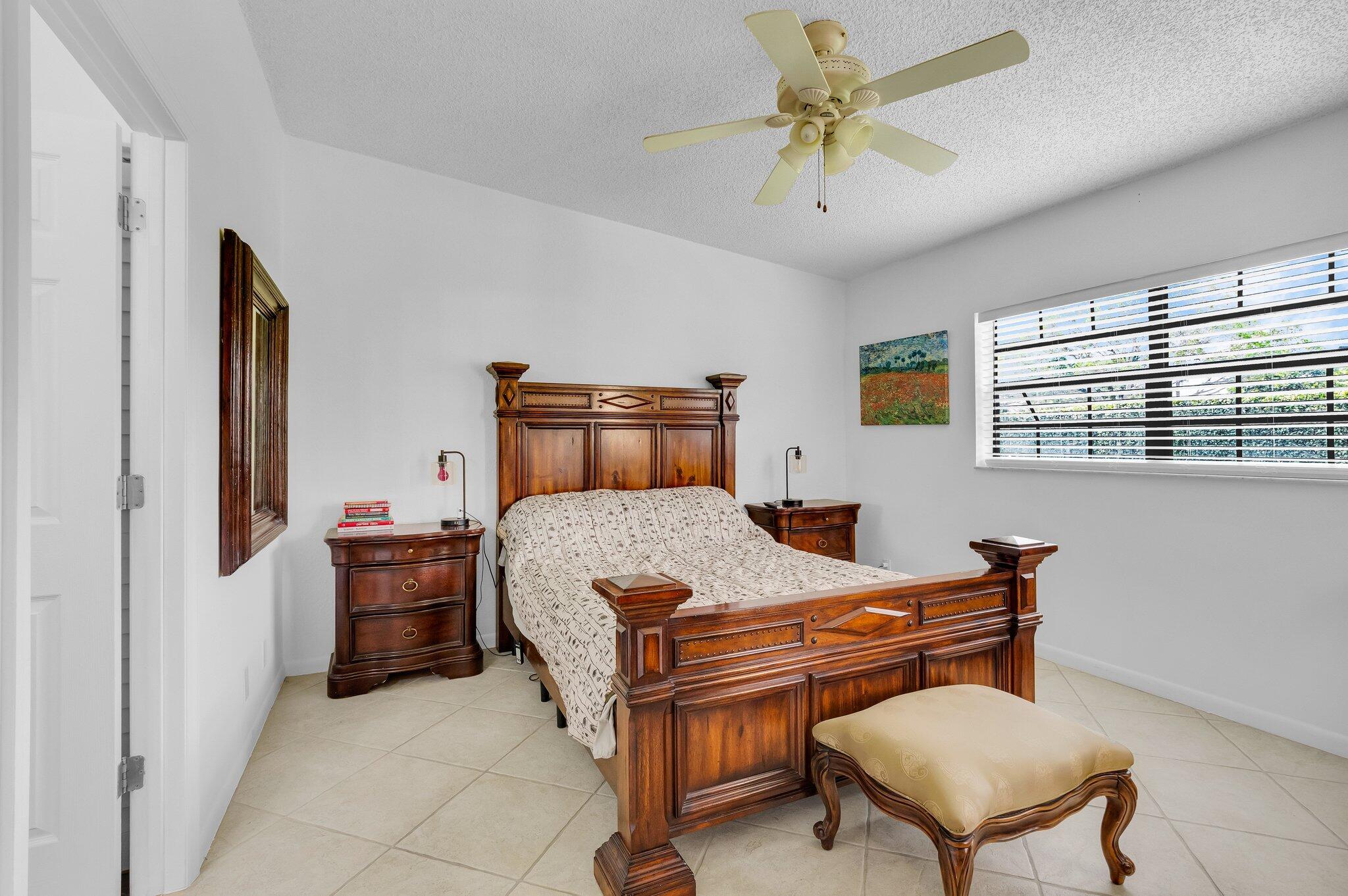 Welcome to your new home nestled in the heart of convenience and serenity! This stunning 3-bedroom, 2-bathroom villa offers an unparalleled lifestyle, boasting breathtaking views of lush greenery. Upon entering, you're greeted by an abundance of natural light that illuminates the spacious living areas, adorned with beautiful white ceramic tile flooring throughout. The open layout seamlessly flows from the living room to the dining area, creating the perfect space for entertaining guests or enjoying cozy evenings with loved ones. The well-appointed kitchen is a chef's delight, featuring modern appliances, ample cabinet space, and a convenient breakfast bar for casual dining. Retreat to the expansive master bedroom, complete with vaulted ceilings, a huge walk-in closet and a luxurious en-suite bathroom. The two additional bedrooms are generously sized and offer plenty of room for rest and relaxation. Step out onto the air-conditioned patio, glassed with floor-to-ceiling sliding doors, seamlessly blending indoor and outdoor living and adding additional interior living area. Located in an excellent school district, this home offers the perfect blend of convenience and tranquility. Enjoy strolls to your favorite shopping destinations, gym, houses of worship, and fine dining establishments, all just steps away from your front door. With easy access to I-95 and Florida's Turnpike, commuting to Palm Beach or Fort Lauderdale is a breeze, allowing you to explore the best that South Florida has to offer. Please be respectful and remember to take your shoes off before entering this meticulously maintained property. Additionally, pets are allowed, adding to the comfort and joy of your new home. Please note that there is a restriction on renting for the first 2 years of ownership, ensuring a sense of community and stability. Don't miss out on the opportunity to call this beautiful villa your own! Schedule your showing today and experience the best of Florida living in this friendly, well-taken-care-of community.