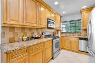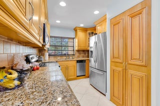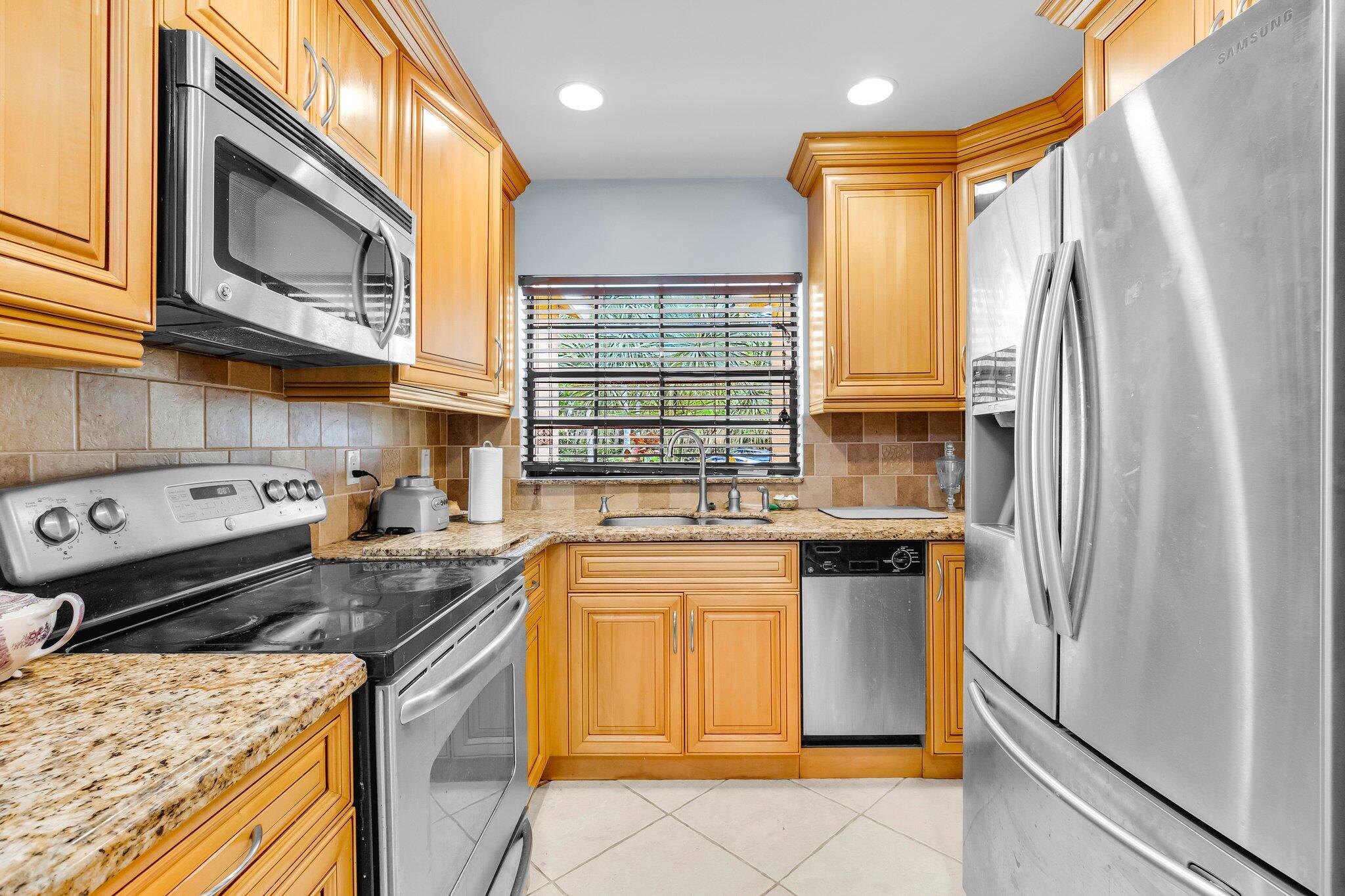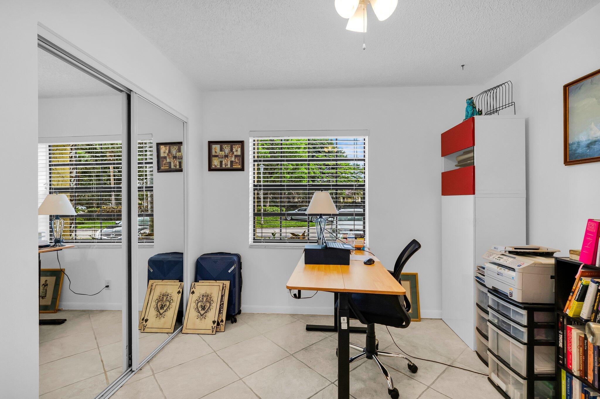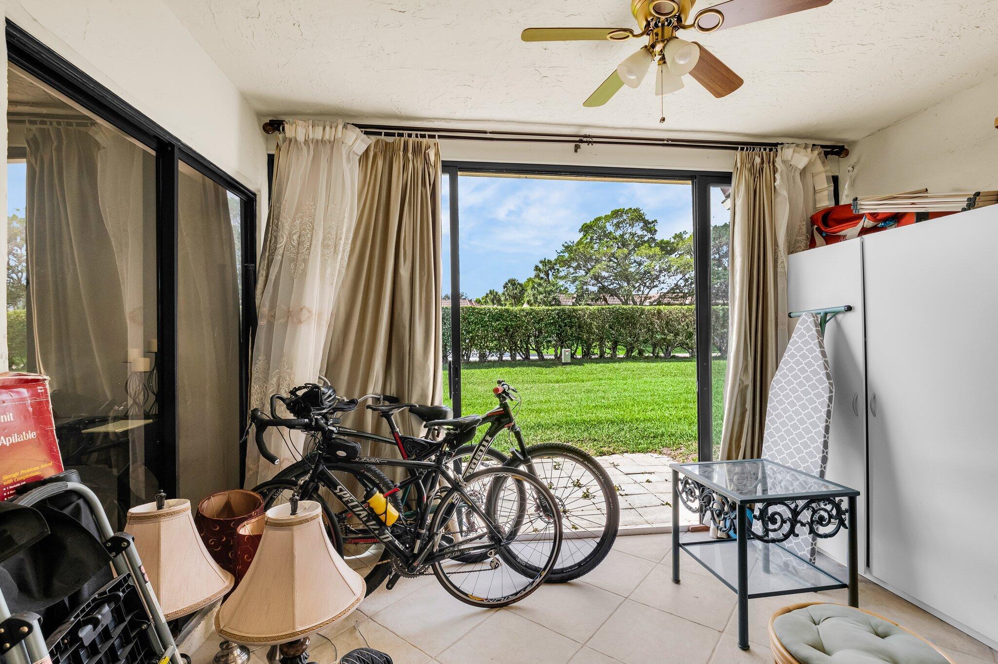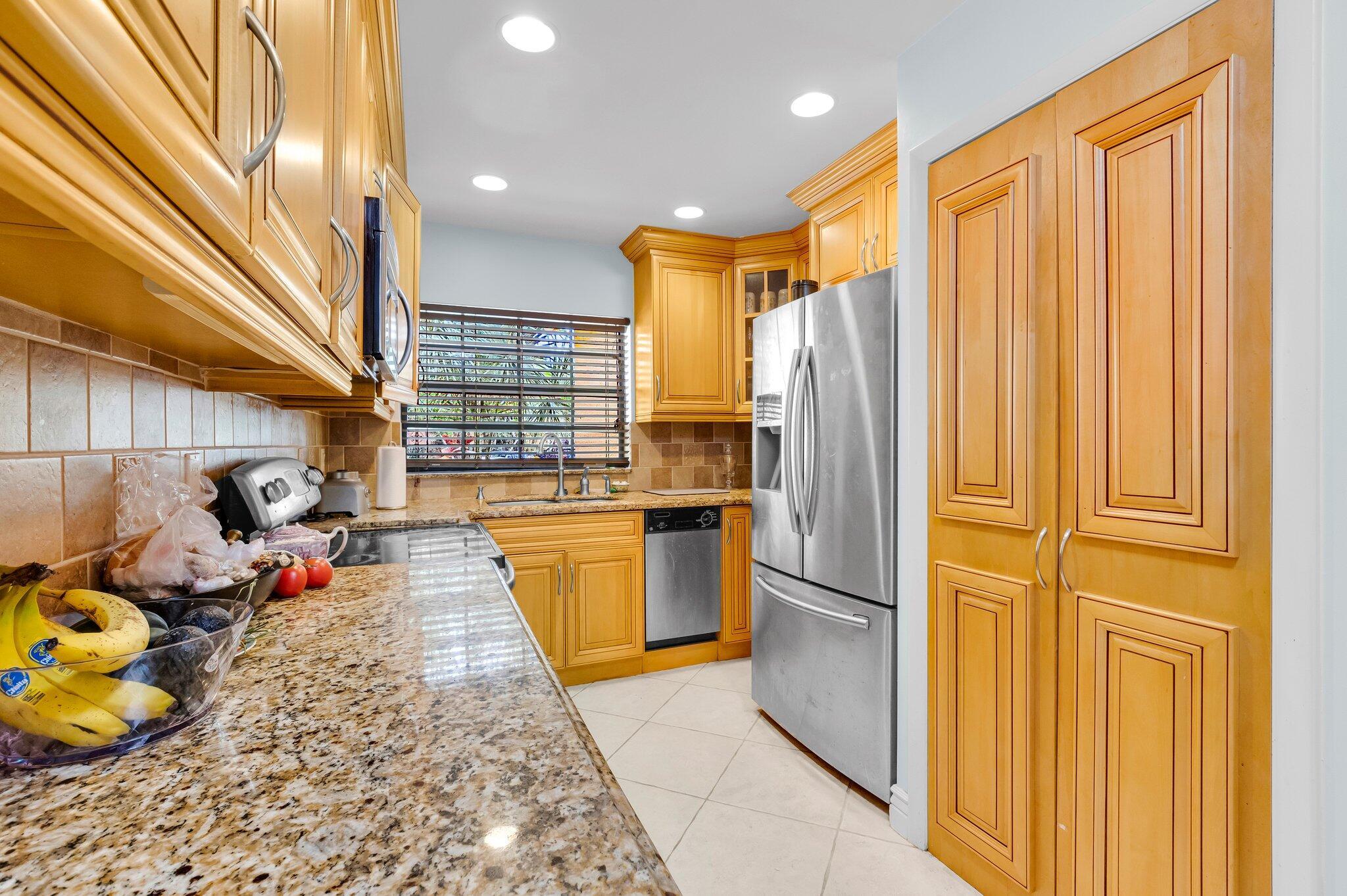 Welcome to your new home nestled in the heart of convenience and serenity! This stunning 3-bedroom, 2-bathroom villa offers an unparalleled lifestyle, boasting breathtaking views of lush greenery. Upon entering, you're greeted by an abundance of natural light that illuminates the spacious living areas, adorned with beautiful white ceramic tile flooring throughout. The open layout seamlessly flows from the living room to the dining area, creating the perfect space for entertaining guests or enjoying cozy evenings with loved ones. The well-appointed kitchen is a chef's delight, featuring modern appliances, ample cabinet space, and a convenient breakfast bar for casual dining. Retreat to the expansive master bedroom, complete with vaulted ceilings, a huge walk-in closet and a luxurious en-suite bathroom. The two additional bedrooms are generously sized and offer plenty of room for rest and relaxation. Step out onto the air-conditioned patio, glassed with floor-to-ceiling sliding doors, seamlessly blending indoor and outdoor living and adding additional interior living area. Located in an excellent school district, this home offers the perfect blend of convenience and tranquility. Enjoy strolls to your favorite shopping destinations, gym, houses of worship, and fine dining establishments, all just steps away from your front door. With easy access to I-95 and Florida's Turnpike, commuting to Palm Beach or Fort Lauderdale is a breeze, allowing you to explore the best that South Florida has to offer. Please be respectful and remember to take your shoes off before entering this meticulously maintained property. Additionally, pets are allowed, adding to the comfort and joy of your new home. Please note that there is a restriction on renting for the first 2 years of ownership, ensuring a sense of community and stability. Don't miss out on the opportunity to call this beautiful villa your own! Schedule your showing today and experience the best of Florida living in this friendly, well-taken-care-of community.