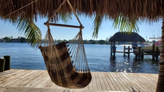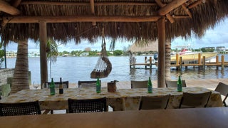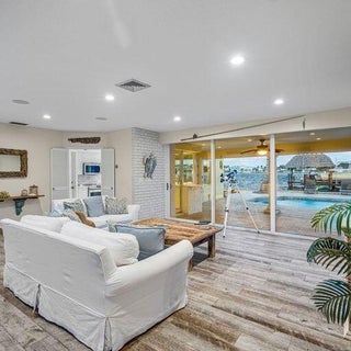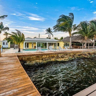 Fully Furnished Just bring your toothbrush. Direct Intracoastal pool home. Boater's delight - to the inlet from your dock in 3 minutes! Boat Dock and jetski lift. Immaculate, well cared for home with picturesque wide Intracoastal views. Located in the boater's haven community of Harbor Estates. Don't wait to see this home. Sleeps 8. Accessible platform LIFT for water sports and BYO jetskis. Available kayaks and paddle boards for use. Lounge on the hammock over the sand or sit in the suspended chair beneath the Tiki Hut. Gourmet outdoor grill and burners. There is an insta-hot Two tikis out door Kitchen Tiki & Dock Tiki, Green egg for smoking, grilling, or homemade pizza. Watch, feed or catch many species of fish off the 160 feet dockWait for a north wind and incoming tide for crystal clear snorkeling by dock, Garage Unavailable, NO PETS