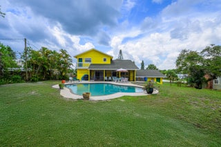 You Gotta See This!!! Fantastic Tri-Level POOL home on 1/2 Acre in Beautiful Hobe Sound in Papaya Village/ Hobe Hills. This fantastic home features So much Charm w/Vaulted Cedar Tongue & Groove Ceilings, Wood Laminate Flooring, 3-Large Bedrooms 2.5-Baths, Living Room, Family Room and Dining Room! Huge oversized 2-Car Garage & BASEMENT-(1/2 of the Basement is finished with A/C, currently used as an Office and has a separate entrance)!!! This home sits way up on a hill! Features NEW 2024 A/C's & 2024 Water Softener System. Yard is Fully Fenced w/Large Trees & Plenty of room to build a detached garage or in-laws suite! Come relax in the Large Free Form POOL w/Tile Turtle Inlays & Lg Screened in Patio to enjoy the Florida Lifestyle! All this in a NO-HOA community! Bring your toys!!!Just a short distance (3 min) to the Hobe Sound Beach, I-95, Specialty Dining & Shopping! Just a block away from Jonathan Dickinson State Park. Jimmy Graham Boat Ramp, The Pine School & Hobe Sound Elementary School and so much MORE!!! NO-HOA