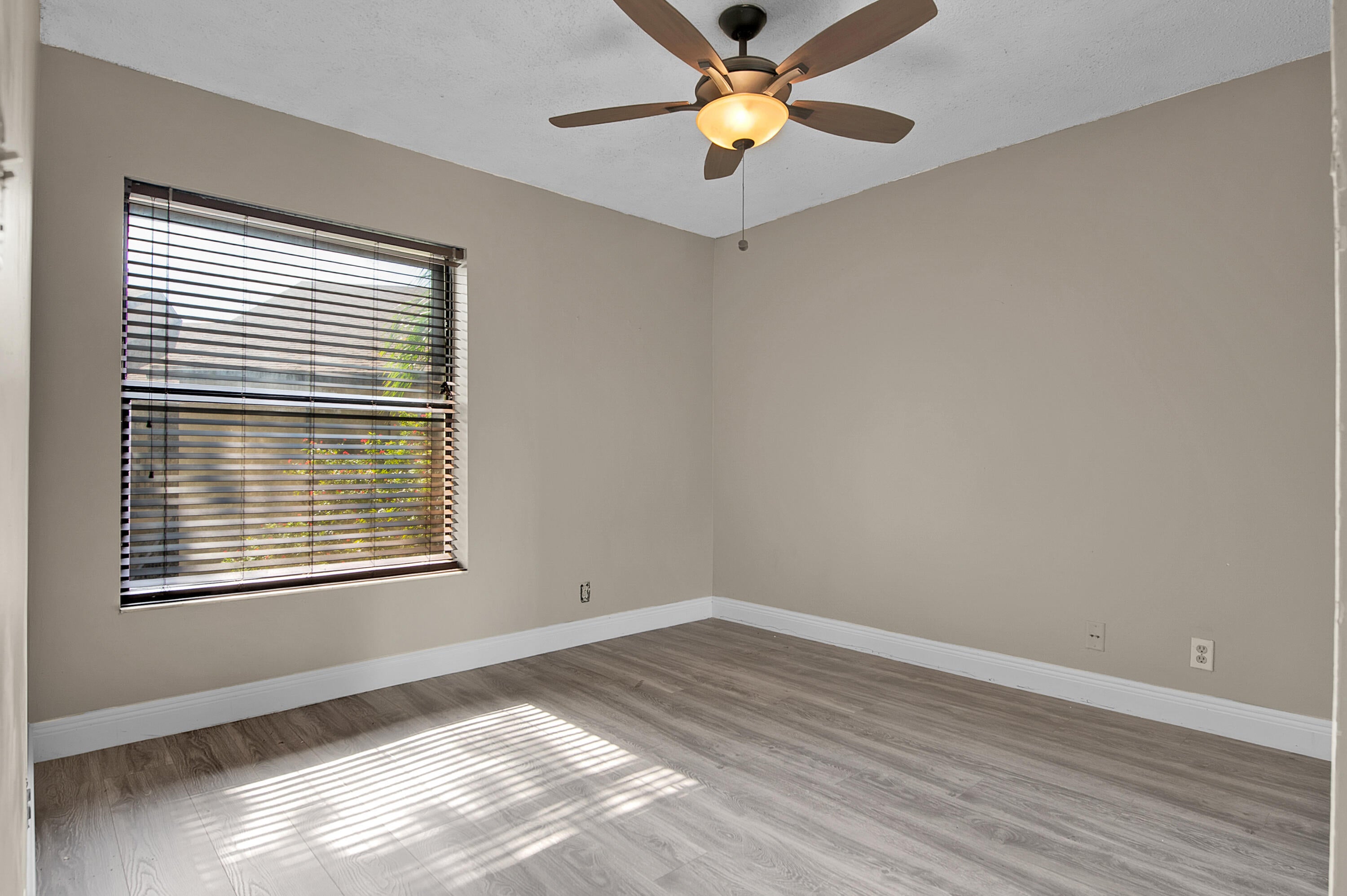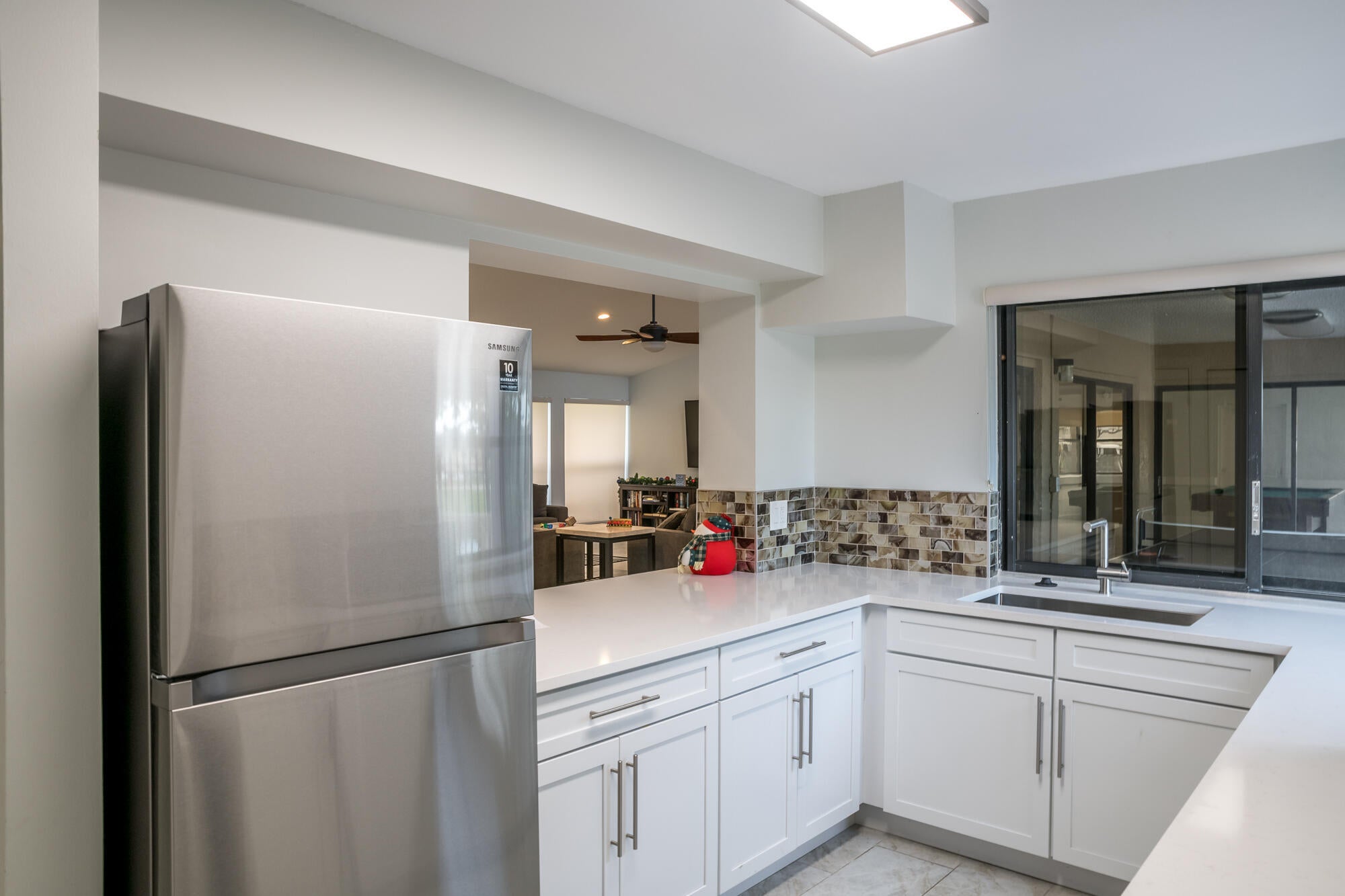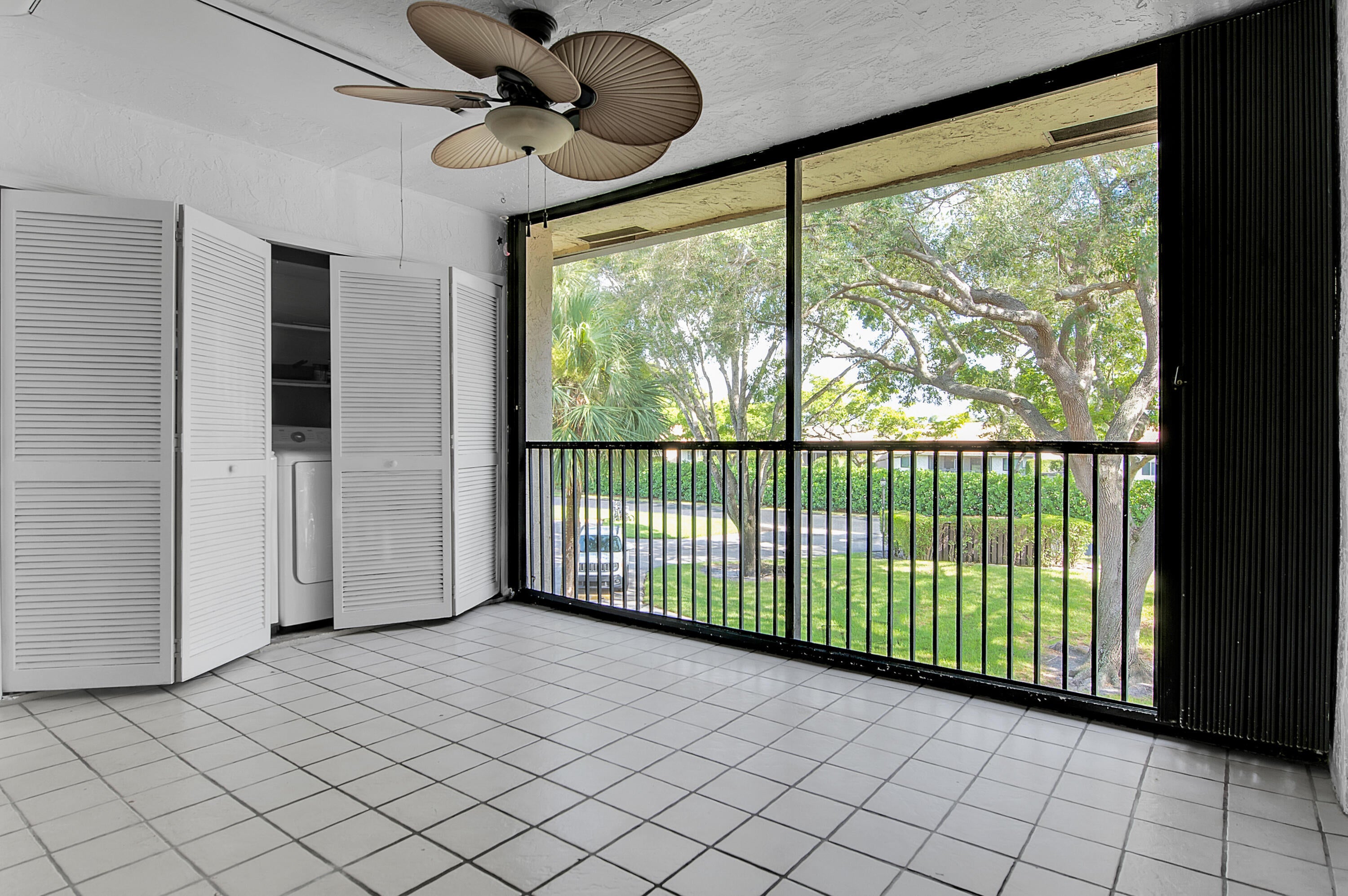 Welcome to this spacious 3 bedroom, 2 bathroom condo located in a quiet, gated community. The open concept living and dining area is filled with natural light and flows seamlessly onto a huge screened balcony - perfect for relaxing or entertaining while overlooking the lush garden. The home features accordion hurricane shutters on all windows and balcony for year-round protection. The primary suite includes a walk-in closet and a private en-suite bathroom while the two additional bedrooms offer flexibility for family, guest, or a home office. Enjoy the convenience of in-unit laundry and dedicated parking in front of the building. Community amenities include 2 pools, fitness room, clubhouse, tennis courts and walking trails, all within the safety and privacy of a secure environment.
