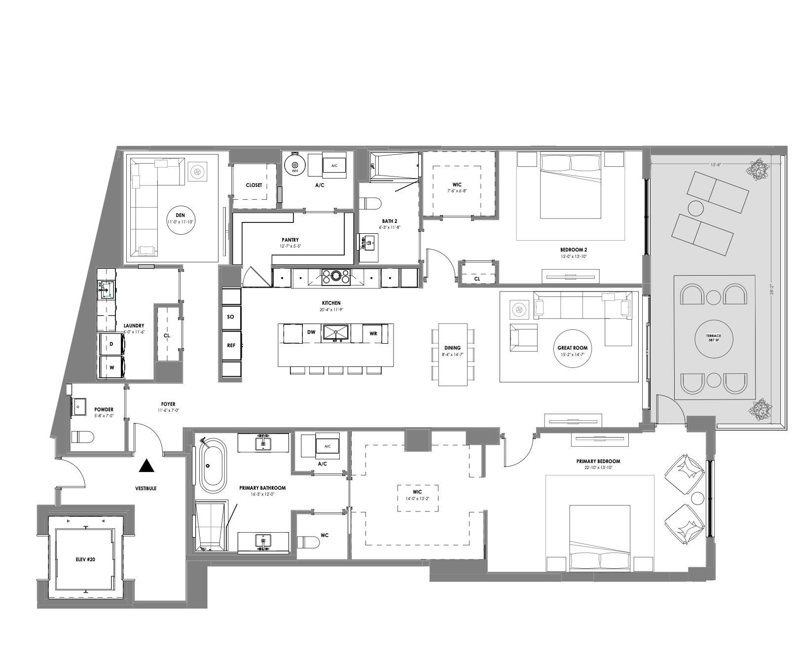 This elegantly furnished, turnkey residence with panoramic golf views is offered as a seasonal rental in the sought-after ALINA Residences, located in the heart of downtown Boca Raton. Perched on the 7th floor, adjacent to the pool, fitness center and spa, this exceptional condo delivers an elevated standard of luxury living. The thoughtfully designed floor plan features two spacious bedrooms, a flexible den, and two-and-a-half bathrooms. With private elevator access opening directly into the residence, you're welcomed into a bright, open-concept living space framed by dramatic floor-to-ceiling windows. Expansive terrace provides the perfect setting for golden-hour sunsets and outdoor dining. Inside, curated details abound from custom closets andwindow treatments to refined Italian finishes. The chef's kitchen is outfitted with Gaggenau appliances, an induction cooktop, wine fridge, and a rare oversized walk-in pantryan exceptional amenity in condo living. Move in and enjoy effortless, resort-style living. ALINA offers a lifestyle that redefines convenience and indulgence. Residents enjoy 24-hour security and valet service, a 75-foot lap pool, a cutting-edge fitness center with yoga and Pilates studios, a golf simulator, and spa facilities including sauna, steam, and salt rooms. Outdoor BBQ areas and an elegant lounge provide spaces to relax and connect.