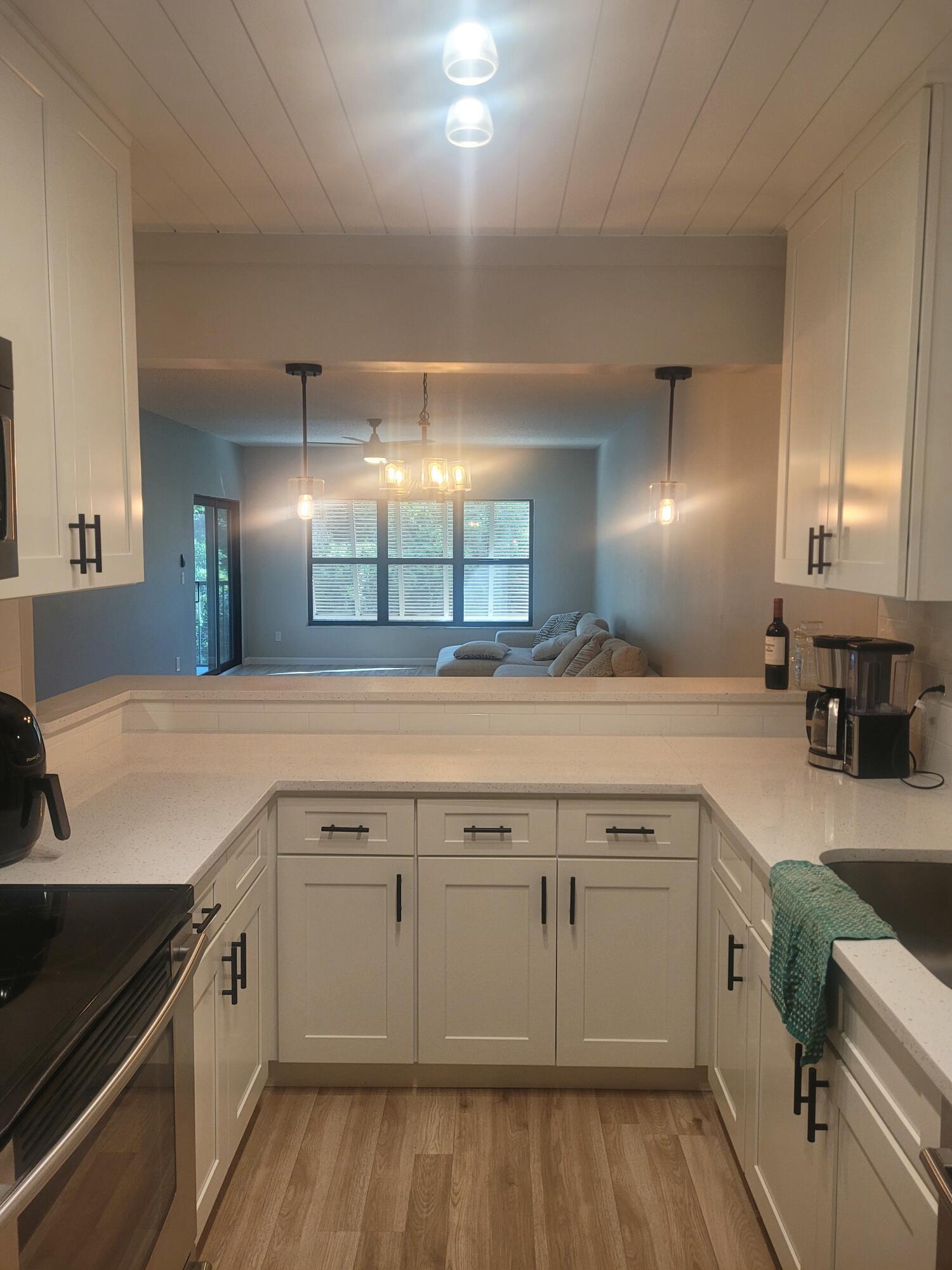 Newly renovated 2/2 in quiet gated community. Large 1322 sqft of living space. Ceiling fans in each room. Screened in covered porch, impact windows/doors, assigned covered parking spot with additional storage. The community has a swimming pool, clubhouse, tennis/ pickleball courts, Kayak/ paddle board storage area, and a boat dock that accomodates up to a 20' boat. Slips are available. Trucks and motorcycles are not allowed in community. No pets. Rent includes basic cable, water, garbage