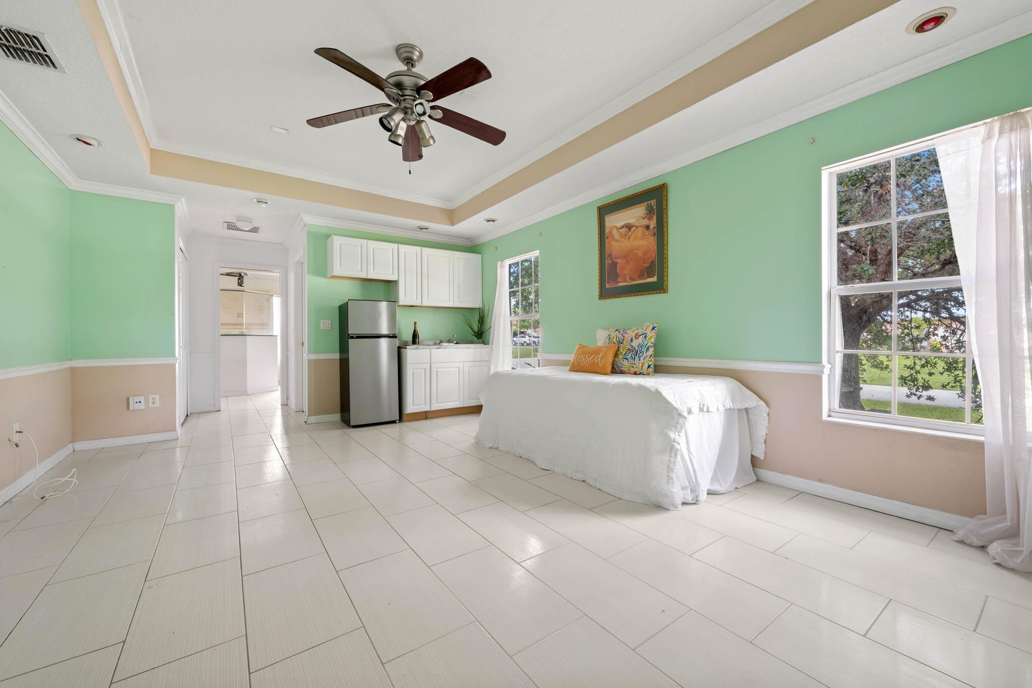 Enjoy multi-family living or rental income in this grand corner lot home located near the turnpike and I-95 in Port St Lucie. Last tenant was paying $1125 per month. The studio offers private parking and private entry. The main home is a 3/2/2 with custom architectural ceilings, split floor plan, hurricane impact 8 ft double front doors, open kitchen, breakfast area, formal dining room, and a custom kitchenette in the master bedroom with an inground gas heated swimming pool and spa! Gas heated stove, and hot water heater also! Schedule your showing today!