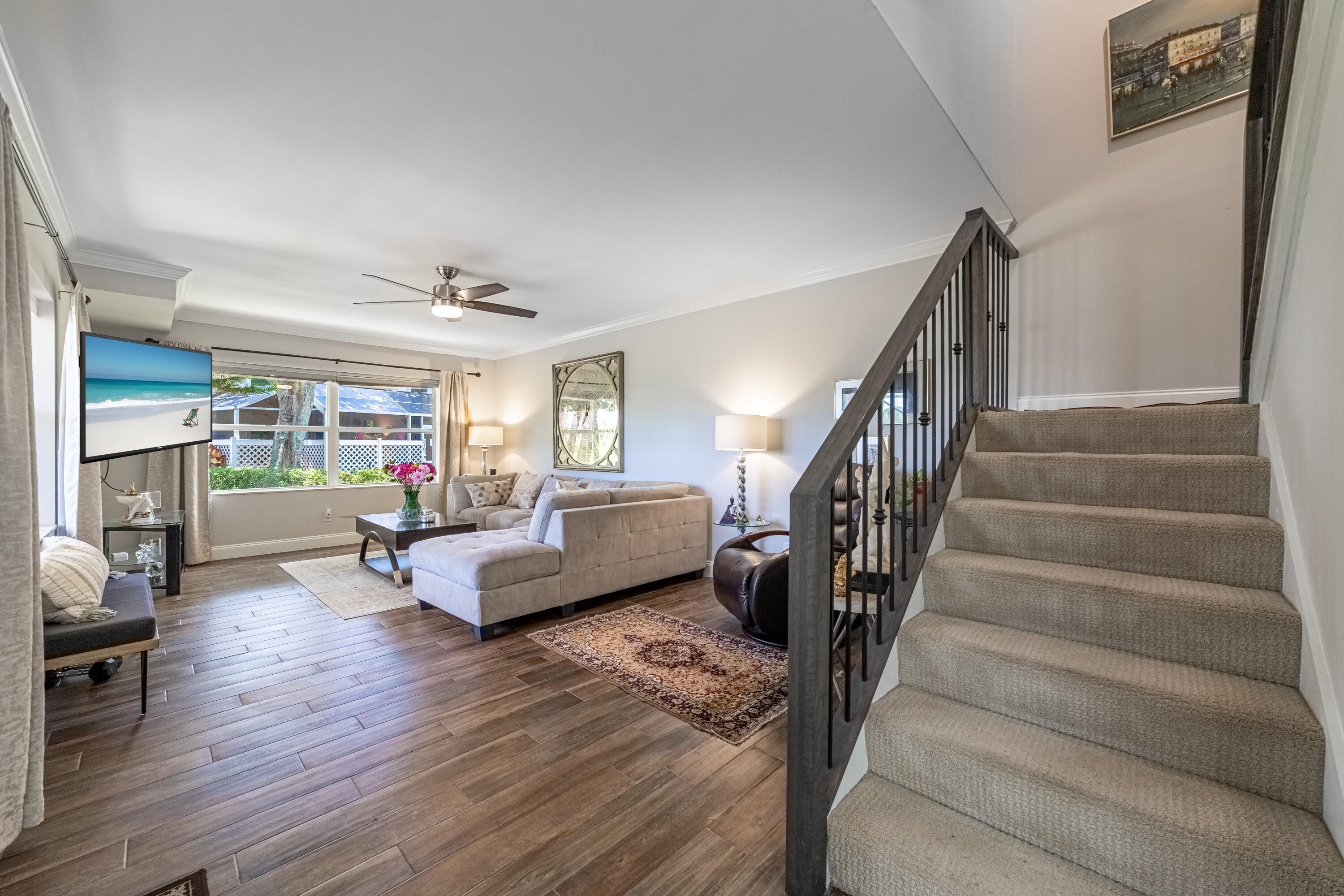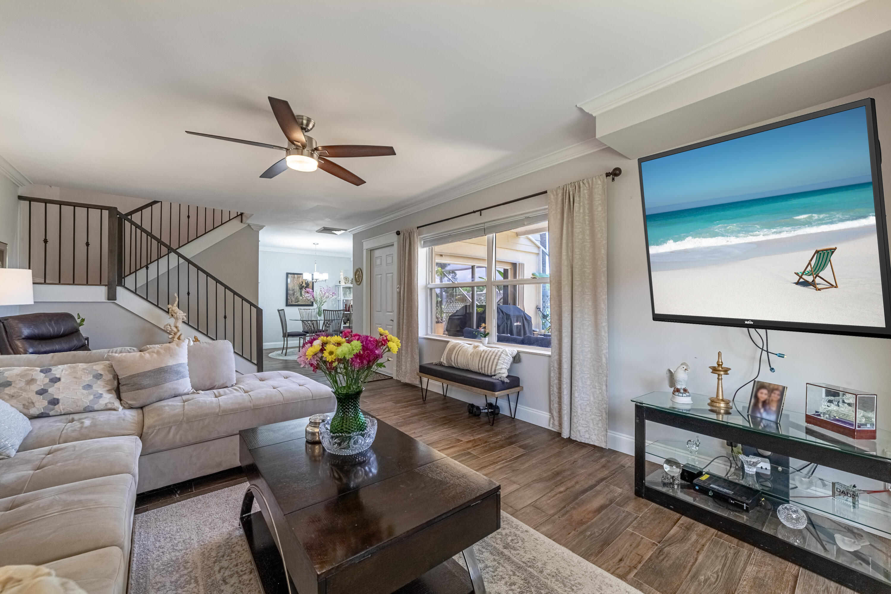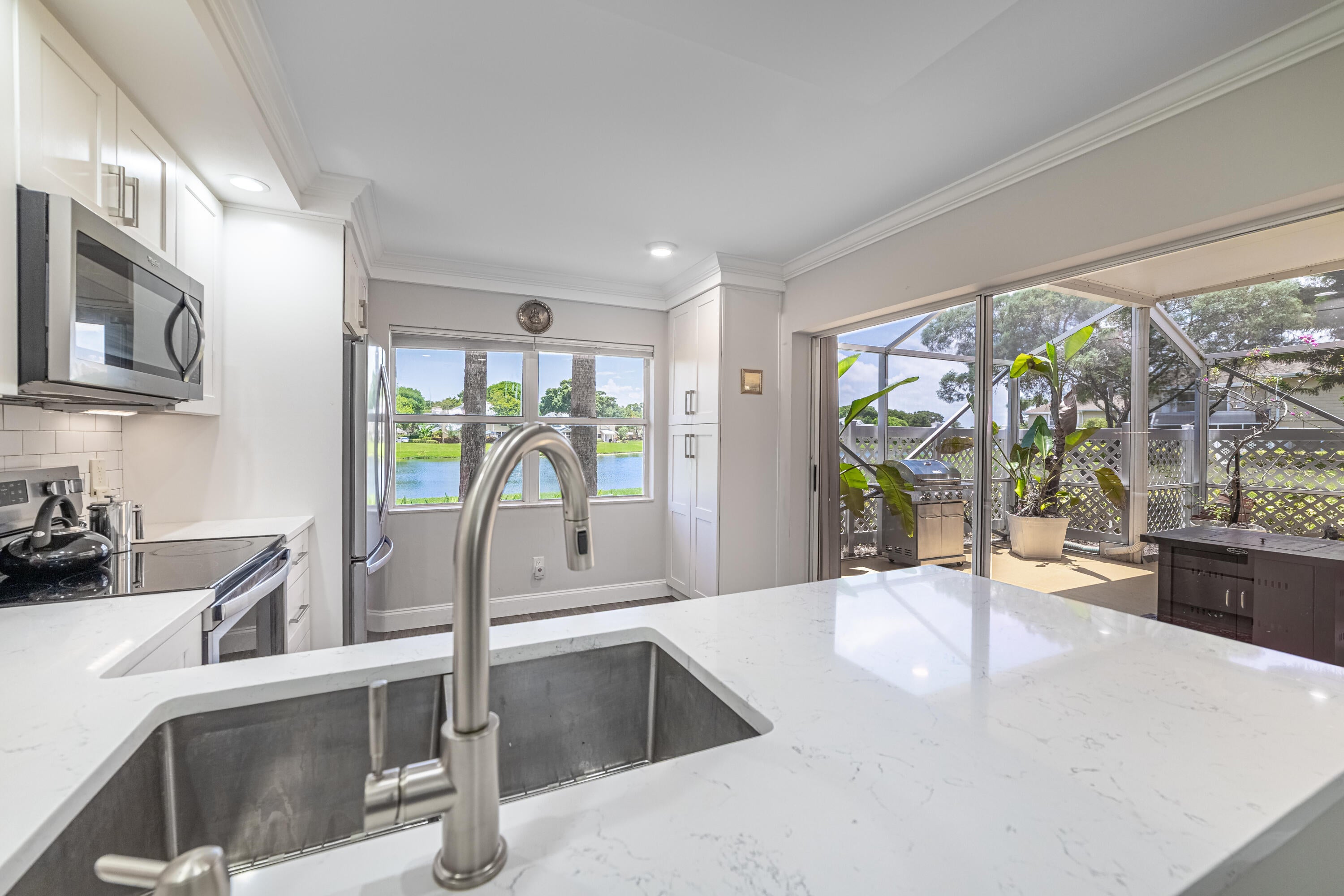 Tastefully and professionally redone, this townhome offers stunning lake views and is located in a desirable gated community. Step inside to beautifully updated interior, features wood tile flooring in the main level. renovated kitchen with modern cabinetry, sleek countertops, and stainless steel appliances. Upgrades throughout include crown molding, detailed millwork around all doors, upgraded interior doors and hardware, and custom built-out closets, The staircase has been enhanced with an elegant wrought iron and wood railing, Popcorn has been removed from ceiling. Water Heater 2023, Condenser 2025, AC 2017, full accordion hurricane shutters and two parking spots. This property is fully assumable with a 3.62% interest rate,an incredible opportunity in today's market.Enjoy relaxing or entertaining in the spacious covered and screened patio perfect for BBQs and outdoor gatherings. Located in a well-kept gated community offering a pool, tennis courts, lighted streets, and sidewalks. The HOA covers the roof, all exterior maintenance, painting, and building insurance. A must-see property you won't want to miss!
