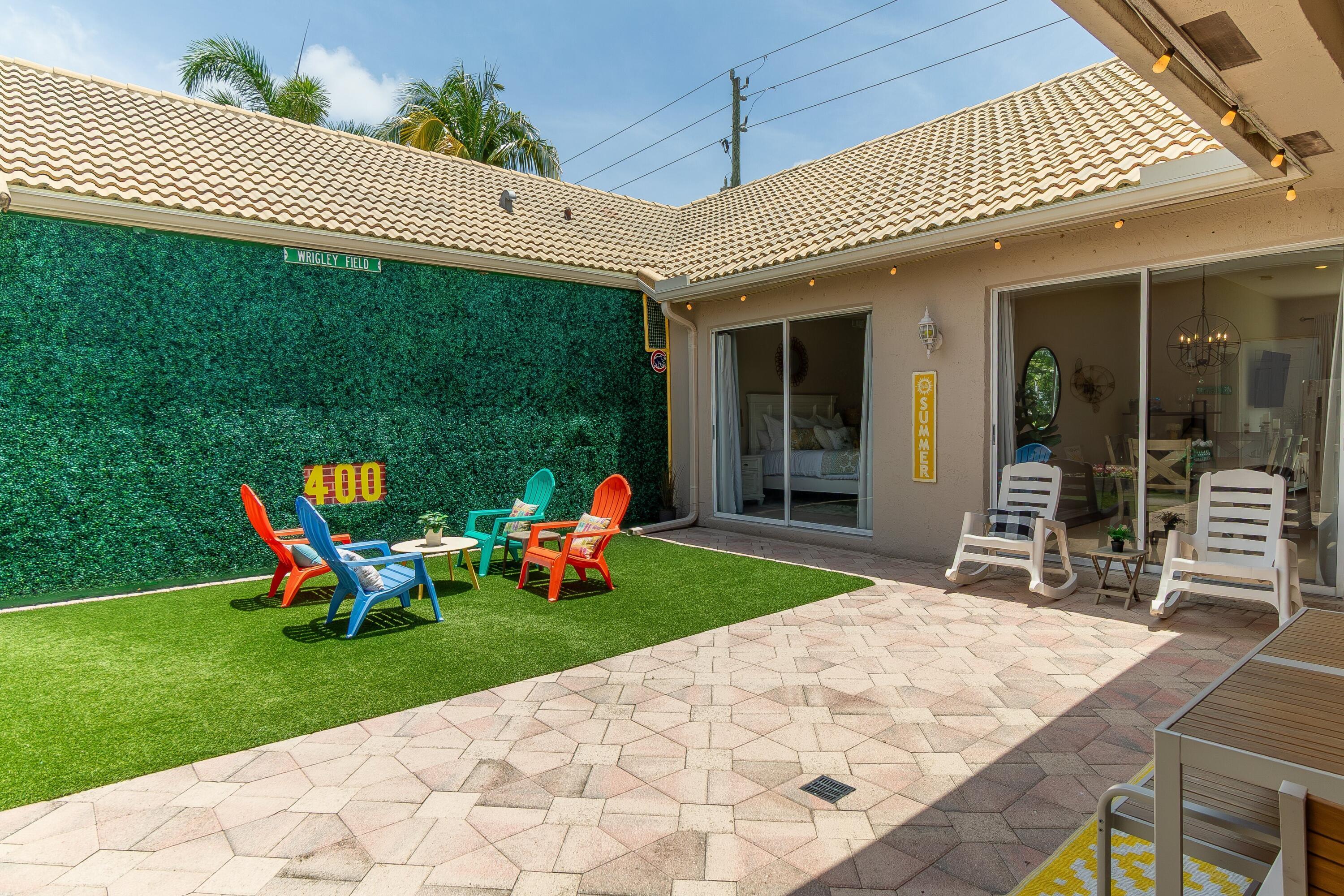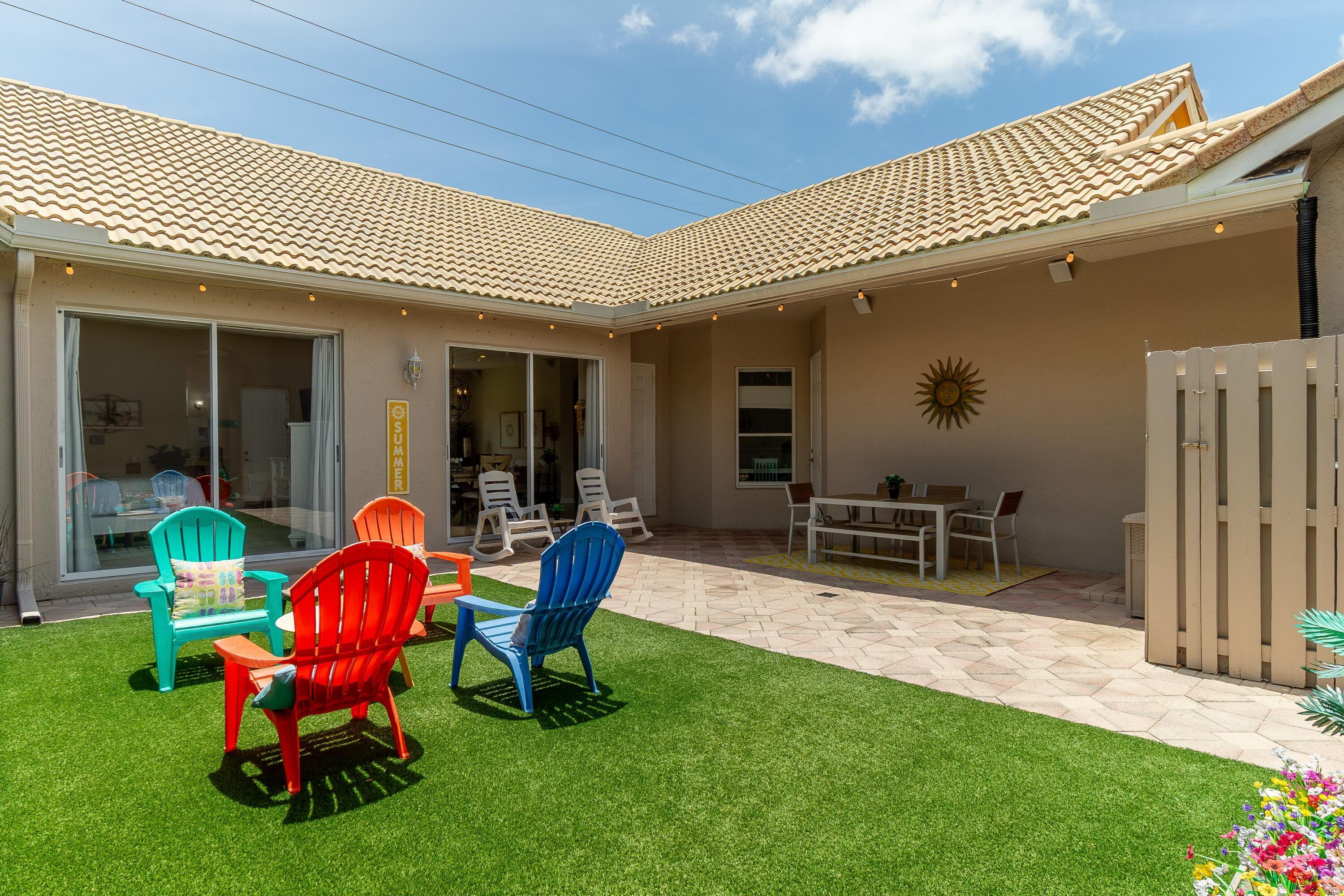 Welcome to your rarely available courtyard retreat in Boynton Gardens! This unique 3 bedroom, 3 bath villa boasts soaring 10 ft. ceilings, abundant natural light and a versatile layout for both comfort and flexibility. The primary suite features dual vanities, soaking tub and a separate shower for added luxury. The spacious great room opens seamlessly to a large private courtyard, ideal for entertaining, enjoying your morning coffee, or unwinding under the stars. A detached guest suite with its own entrance and full bath provides full privacy - perfect for visiting family, a home office or multi-generational living. With very low HOA fees, a community pool and a location near shopping, dining and major roadways, this home offers the perfect blend of style, function and convenience!Cabana / Guest Suite has separate entrance. Please see the Floor Plan for the layout of this rarely available Courtyard Villa. Video walkthrough is also available.