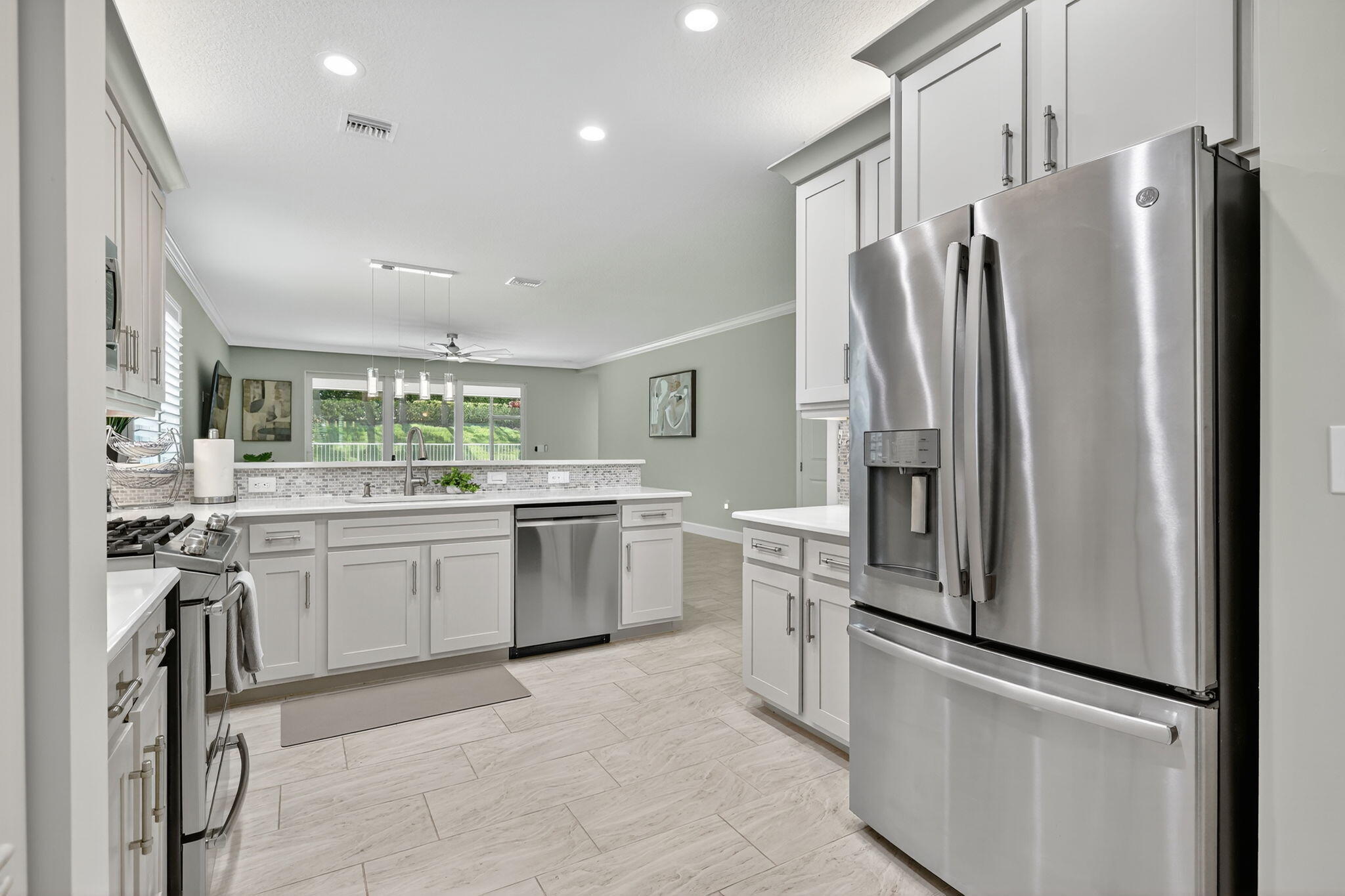 Welcome to your Florida dream home! This beautifully appointed Lucia Model is nestled on a private oversized lot in the highly sought-after Valencia Cay community within Riverland. 2 Bedrooms + Den, 2 Bathrooms, Private, Landscaped Lot, and room for a pool. Open-Concept Floor Plan, Resort-Style Community Amenities. Don't miss your chance to live in one of Port St. Lucie's most desirable 55+ communities. Offering the perfect blend of luxury, comfort, and privacy, this residence is move-in ready & waiting for its next proud owner. Step inside to discover an open-concept layout filled with natural light, and upscale finishes throughout. The gourmet kitchen features stainless steel appliances, quartz countertops, plenty of cabinet space and counter space, perfect for everyday living orentertaining. Enjoy serene indoor-outdoor living with a spacious covered lanai overlooking lush, private backyard that is fenced in. You will enjoy your personal retreat for morning coffee or evening relaxation. The primary suite is a true sanctuary with dual walk-in closets and a spa-like en-suite bathroom complete with a walk-in shower and double vanities. Additional features include a versatile guest bedroom, den/home office, impact windows, and a full-sized laundry room. Valencia Cay at Riverland offers resort-style amenities including a clubhouse, pools, fitness center, pickleball, tennis, bocce, walking trails, and countless clubs and social events all in a vibrant, gated community just minutes from the new Riverland Town Center shopping center accessible by golf cart through the paseo. Dining is available at the Cay Café and River Fresh Café without leaving the community or Riverland. The Cleveland Clinic hospital and medical facility is nearby. Schedule your private tour today! Cleveland Clinic hospital and medical facility are nearby. Easy access to I-95, Florida's Turnpike, and the Treasure Coast beaches.
