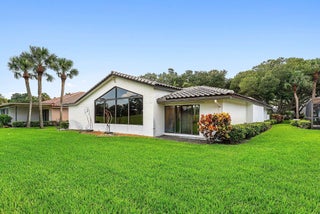 Nestled in The Oaks at Hunters Run Country Club, this exceptional mid-century modern style home offers 2 spacious bedrooms plus a den, with 2.5 bathrooms across 3296 sq-ft. Step inside to a spectacular great room adorned with marble tile, vaulted ceilings, and oversized gable windows with panoramic eastern golf course views. The primary retreat offers two walk-in closets and a private bath, with a separate shower and soaking tub. The secondary bedroom doubles as a den complete with a Murphy bed. An expansive flex-room can be customized to accommodate a third bedroom, family room, and dining area. Exterior highlights include a private front patio, two-car garage, and the Oaks community pool just steps from your front door. Make this your dream home at Hunters Run today!The luxury lifestyle can be yours at Hunters Run Country Club. Featuring 54 holes of championship golf (with a brand new East Course designed by Kip Schulties), 18 har-tru tennis courts, 12 pickleball courts, resort-style clubhouse and pool, salon & spa, state of the art fitness center, six dining venues, and so much more.