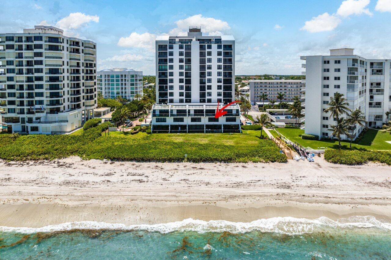 Beyond exquisite and calling those who appreciate only the finest. This exclusive and rare direct oceanfront designer renovated townhome is the definition of coastal luxury. Airy, light and bright, this 3 bedroom/2.5 bath, 3 level home underwent a total renovation, completed in 2022, with no detail overlooked and only the finest materials and craftsmanship used. Every aspect has been luxuriously touched with a designer's eye and updated to state-of-the-art. Feeling like a new construction single family home and coupled with with benefit of condo amenities, you will receive access to the Ocean Terrace fitness club, refurbished pool and pool deck, club room and private beach access directly out you back door.Offered turnkey and fully furnished of the highest quality, you'll be absolutely thrilled to call this your home away from home. Situated directly on the sand, with beach access directly out your backdoor via your private oceanfront patio, you will enjoy spectacular, panoramic ocean views from all three floors with an abundance of natural light and great energy. Features Include: - Custom kitchen European-Style flat front cabinets with extension bar and Pompeii Greylac Quartz on kitchen island and backsplash - High-end luxury Jennair Noir appliances (fully integrated French Door refrigerator with obsidian interior, induction cooktop, microwave oven with speed-cook, wall oven with vertical dual-fan convection system, dishwasher) - Side-by-side Zephyr wine cooler and beverage cooler in bar area - Newer Rheem hot water heater - Newer commercial grade A/C system with anti-microbial super duct and contemporary linear vents installed throughout - Porcelain wood-plank tile throughout - Custom glass railings - Porcelain tile bathrooms with custom glass enclosures, body sprayers, and rain systems - Contemporary Primary Bathroom with open concept, bidet, and free standing tub with ocean views - Primary Bedroom includes custom built TV wall unit with European-Style flat front cabinets and Zephyr beverage bar refrigerator - Samsung Frame TV's in Living Room, Guest Room and Primary Bedroom - Custom veneered floating vanities in all bathrooms with apron Pompeii Quartz countertops - High reflective white Eco Ceilings on all 3 levels for vapor & sound barrier and ocean reflections - Custom library nook under stairs - Custom veneered closet systems in all bedroom closets and ample linen storage - 2nd floor newer LG Washer/Dryer - 3-panel solid contemporary style interior doors throughout - 4" rectified door casings and 6" rectified baseboards throughout - Newer fire sprinkler system throughout - ADT alarm system - Queen beds with luxe linens in 2nd level bedrooms - Convertible Queen bed with luxe linens in Primary Bedroom - Ground level patio with beach access and oversized balcony off of the Primary Suite providing amazing outdoor living and entertaining options - Furniture and furnishings from Restoration Hardware, Rove Concepts, Lulu & Georgia, Sklar Furnishings, and Scan Design