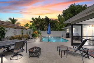 Welcome to this beautifully updated corner-lot home with a pool in the highly desirable Boca Madera community, located along the prestigious St. Andrew's Corridor of Central Boca Raton. Enjoy the freedom of no HOA living combined with unparalleled convenience to top-rated schools, upscale shopping and dining at Town Center Mall, easy access to I-95, the Florida Turnpike, and some of Boca's most sought-after neighborhoods.This move-in ready residence perfectly blends luxury, comfort, and functionality, offering exceptional upgrades and an ideal layout for modern living.Situated on a spacious corner lot, the home provides added privacy, a larger yard, and excellent curb appeal. Inside, a bright open floor plan features luxury Lifeproof vinyl flooring, recessed lighting, and tasteful finishes throughout. The custom kitchen boasts quartzite countertops, custom cabinetry, and stainless steel appliances (2019), combining style and efficiency. Each bedroom offers custom closets to maximize storage and organization. The home is fortified with full impact windows, impact-rated French doors and front door, and a hurricane-rated garage door. The garage includes a built-in workbench, perfect for projects or extra storage. Major upgrades include a 2023 metal roof, 2023 solar panel system, and a 2024 tankless water heater. Step outside to enjoy the resurfaced Diamond Brite pool (2019) with a new pool pump (2025), surrounded by a lush backyard oasis with fruit trees, a butterfly garden, and night-blooming jasmine. The PVC privacy fence (2020), new gutters, and 2023 irrigation system simplify maintenance, while professional landscape lighting creates an inviting ambiance at night. Additional highlights include a generator hookup with transfer switch, a security camera system covering the entire home, and a large driveway with a private walkway leading to the backyard. This exceptional home combines top-tier upgrades, a prime location, and the freedom of no HOA living in one of Boca's most coveted neighborhoods.